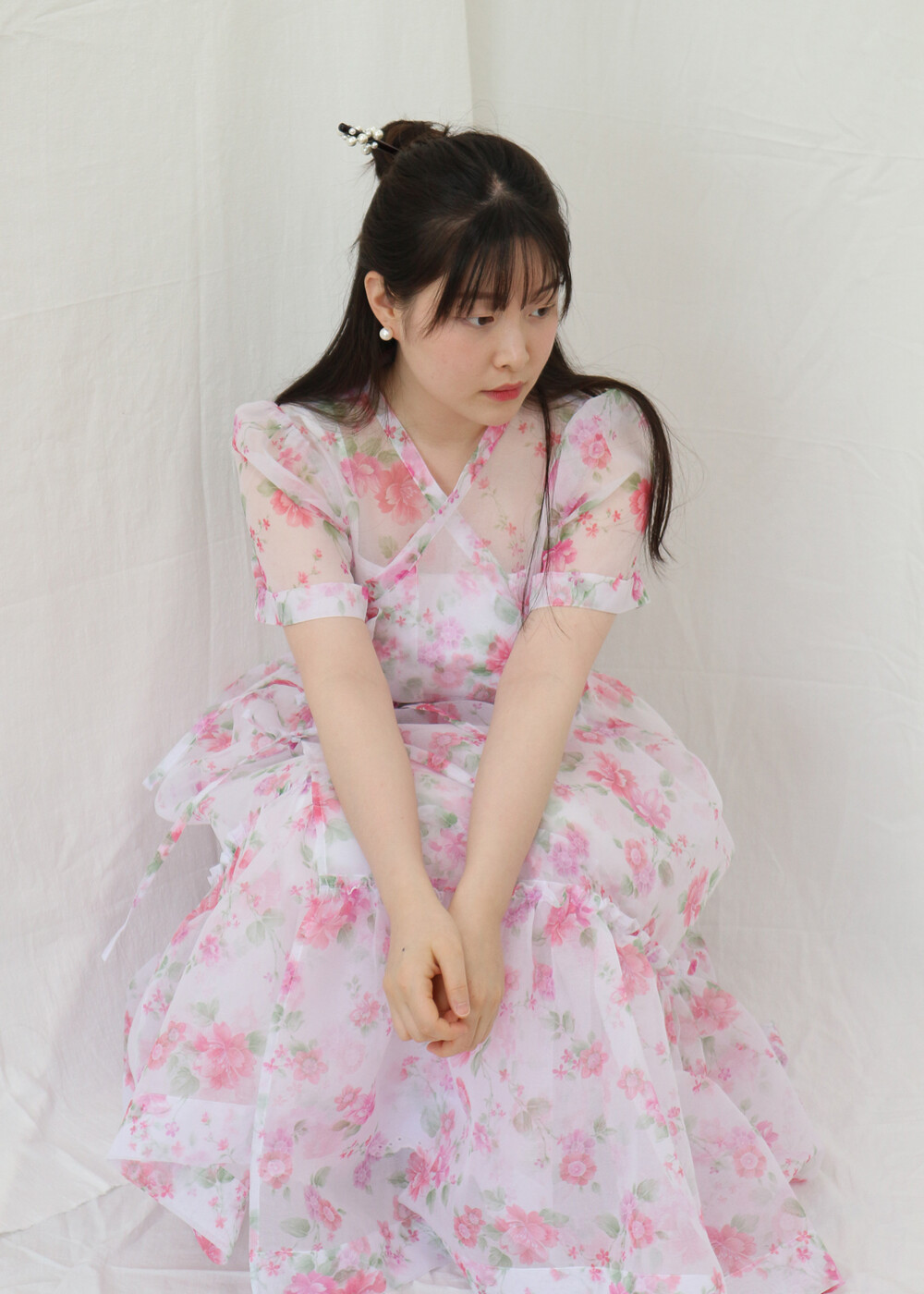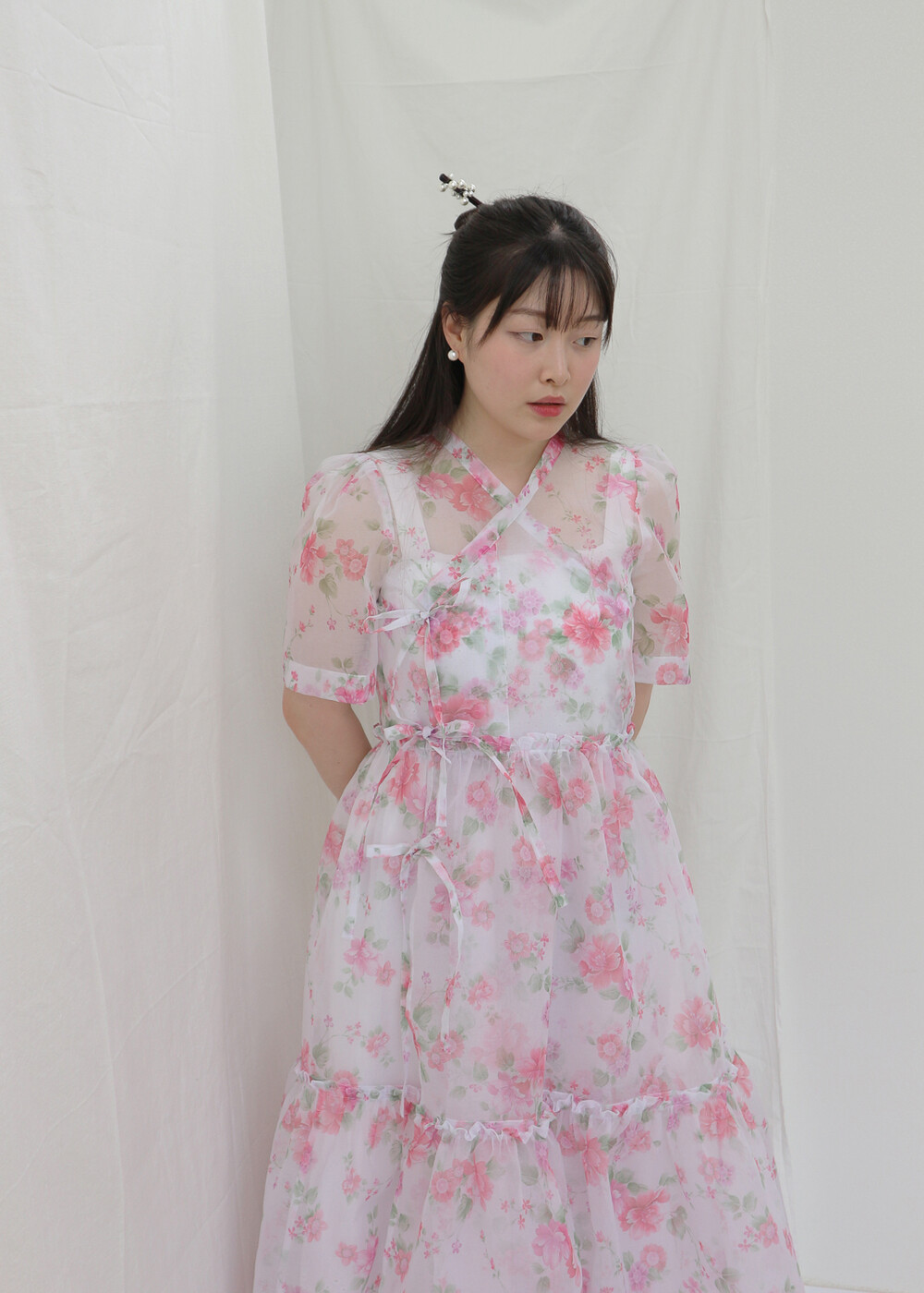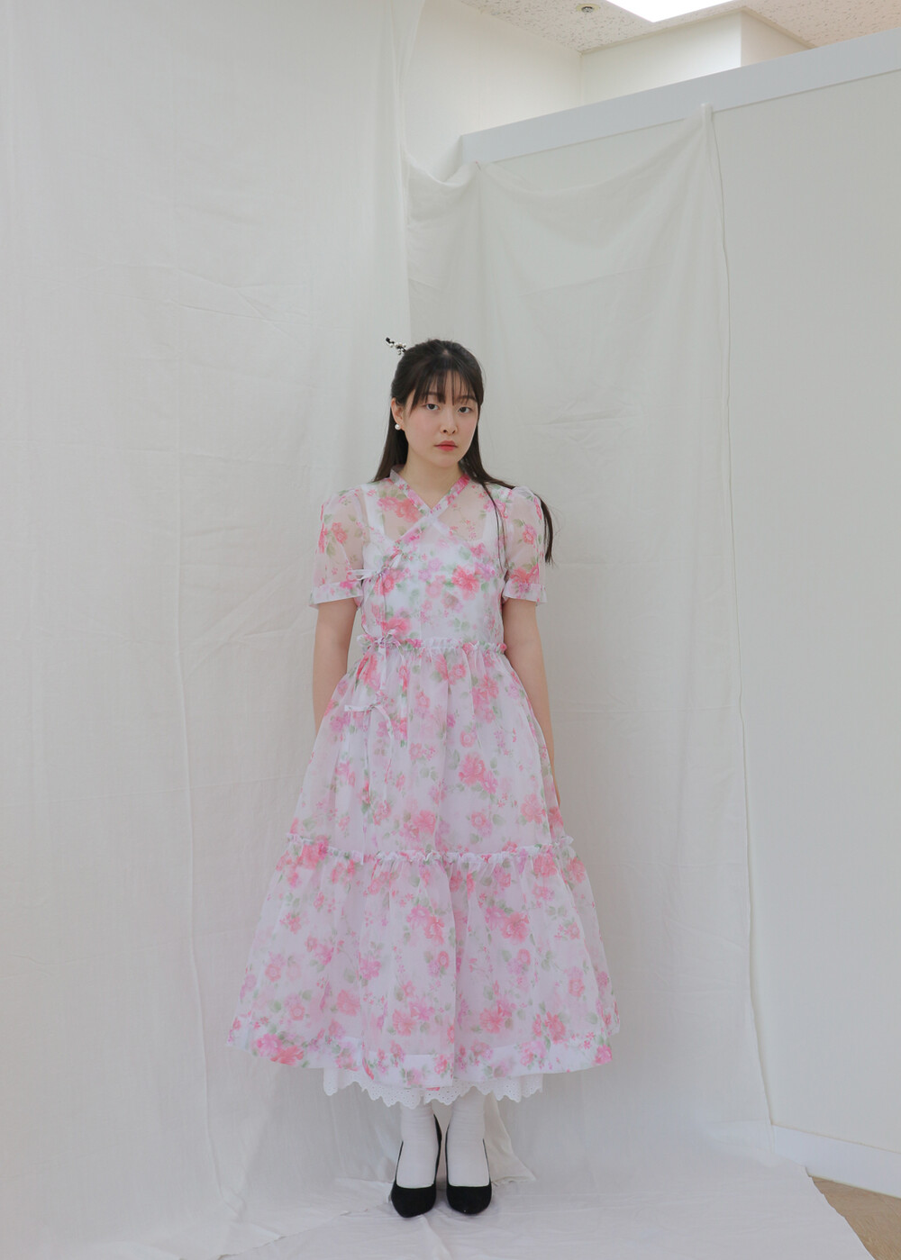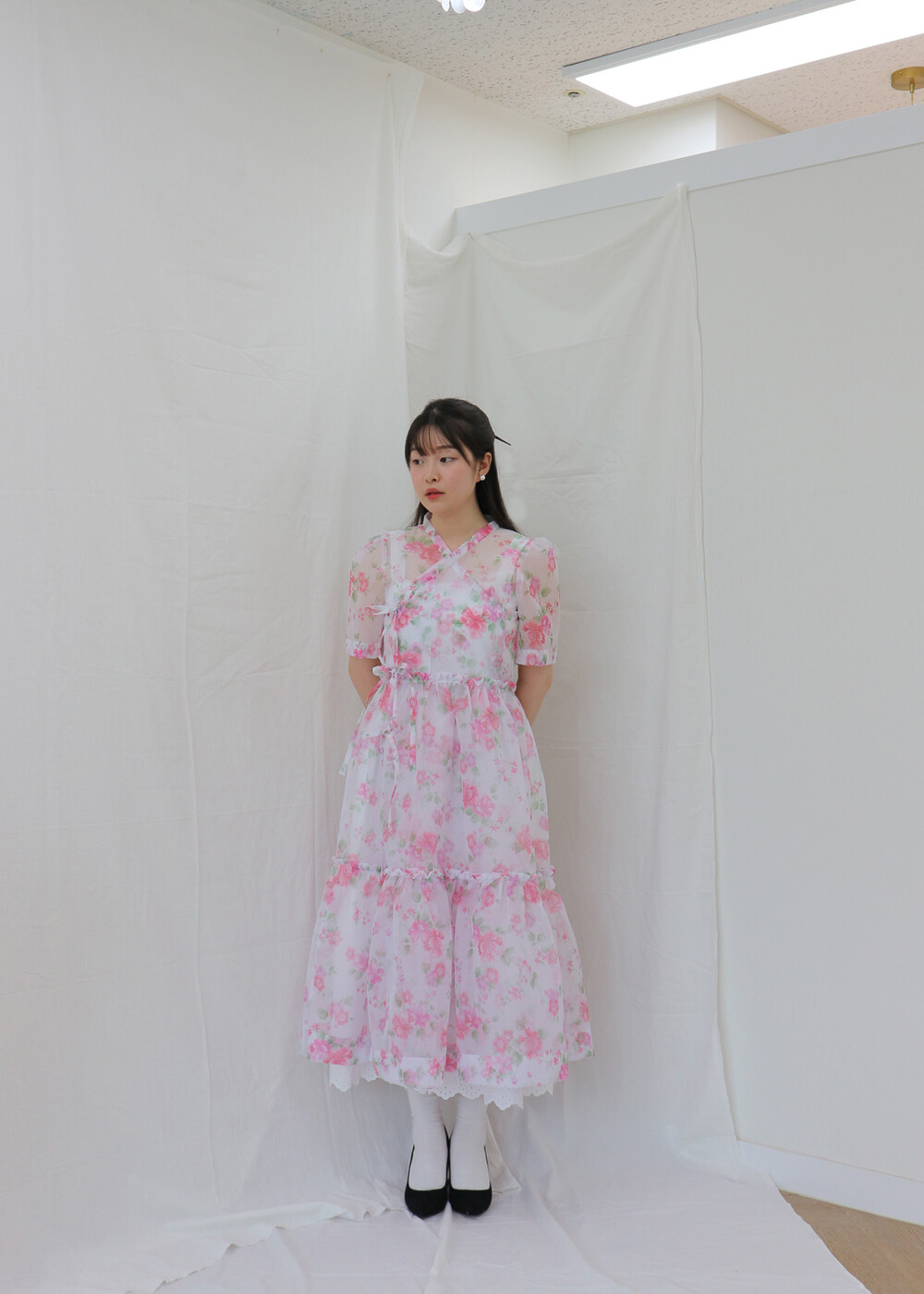 여름과 잘 어울리는 플라워 노방 원단으로 제작된 캉캉원피스입니다.