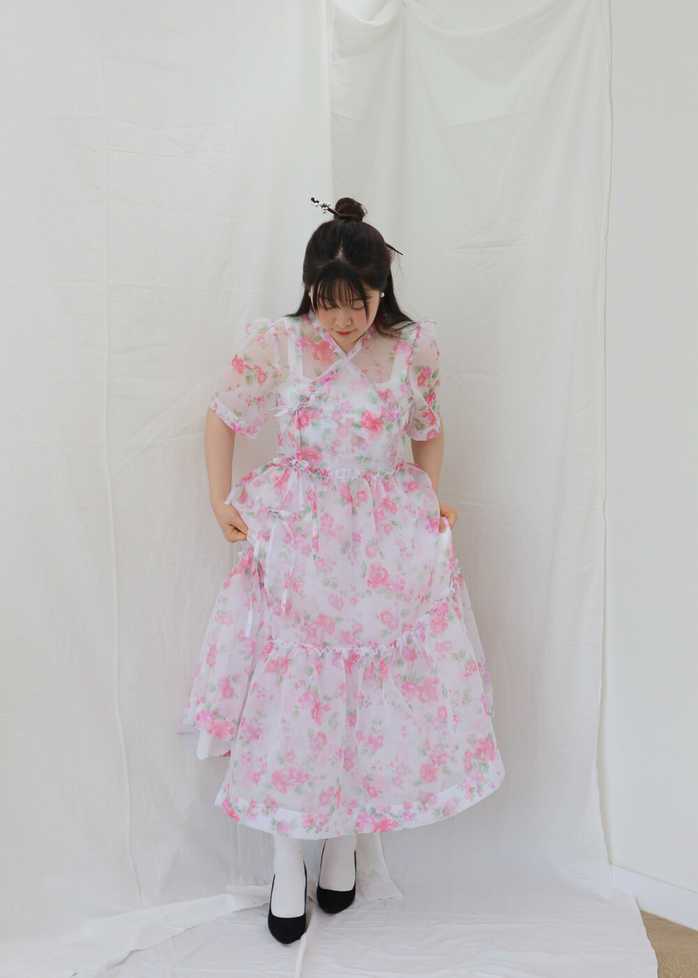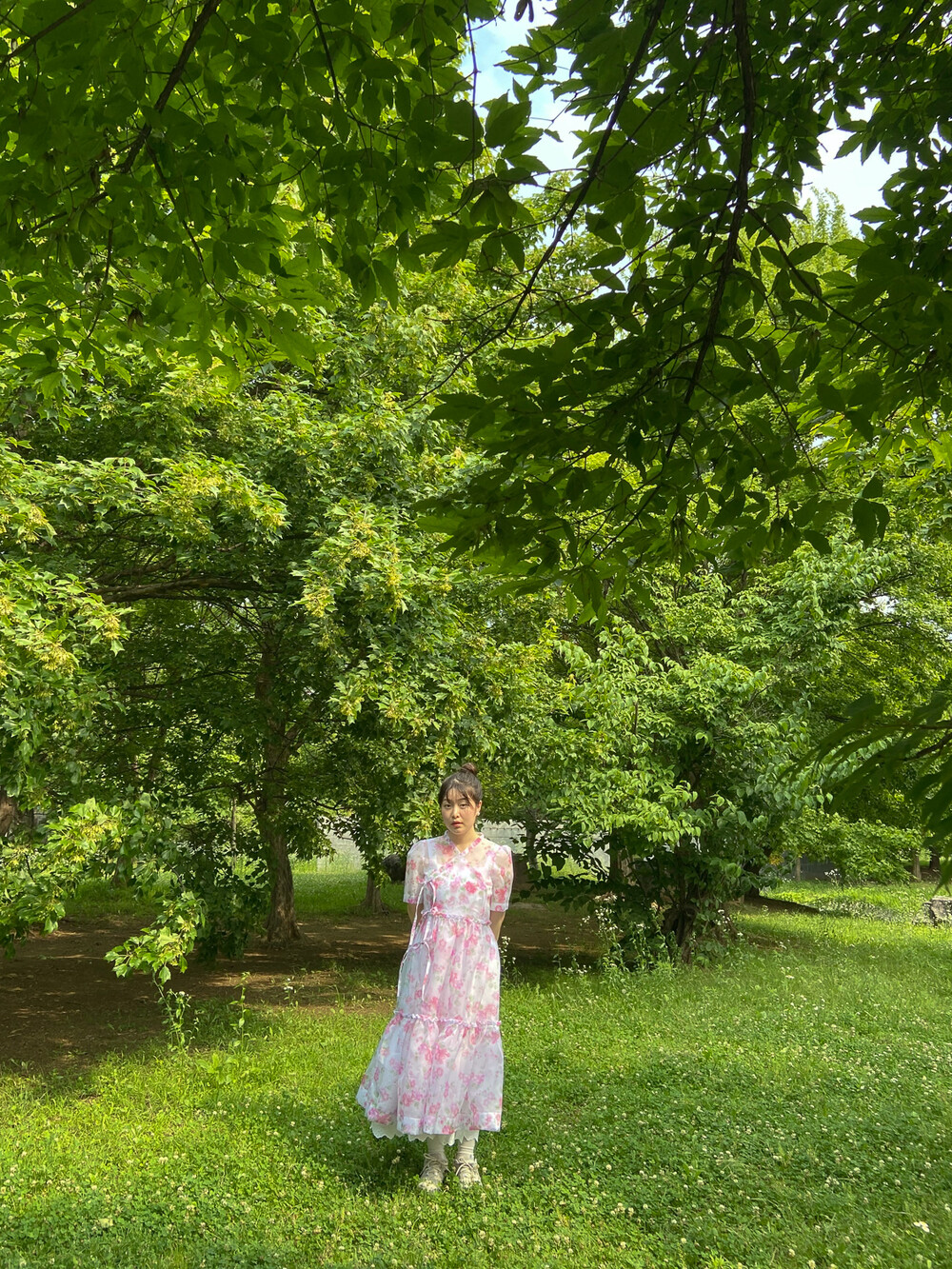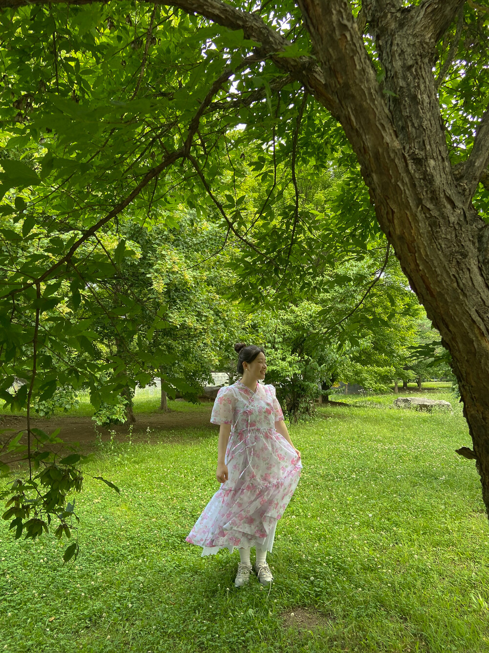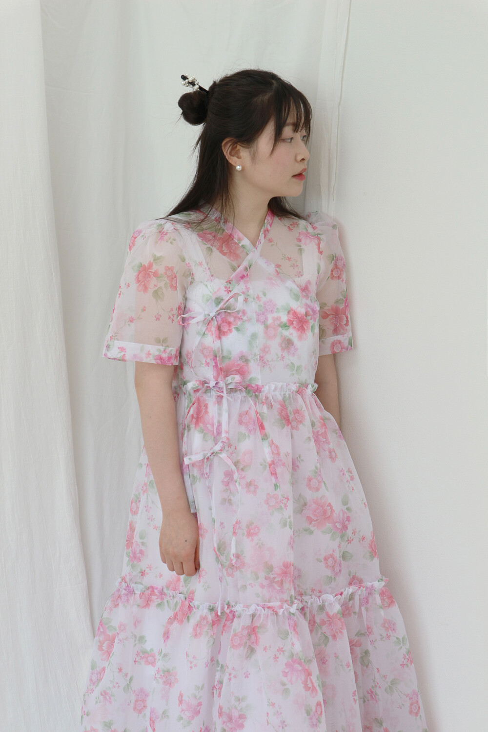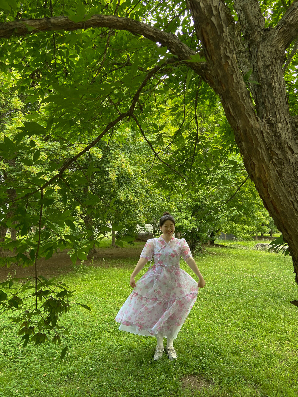 여름과 잘 어울리는 플라워 노방 원단으로 제작된 캉캉원피스입니다.