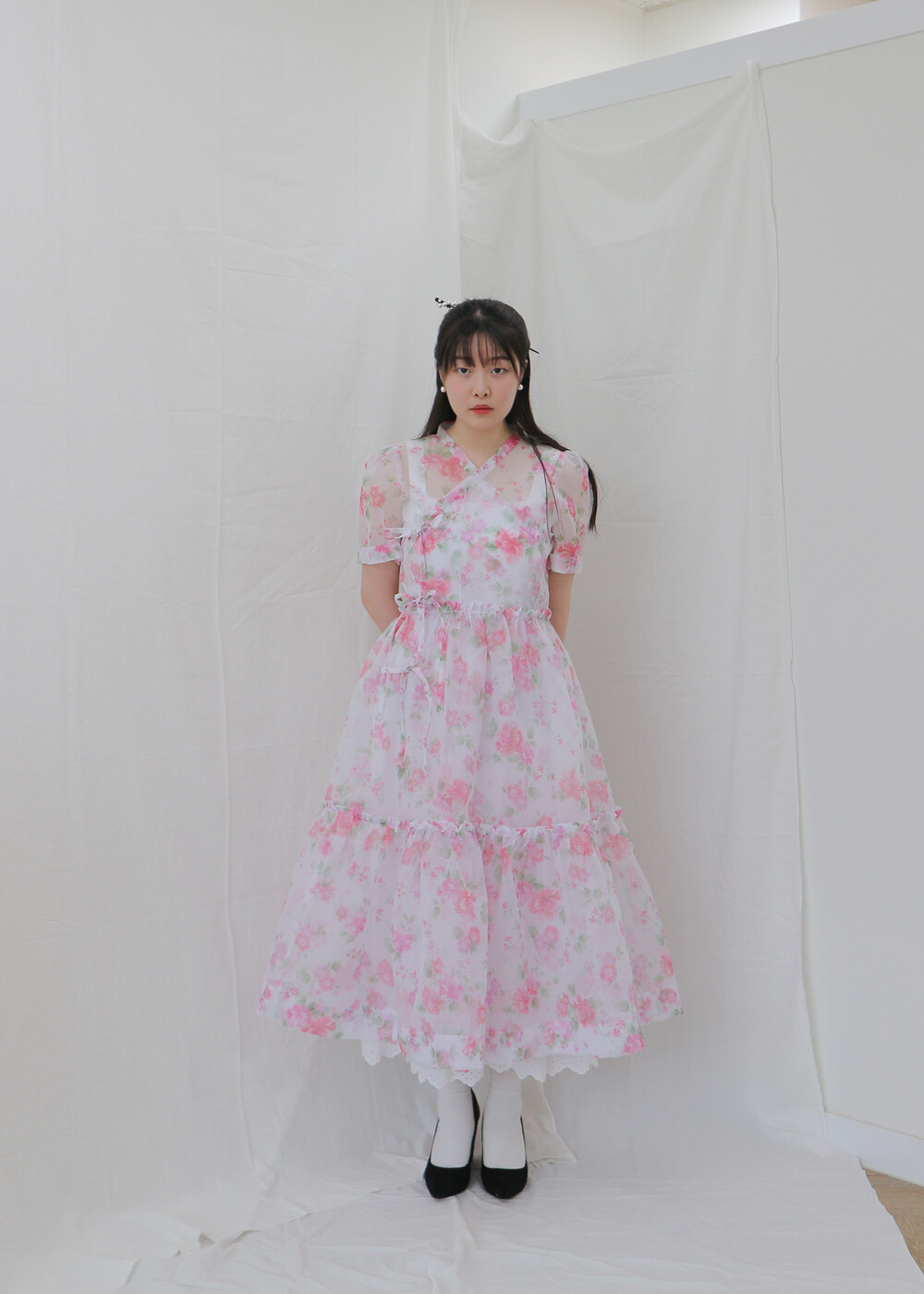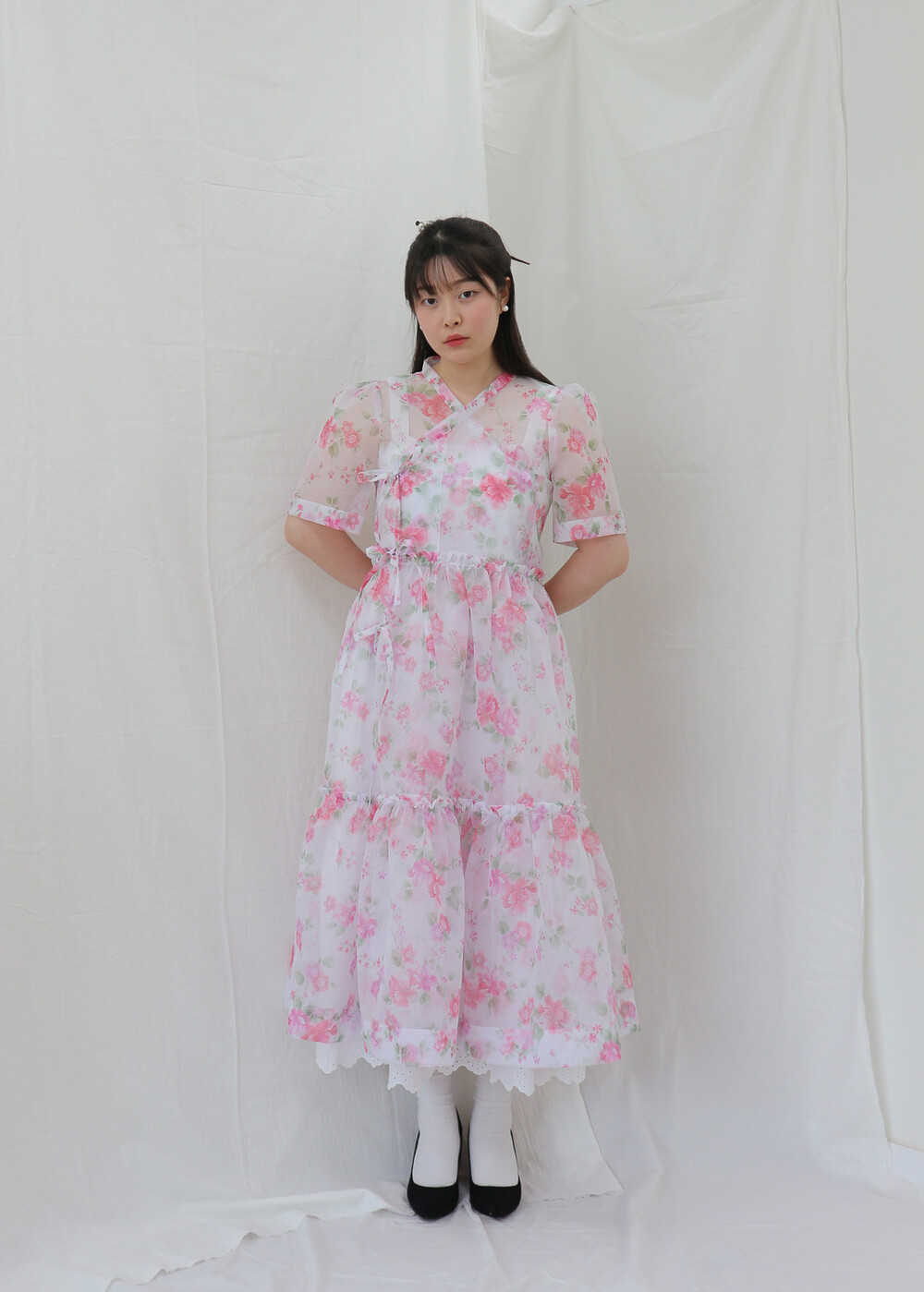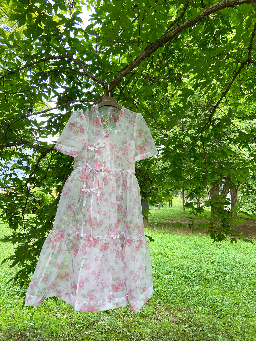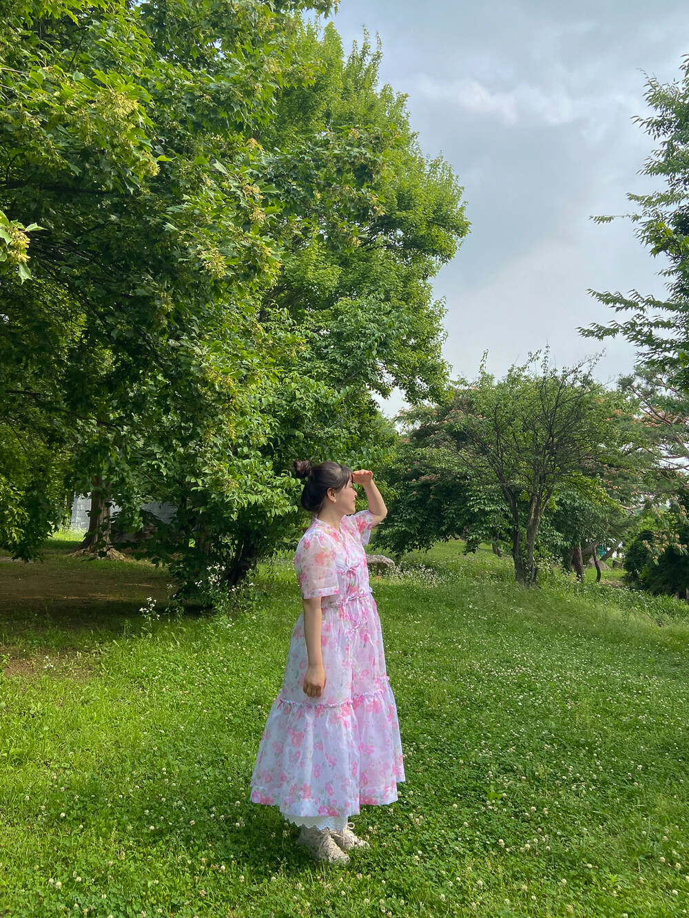 여름과 잘 어울리는 플라워 노방 원단으로 제작된 캉캉원피스입니다.