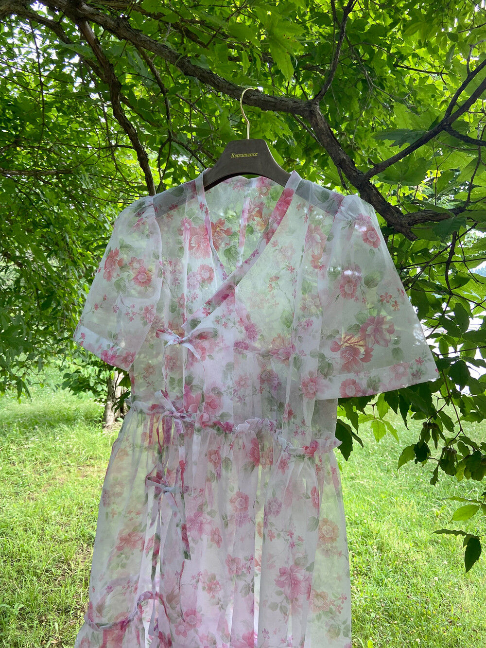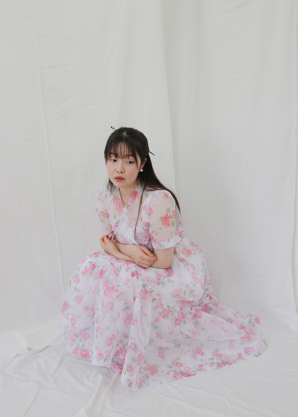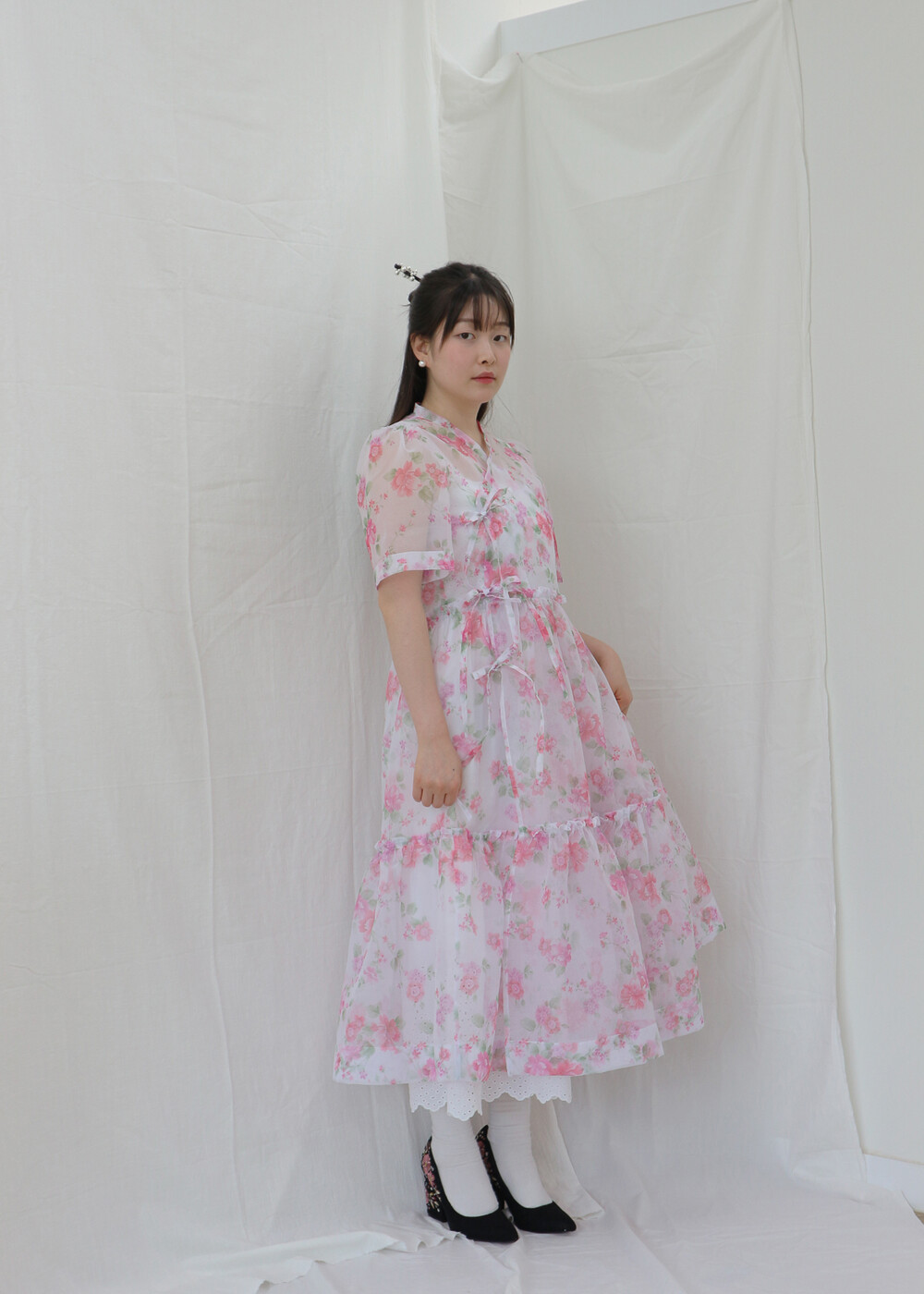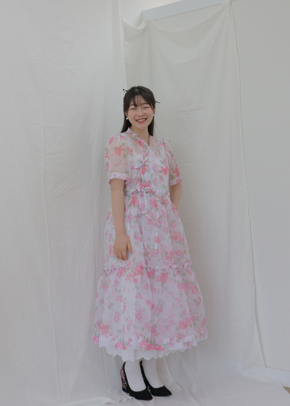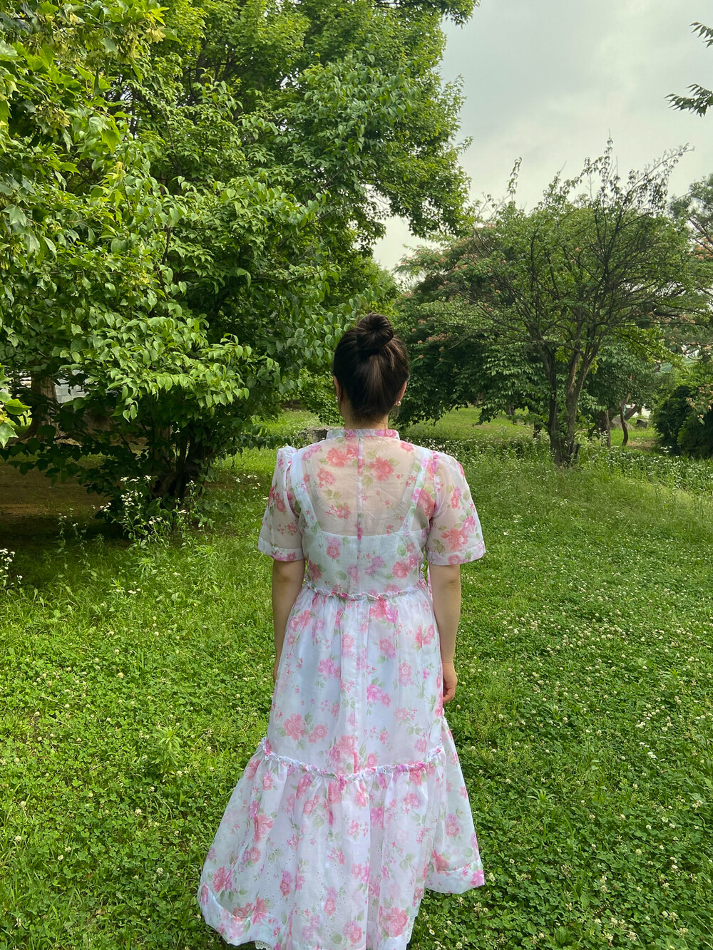 여름과 잘 어울리는 플라워 노방 원단으로 제작된 캉캉원피스입니다.