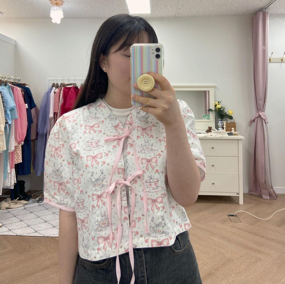 귀여운 토끼 패턴의 원단에 바이어스로 포인트를 준 저고리입니다.