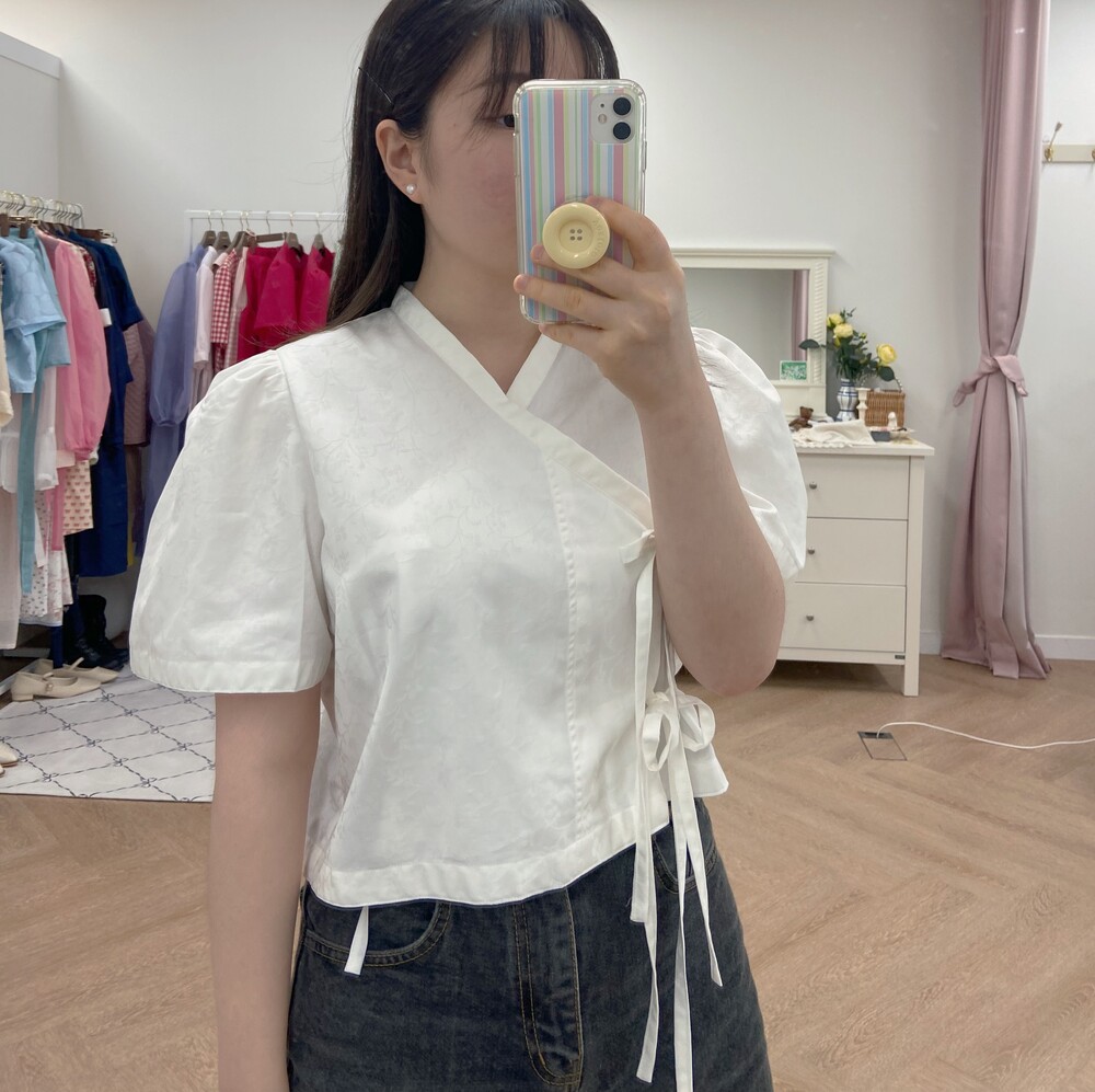 4. 원메이드_화이트 자갸드 반팔 저고리