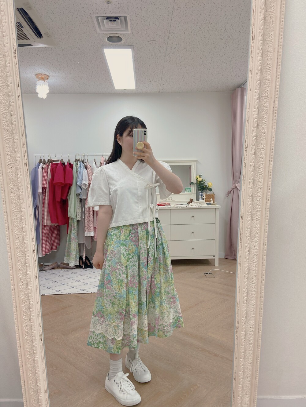 원피스와는 또 다른느낌으로 화이트 블라우스나 저고리와 잘 어울려요!