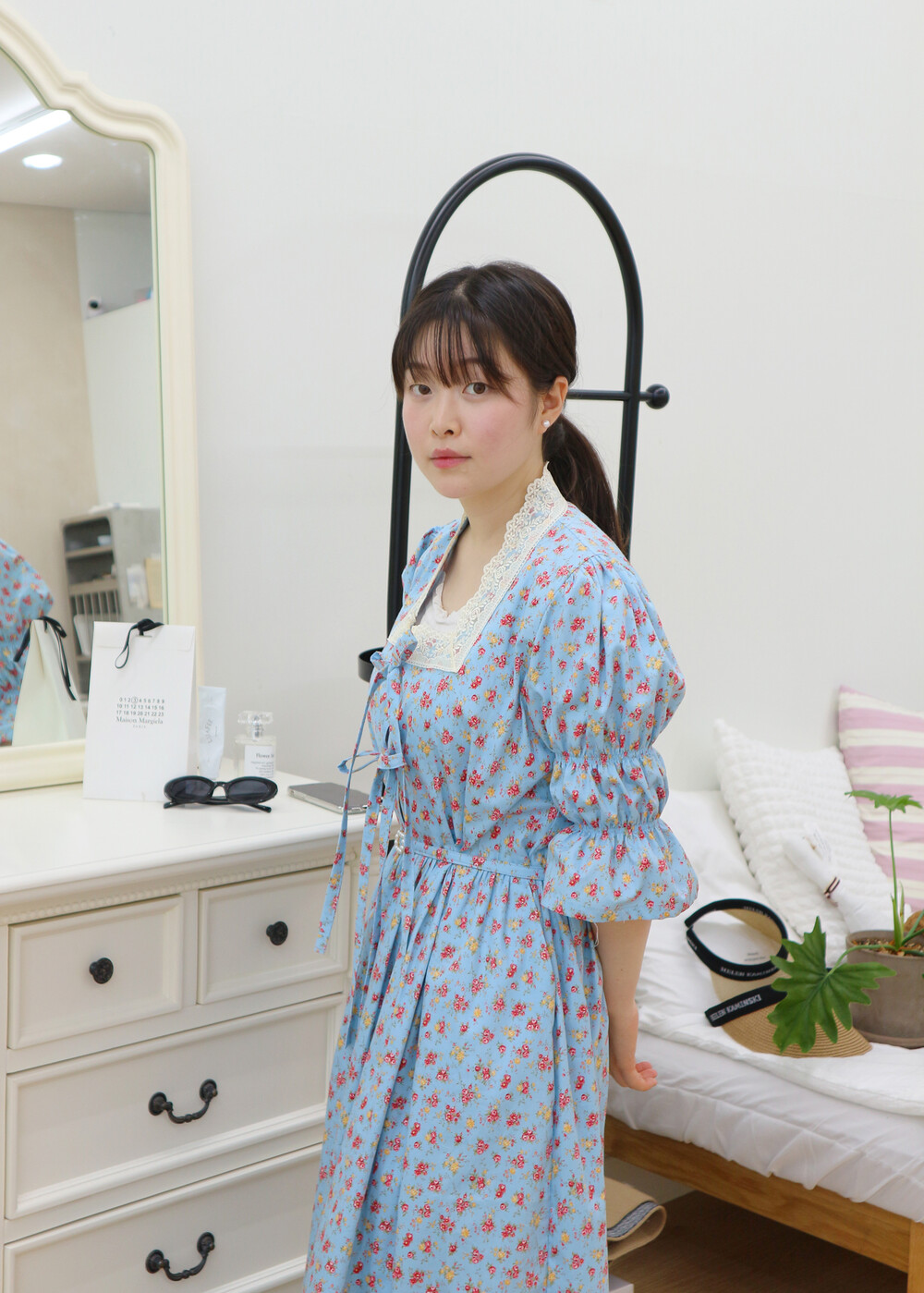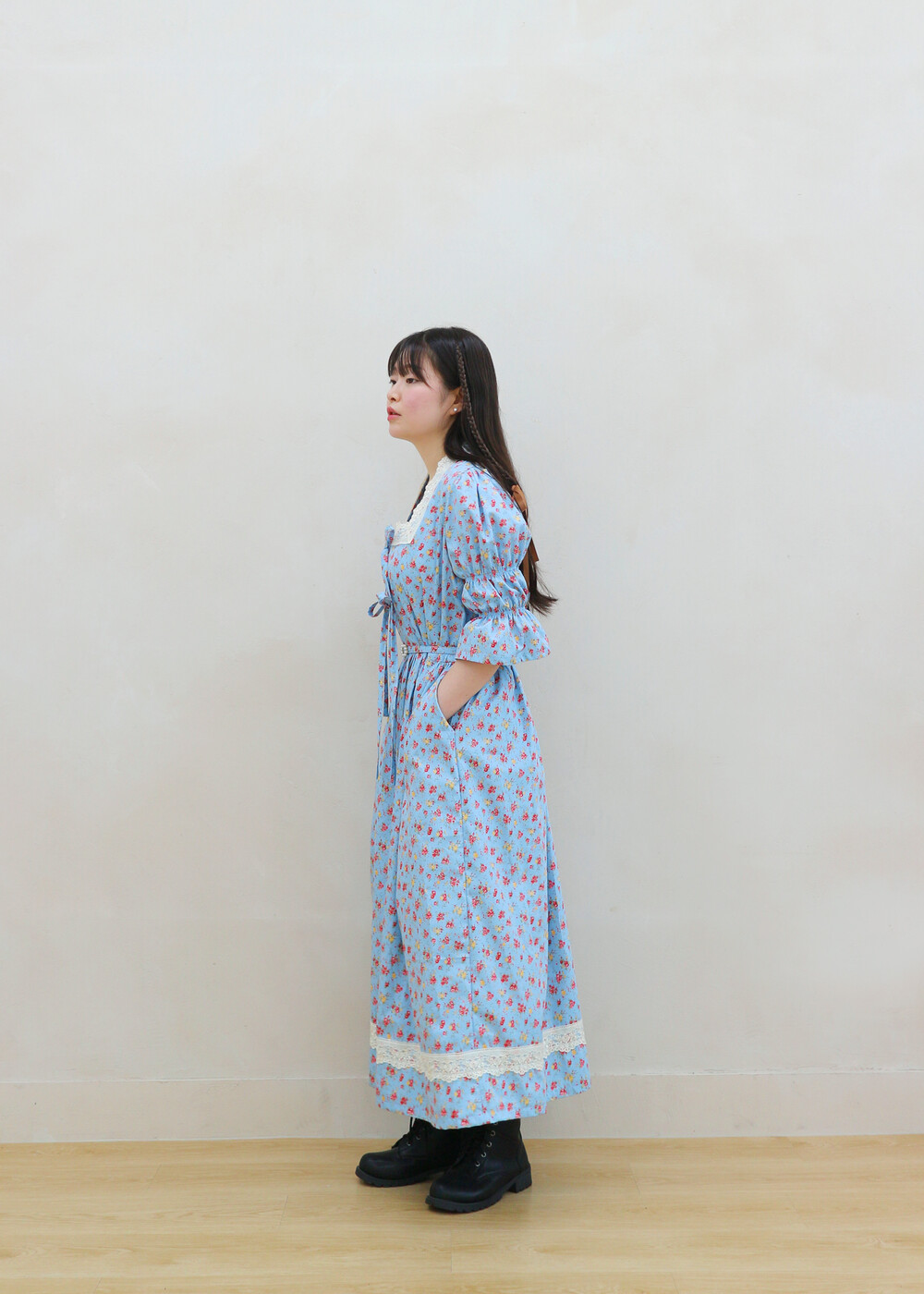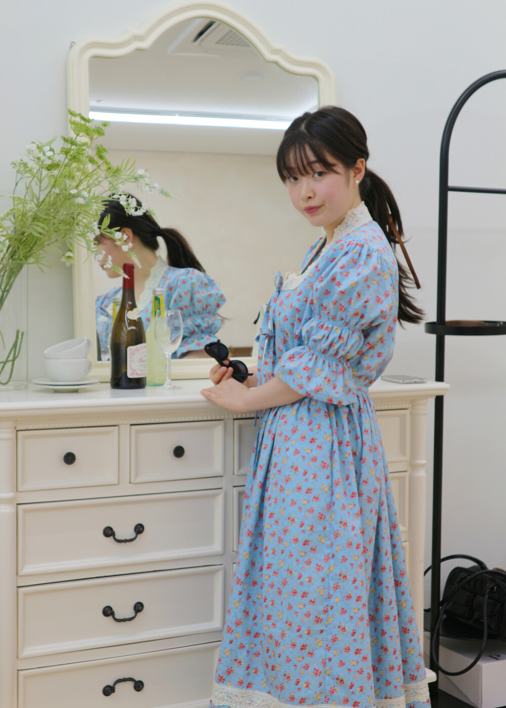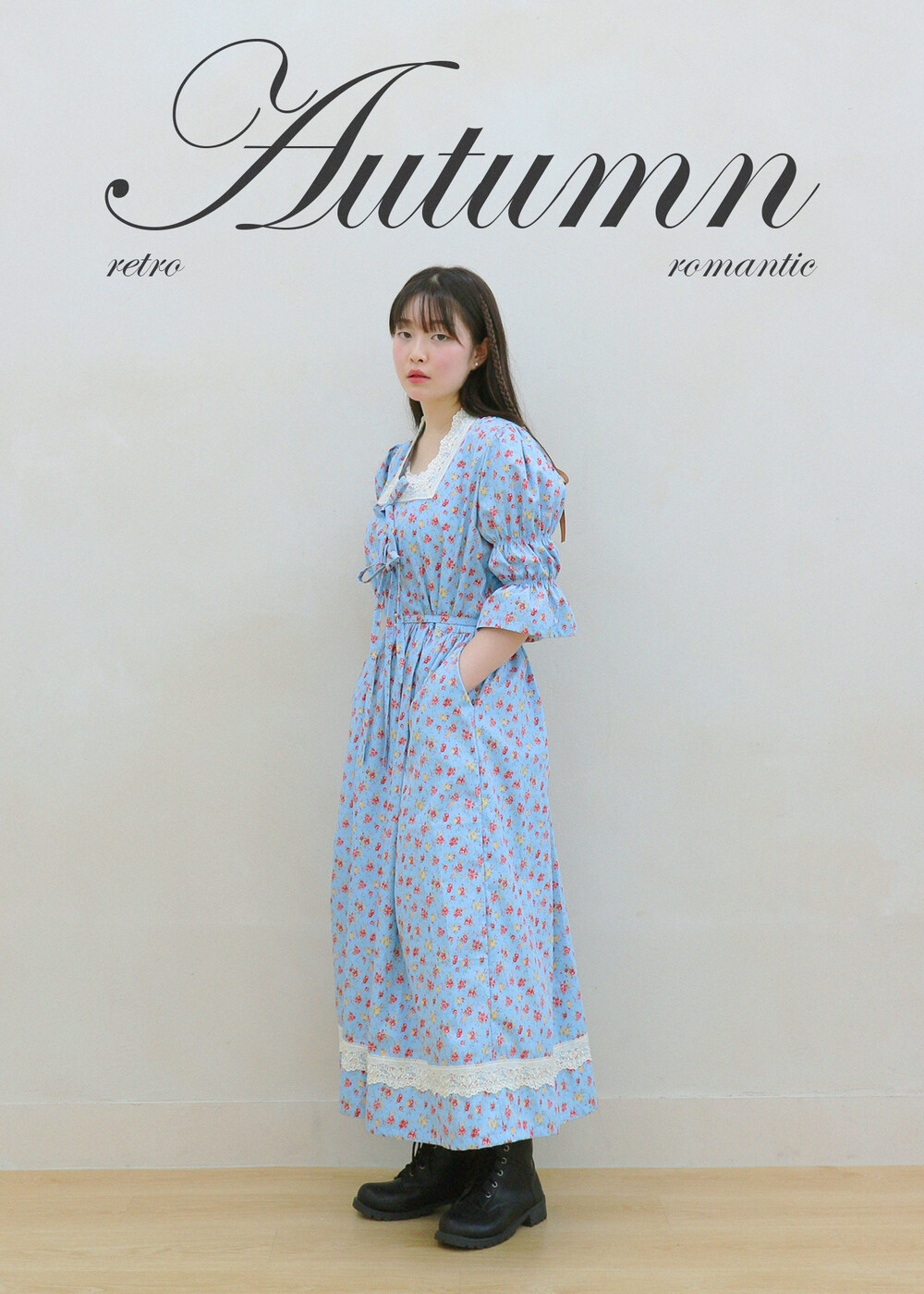 늦 여름~ 가을에 착용하기 좋은 블루 플라워 원피스입니다.