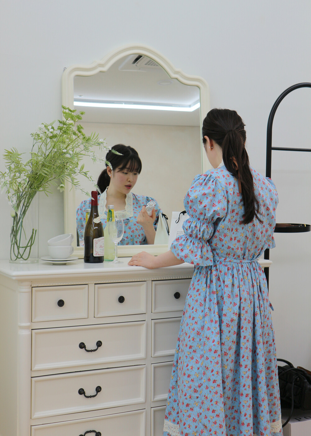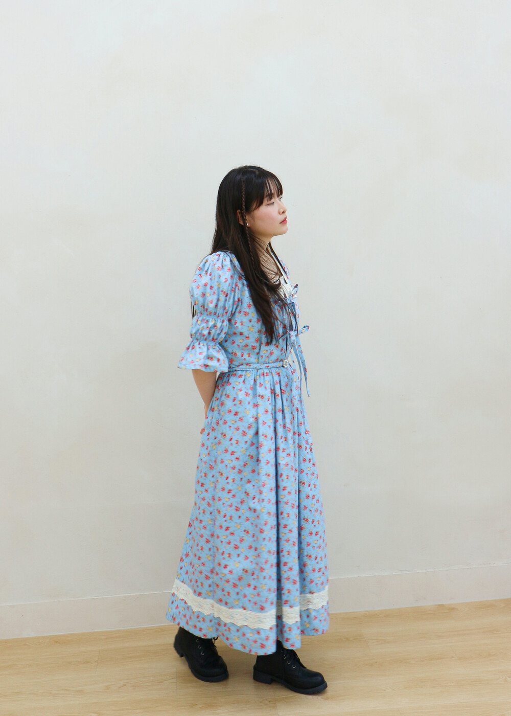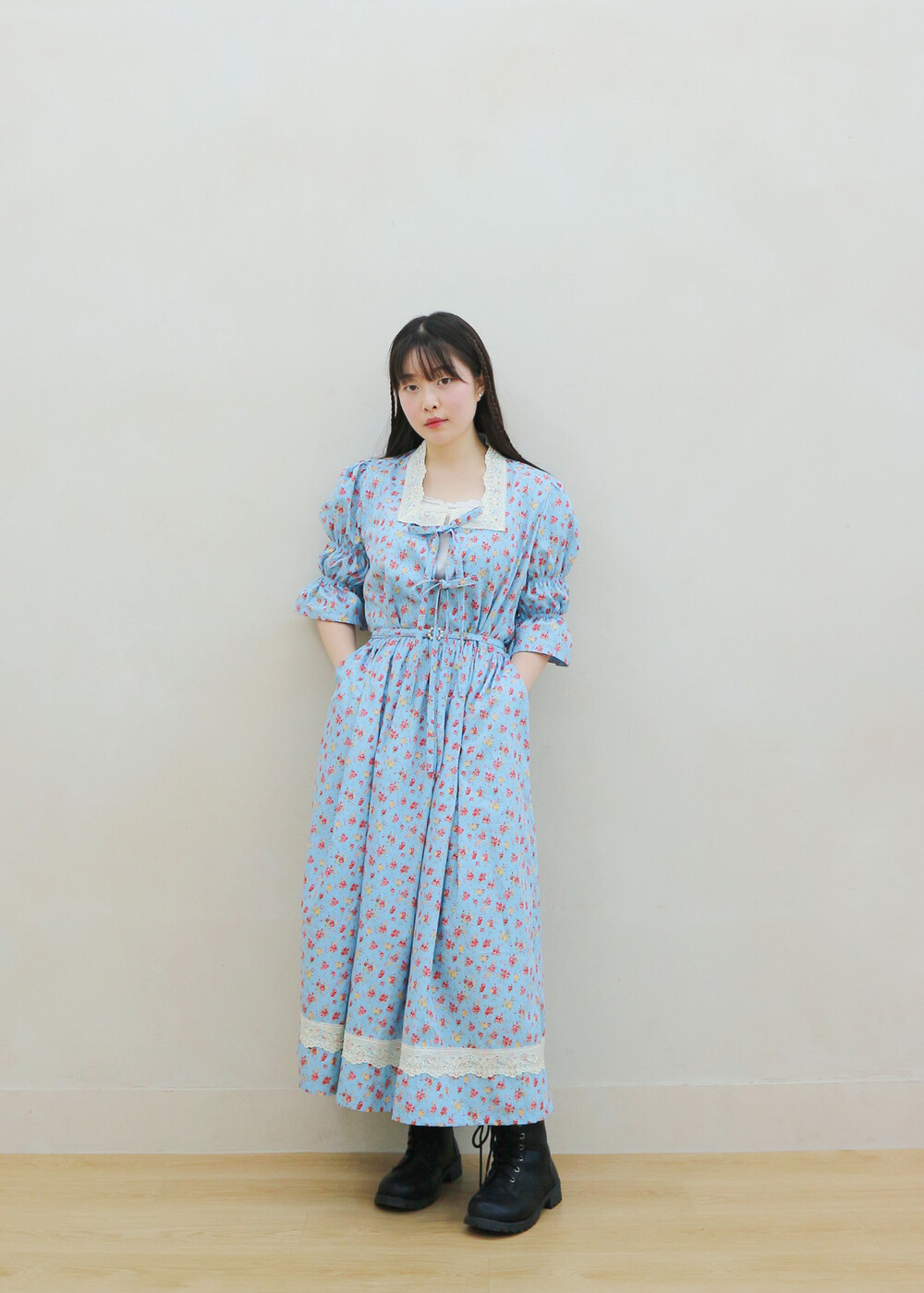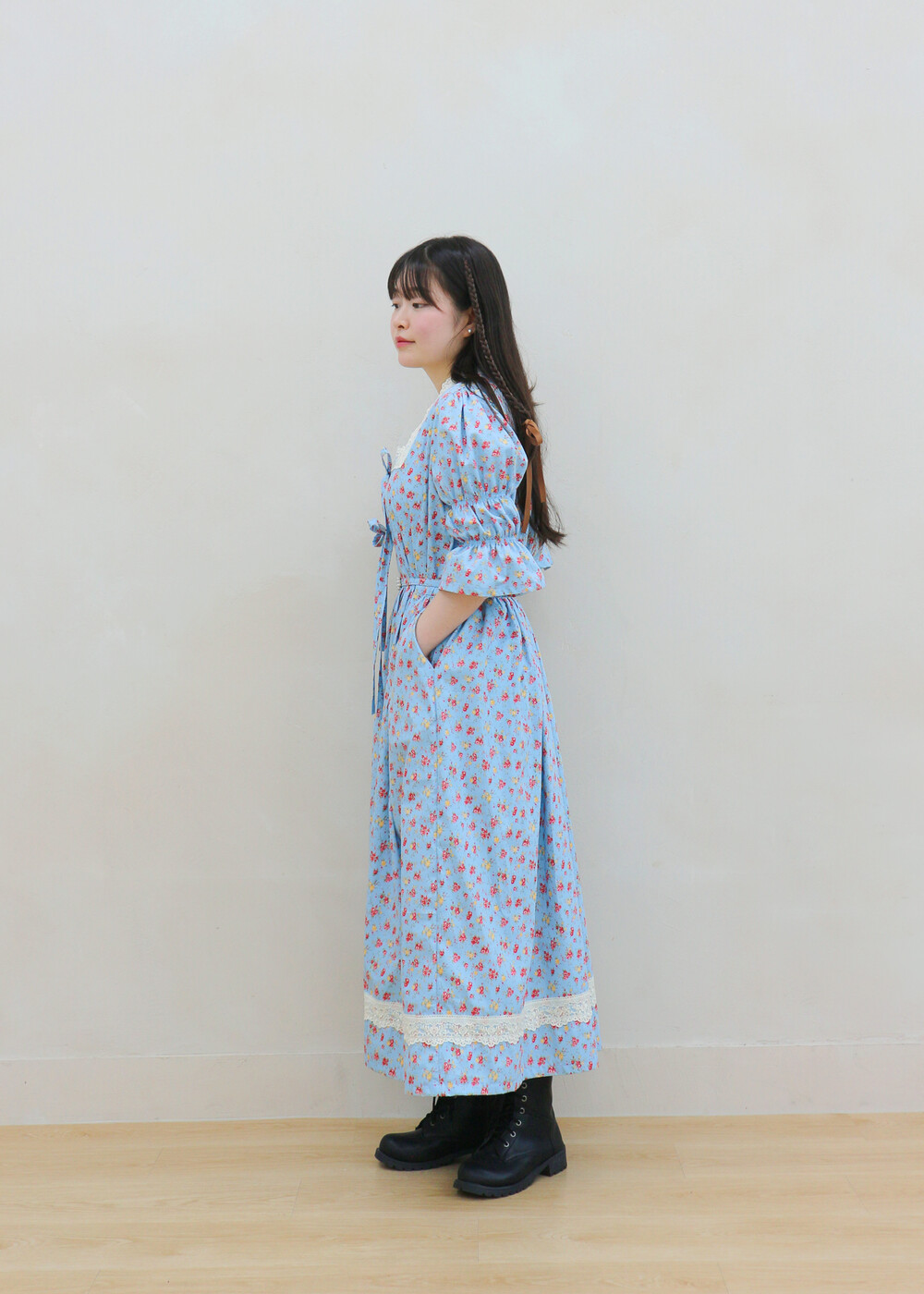 늦 여름~ 가을에 착용하기 좋은 블루 플라워 원피스입니다.