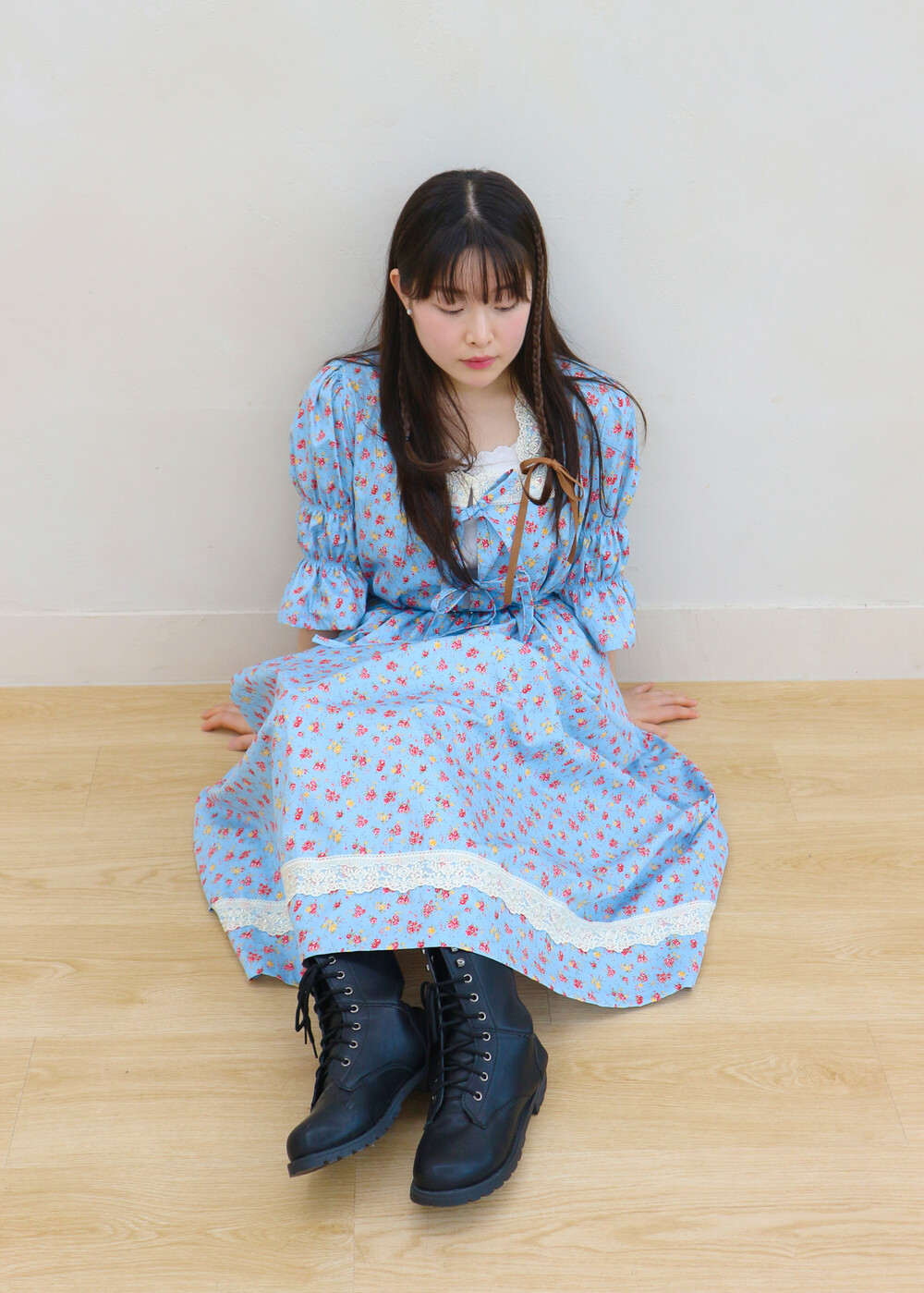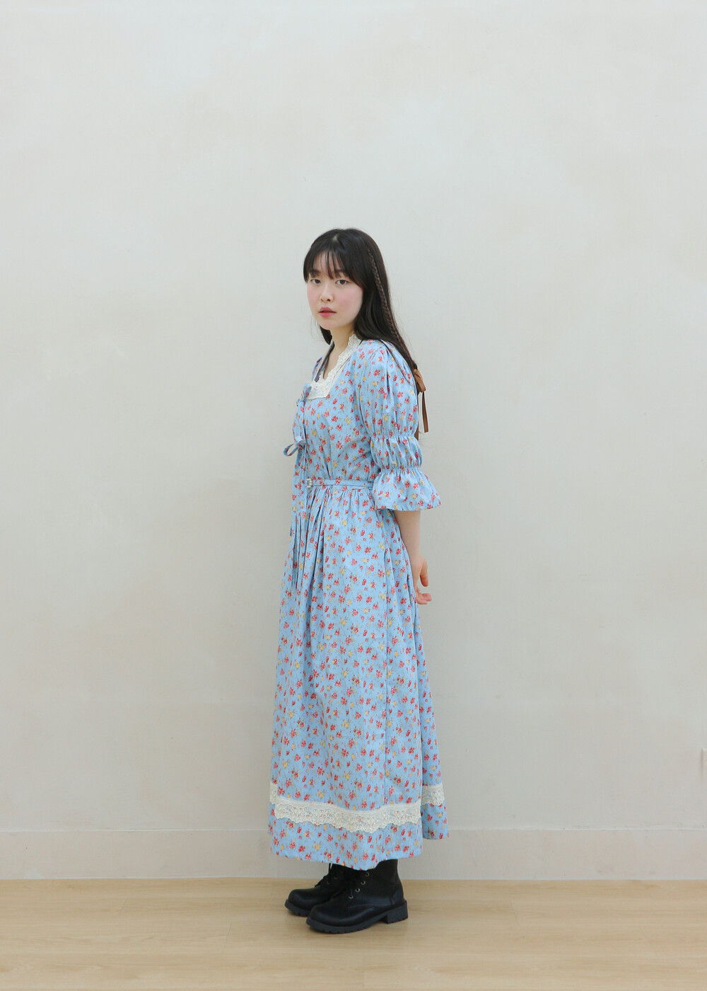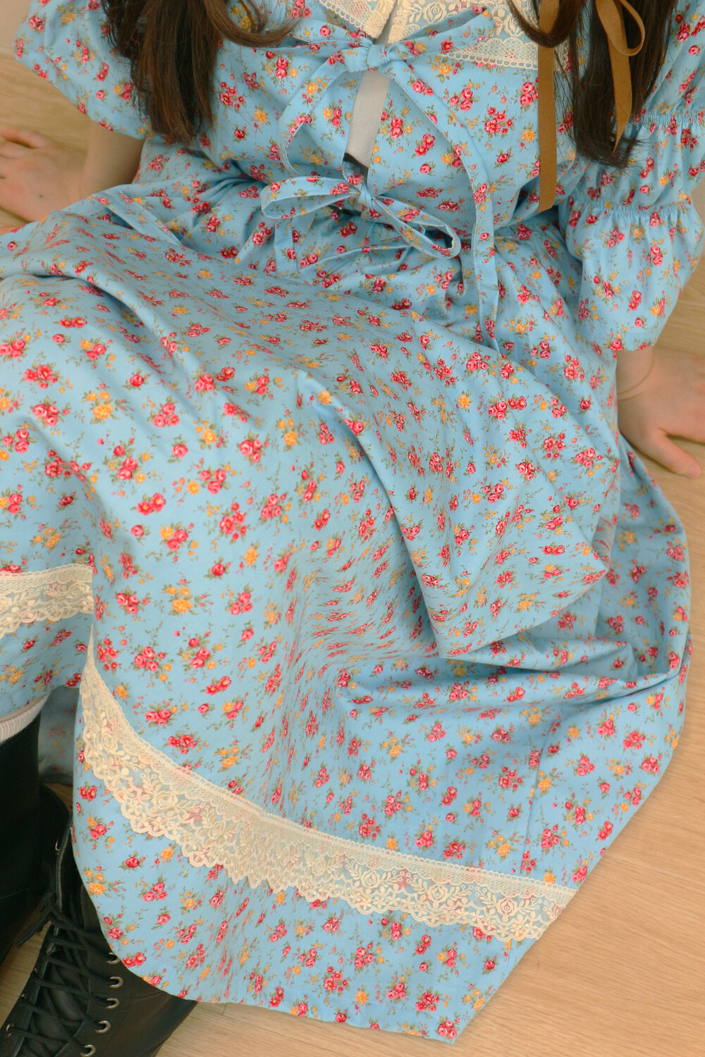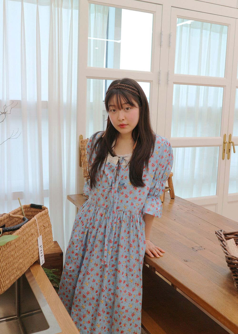 늦 여름~ 가을에 착용하기 좋은 블루 플라워 원피스입니다.