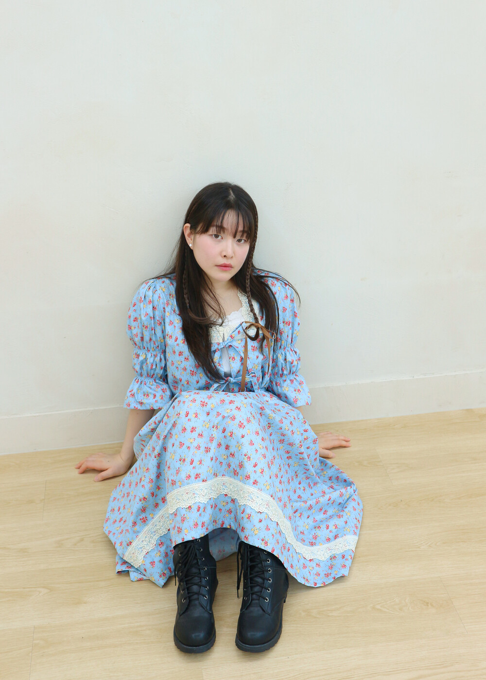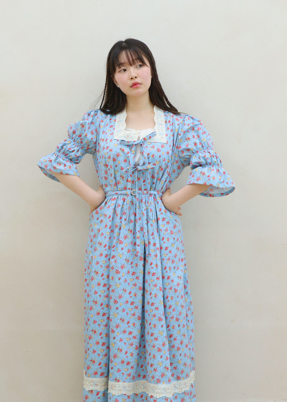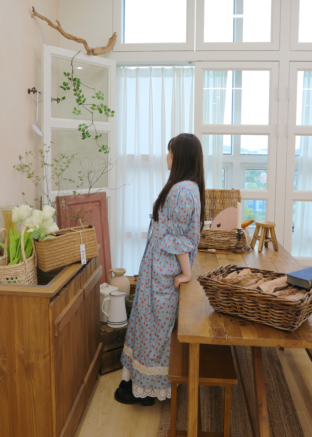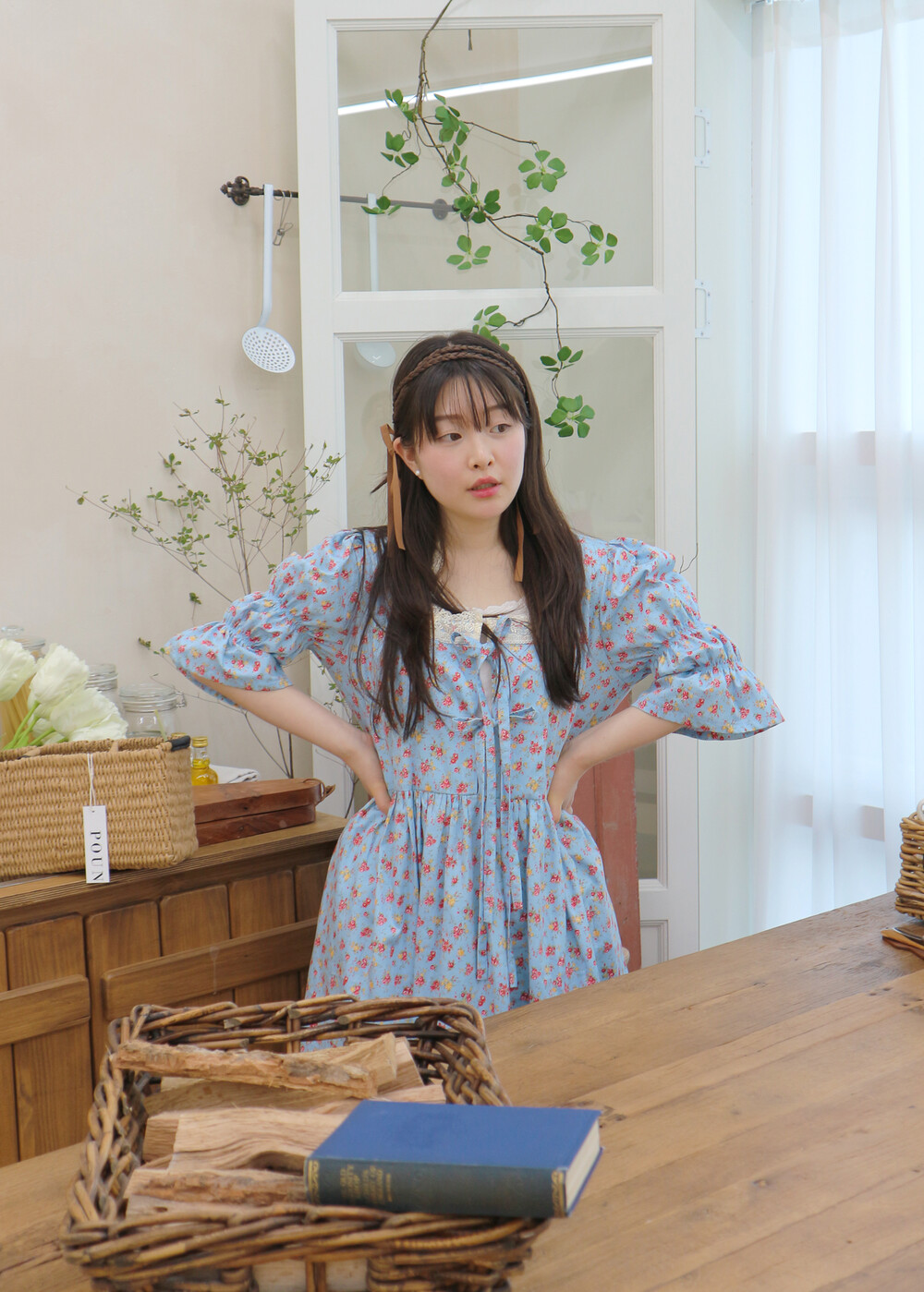 늦 여름~ 가을에 착용하기 좋은 블루 플라워 원피스입니다.