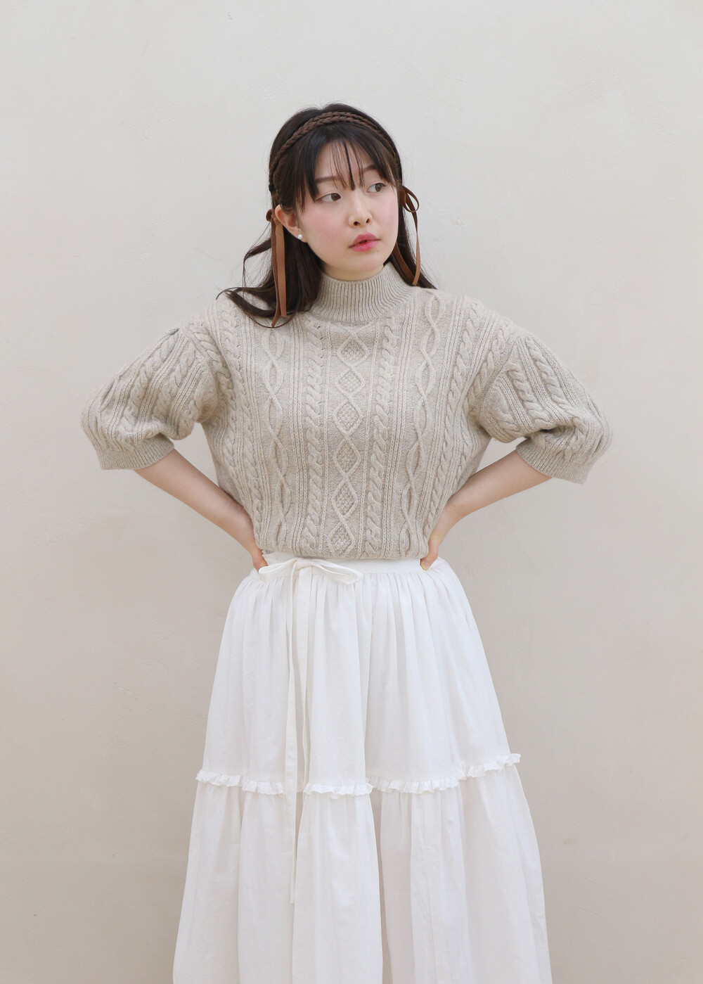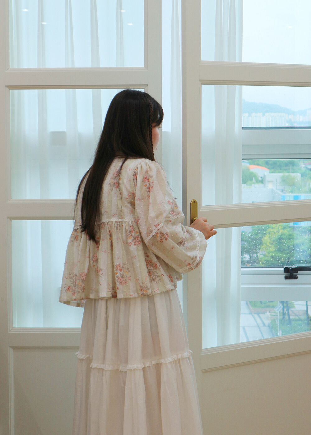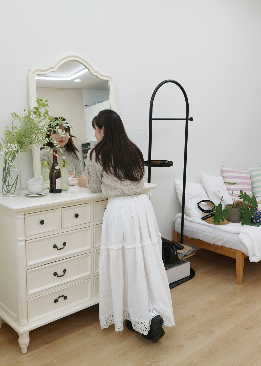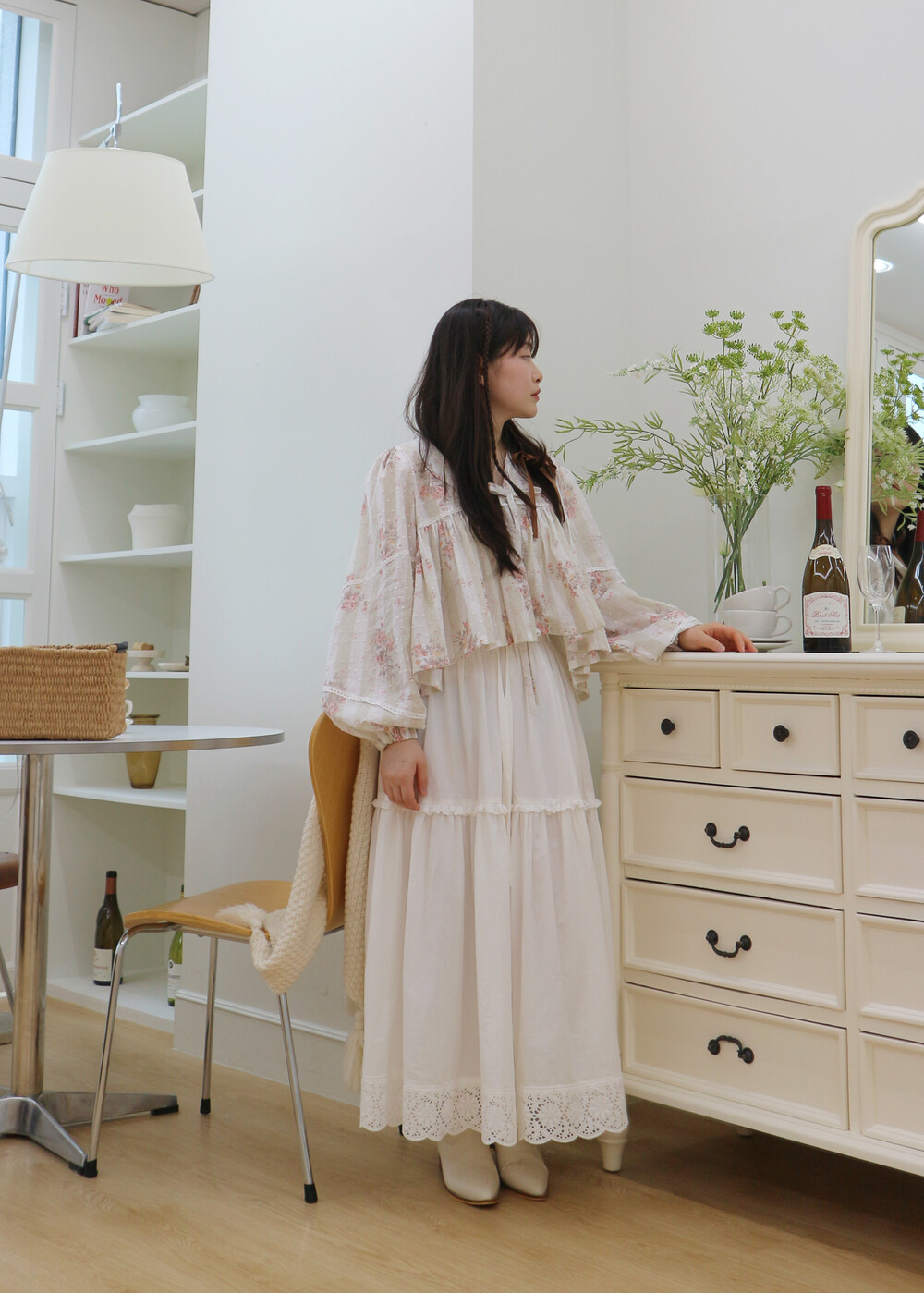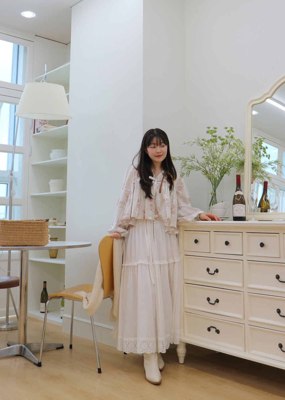 프릴레이스를 중간에 달아주어 포인트를 주었습니다. 치마는