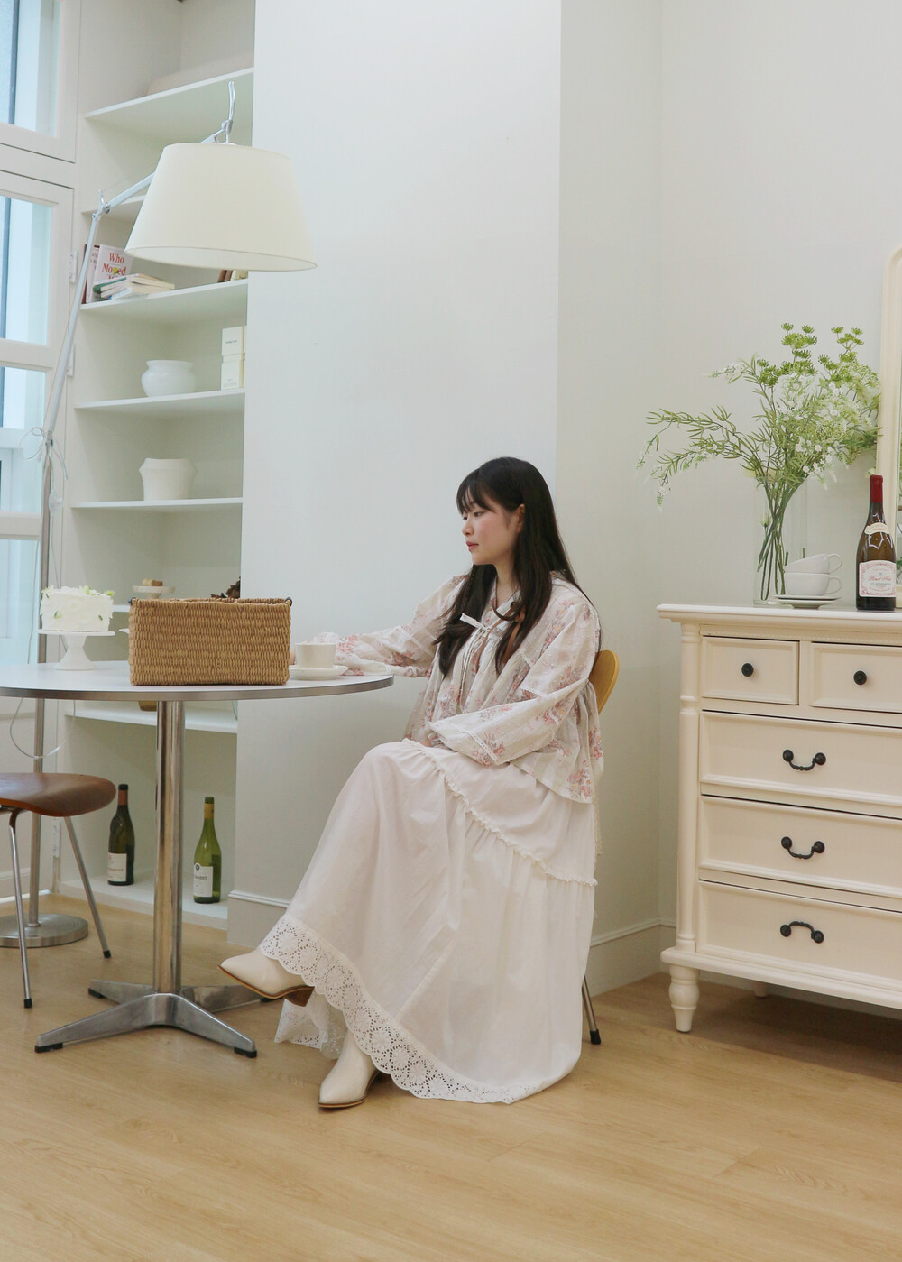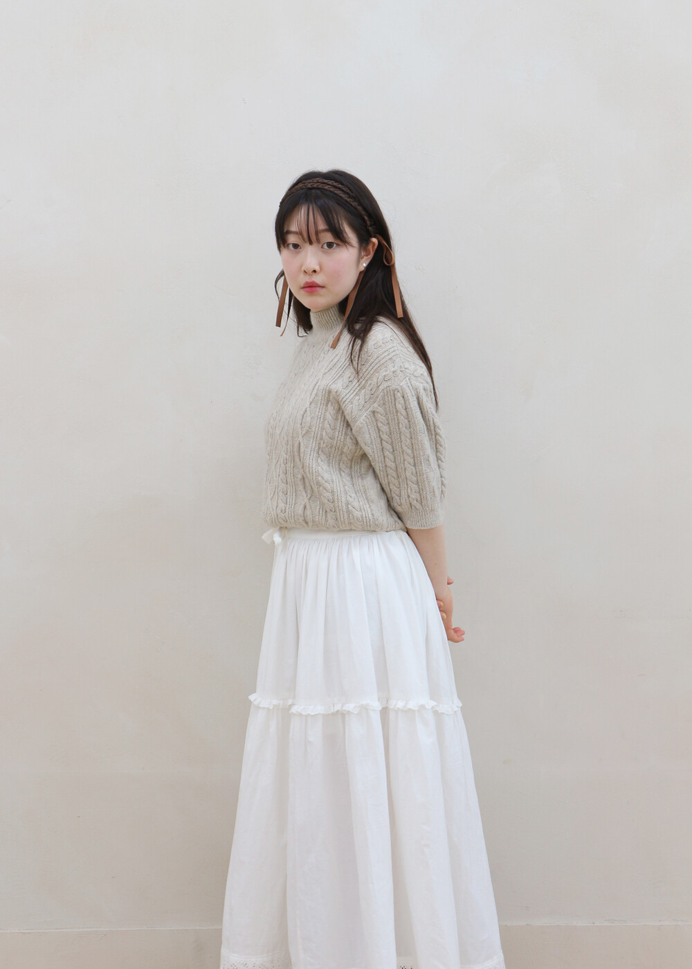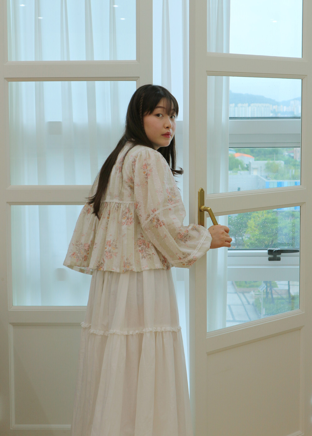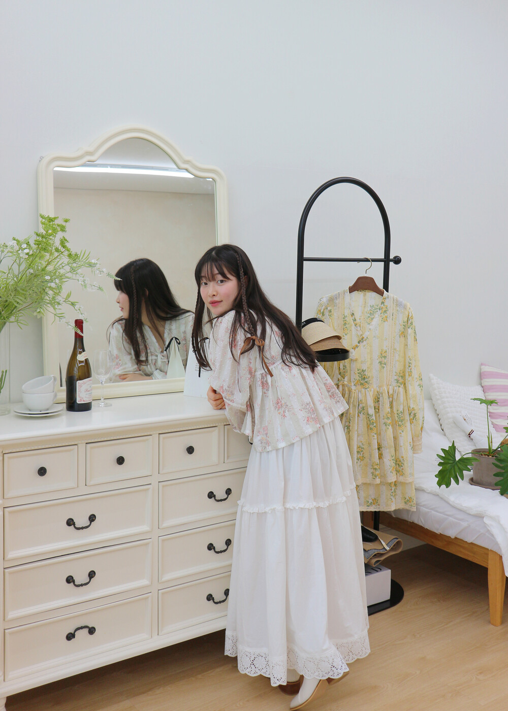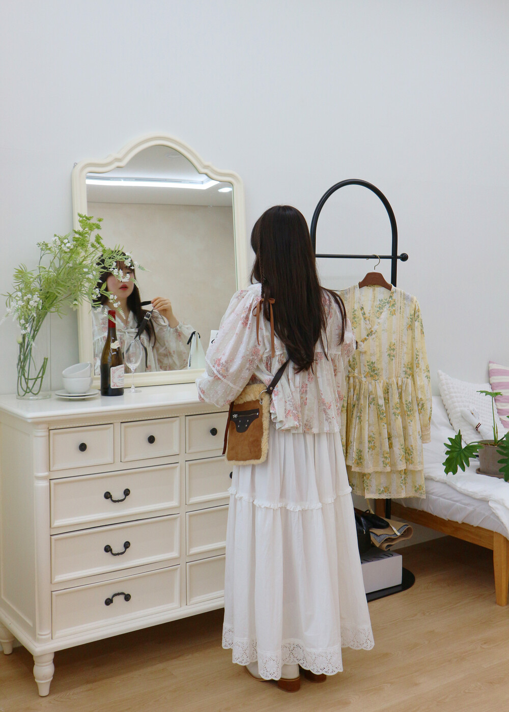프릴레이스를 중간에 달아주어 포인트를 주었습니다. 치마는