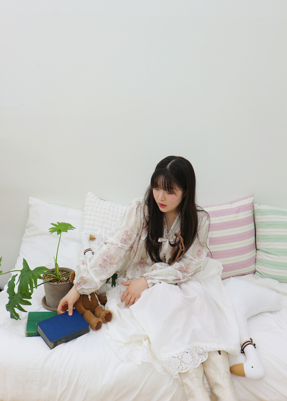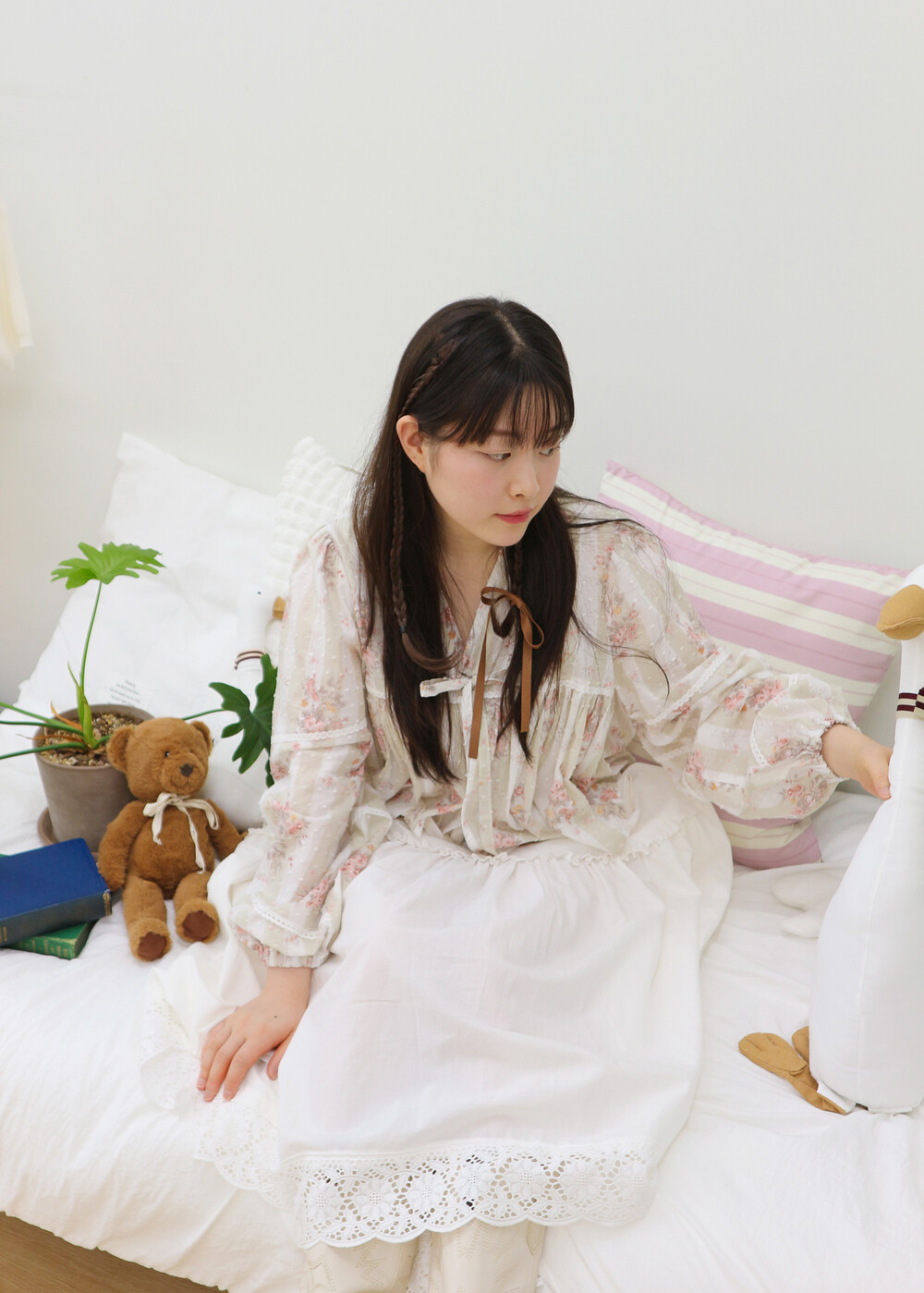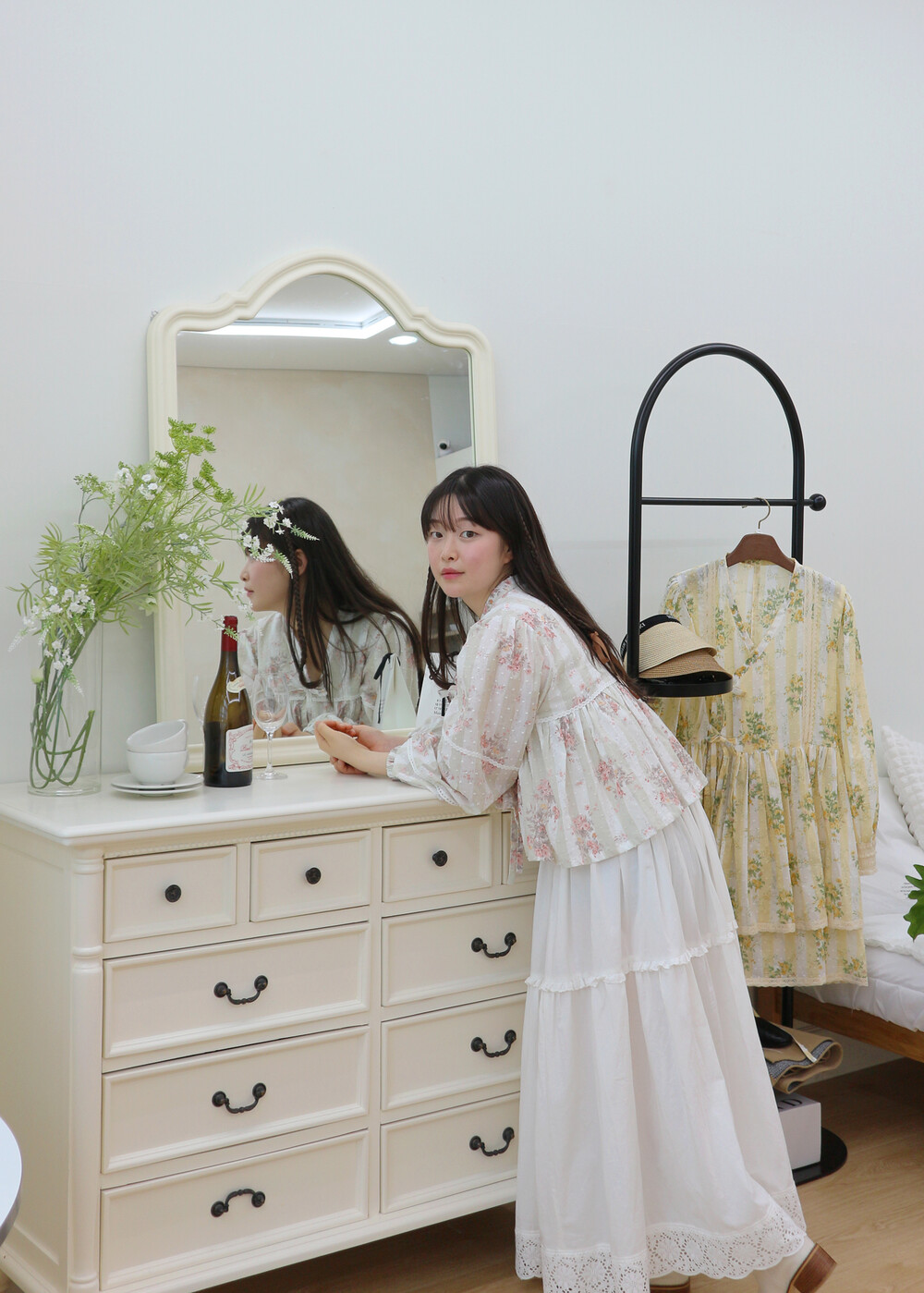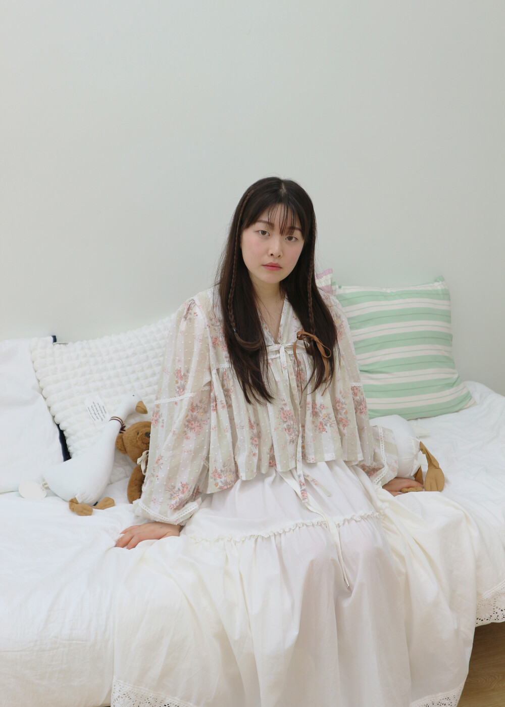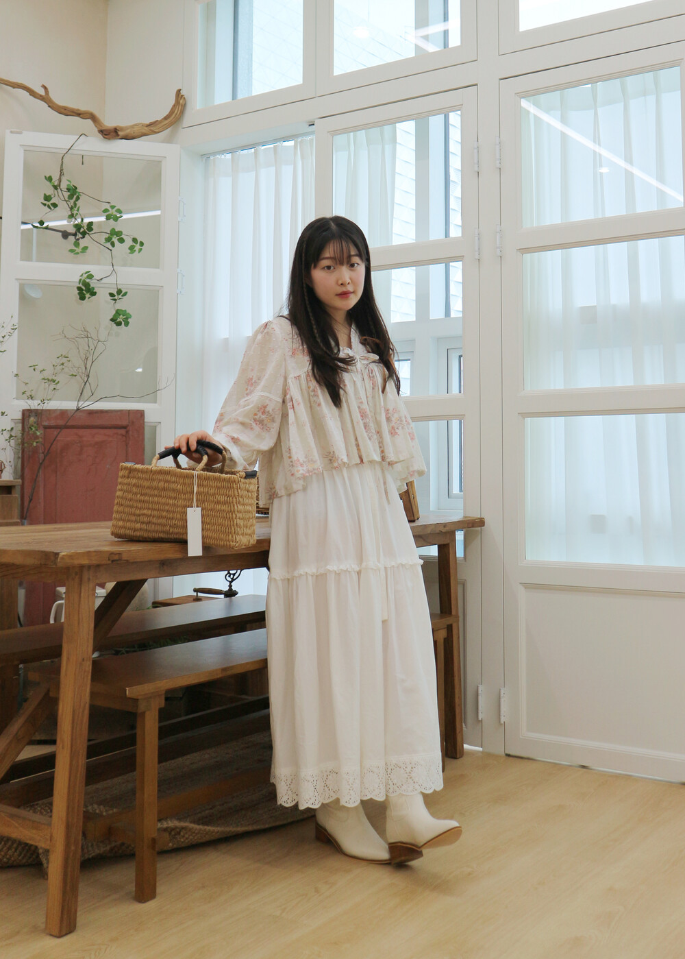 프릴레이스를 중간에 달아주어 포인트를 주었습니다. 치마는