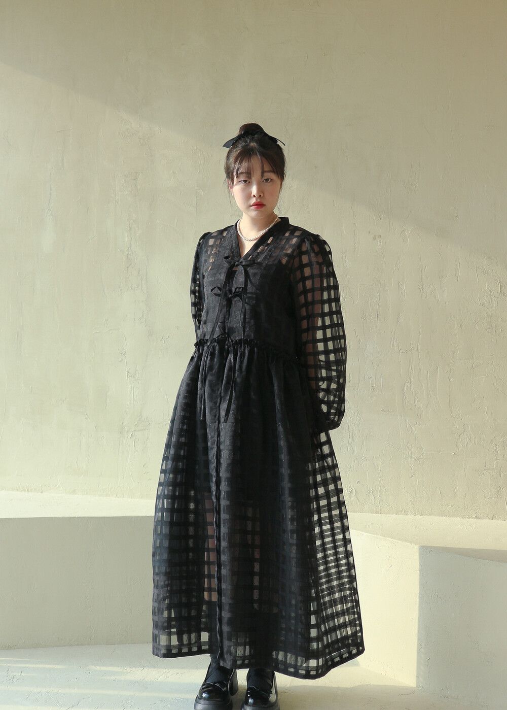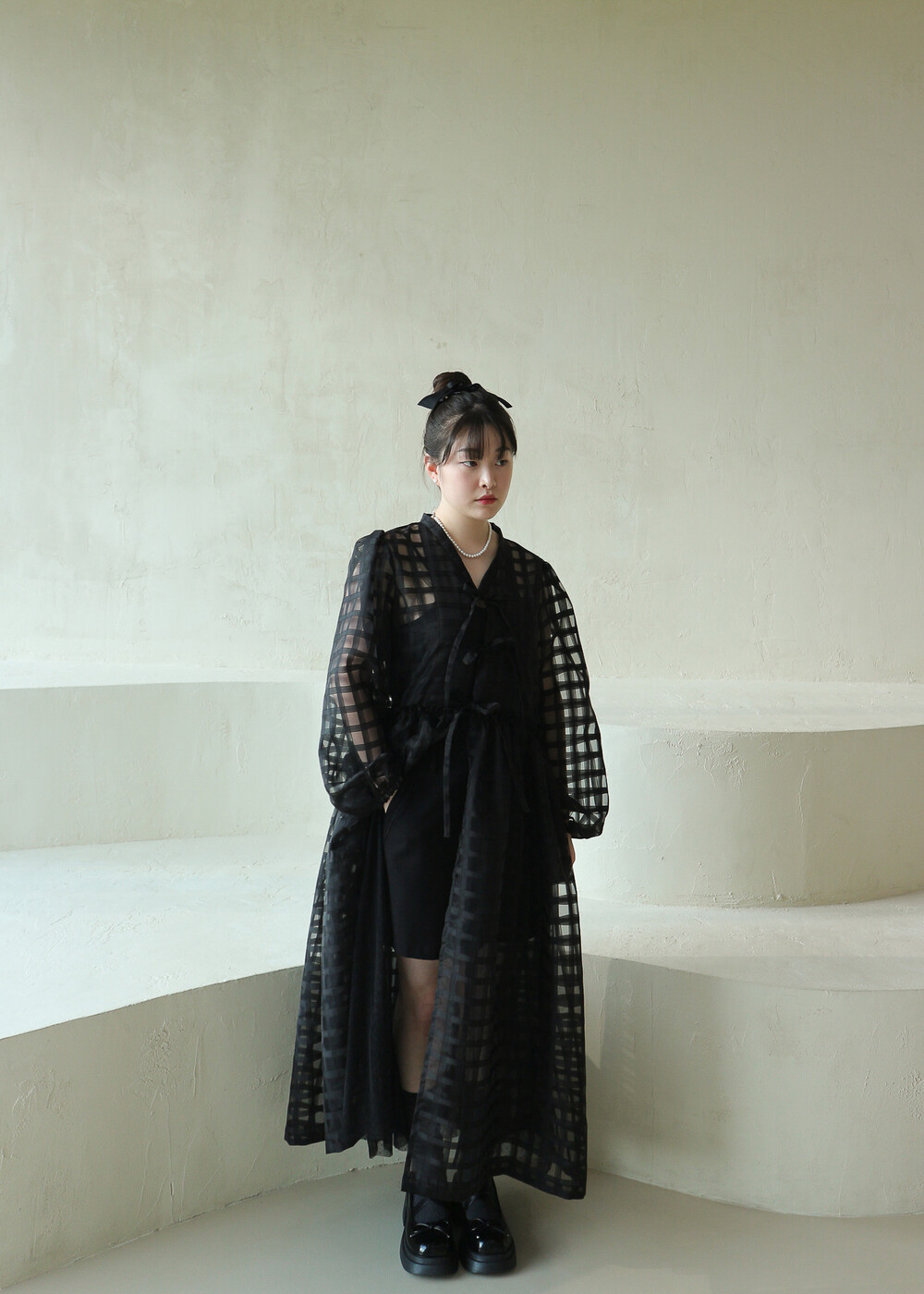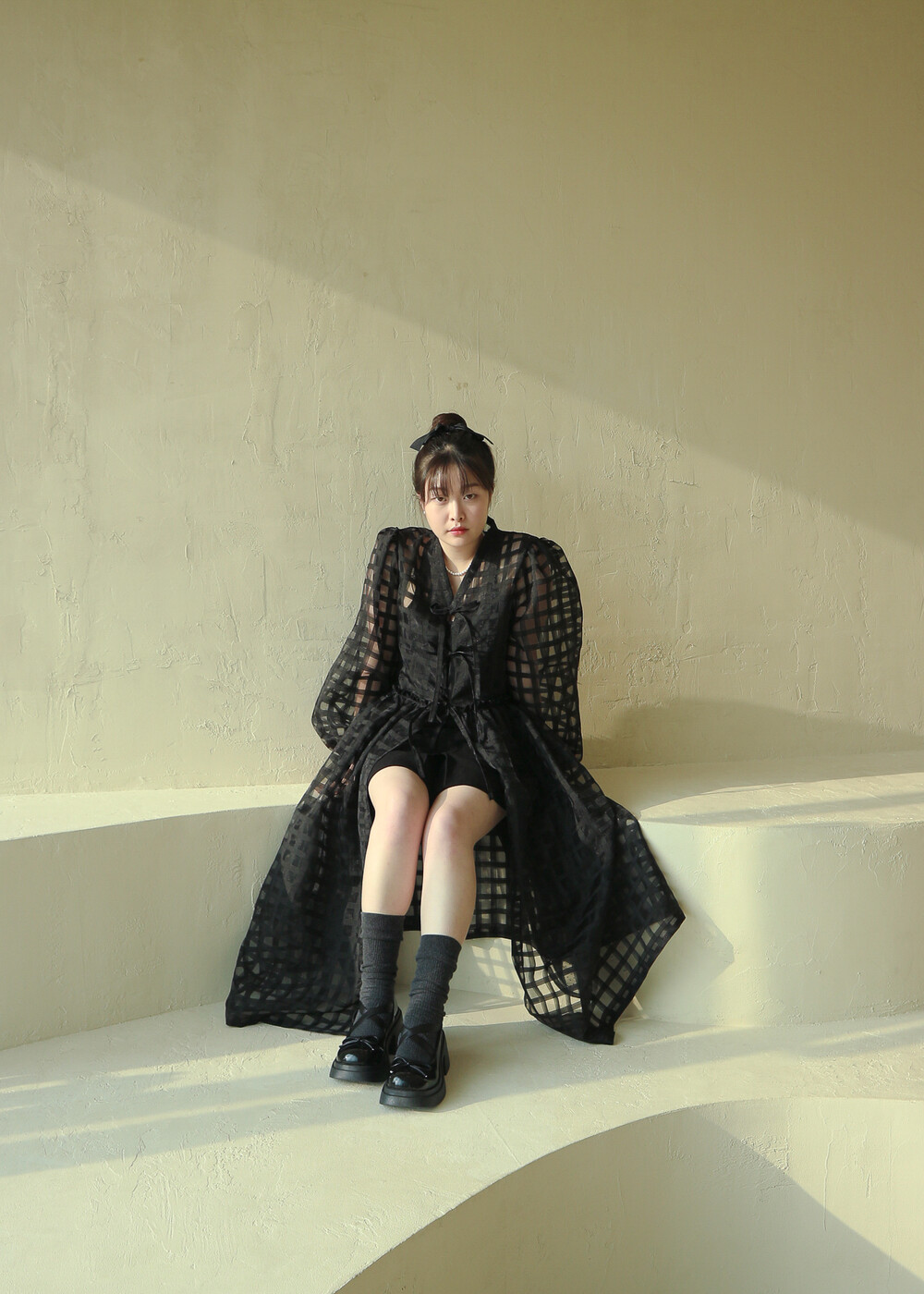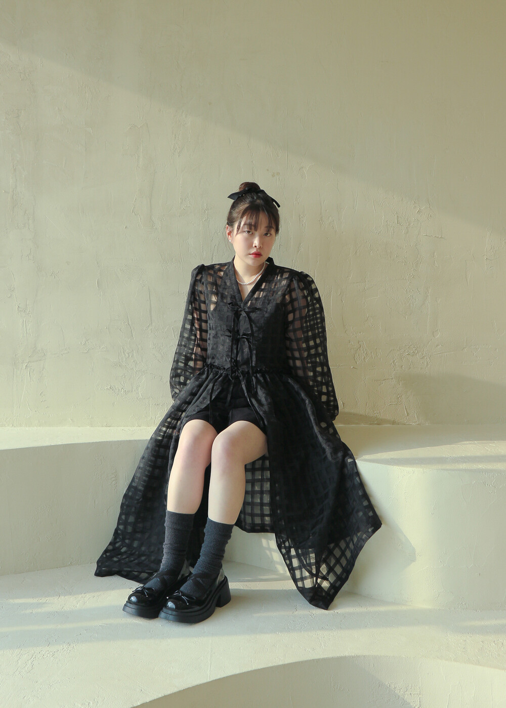 고급스러운 체크 패턴의 시스루 원단으로 제작되었으며,