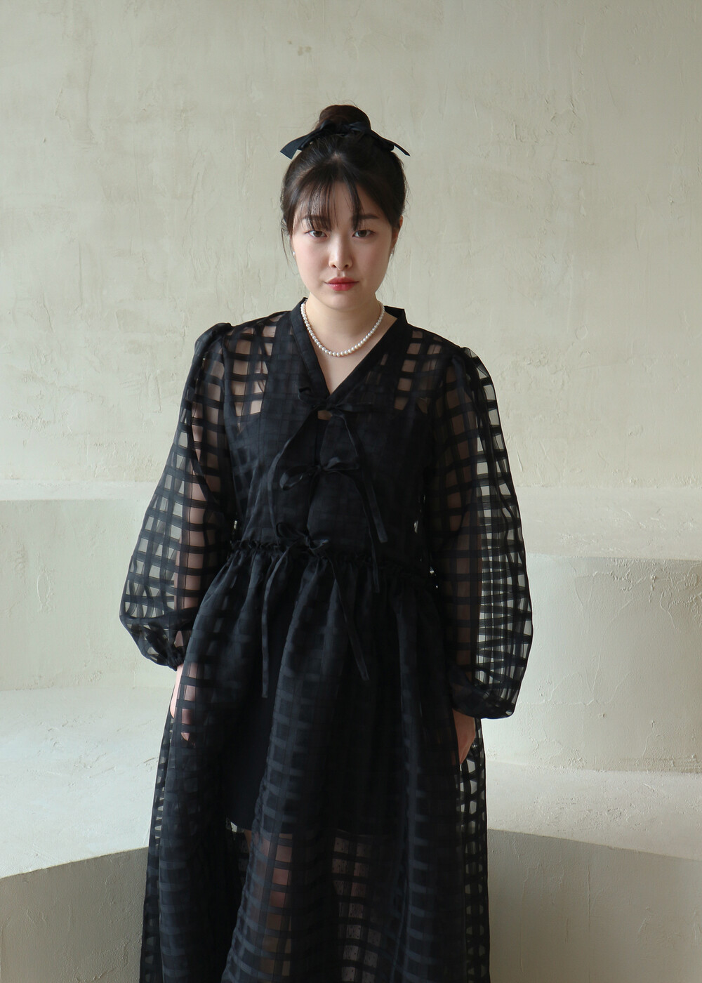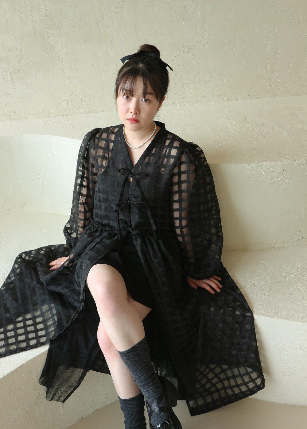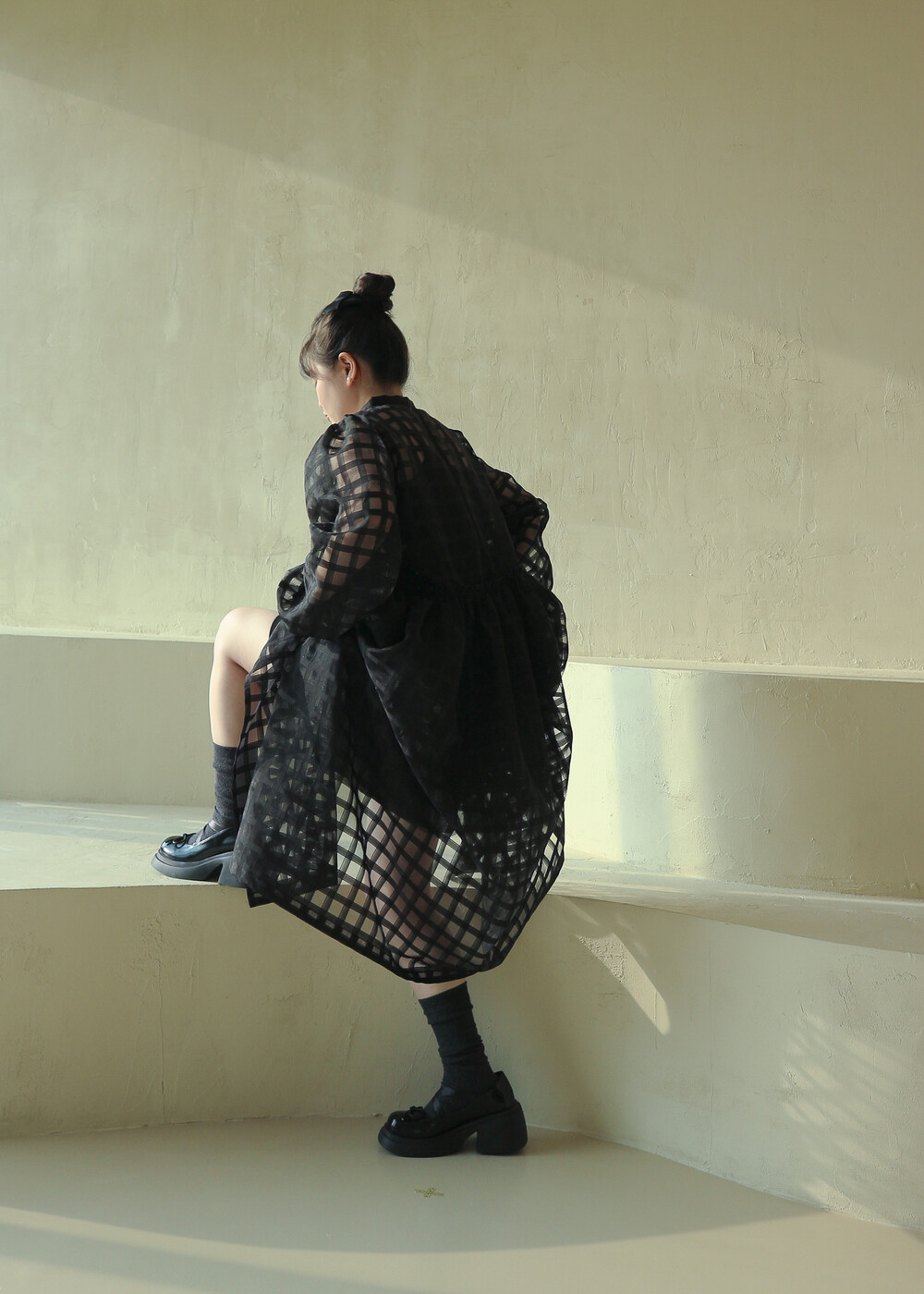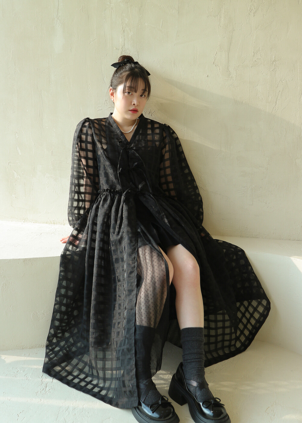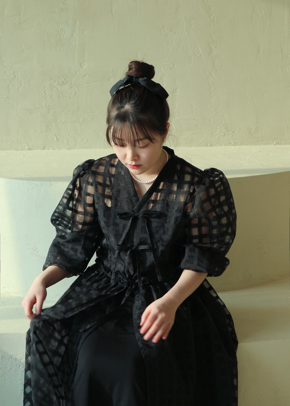 고급스러운 체크 패턴의 시스루 원단으로 제작되었으며,