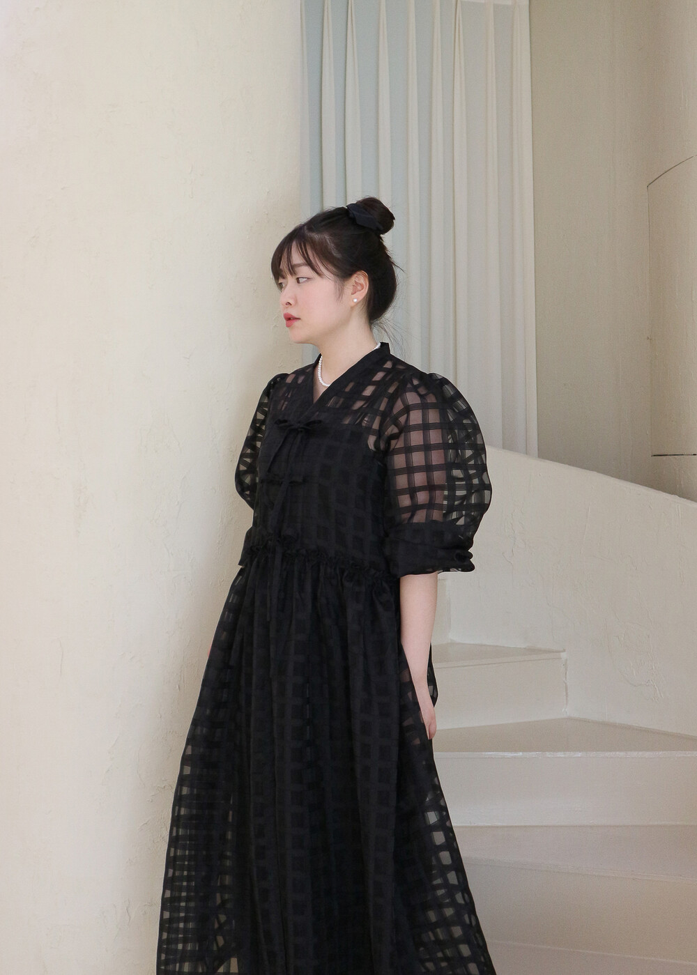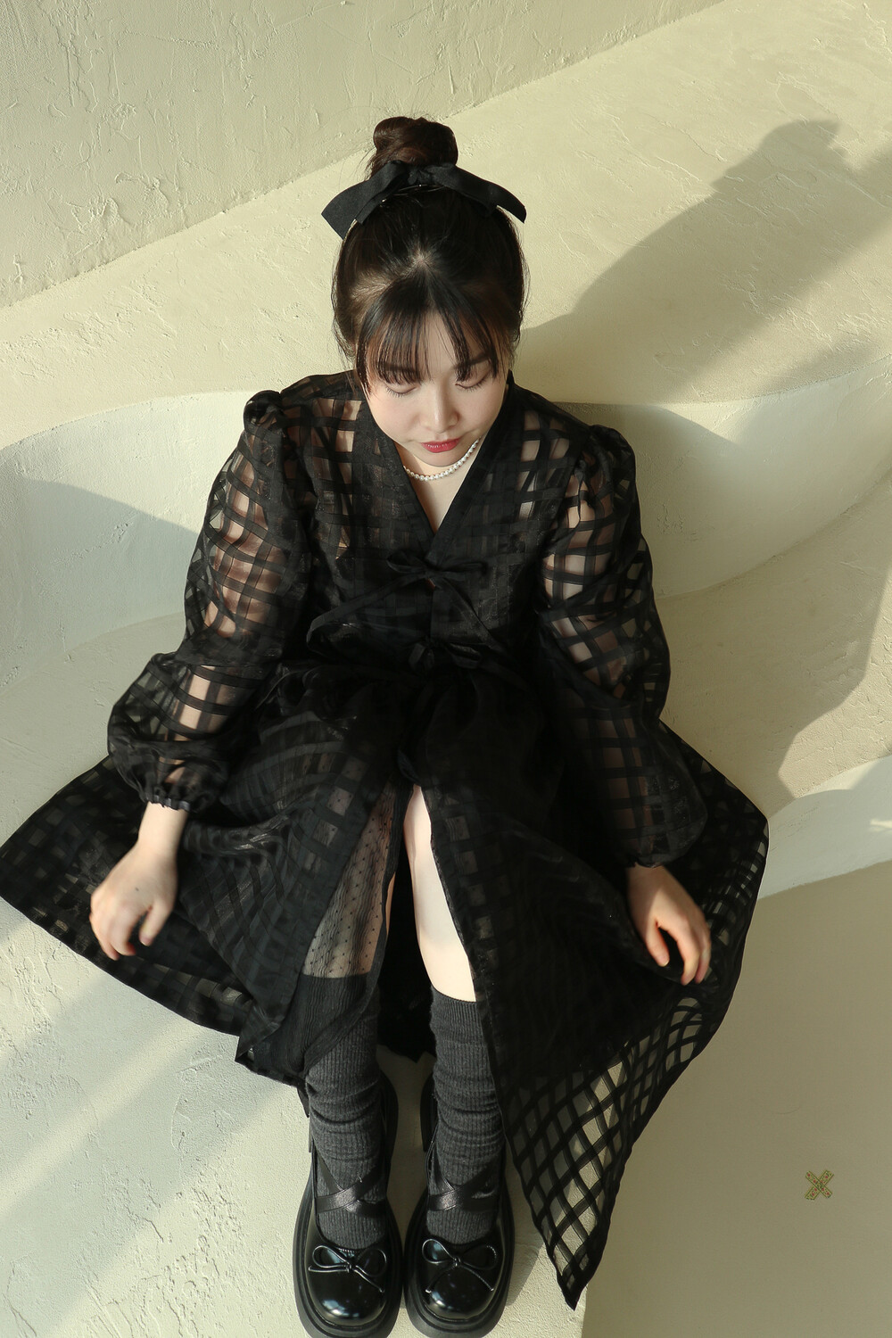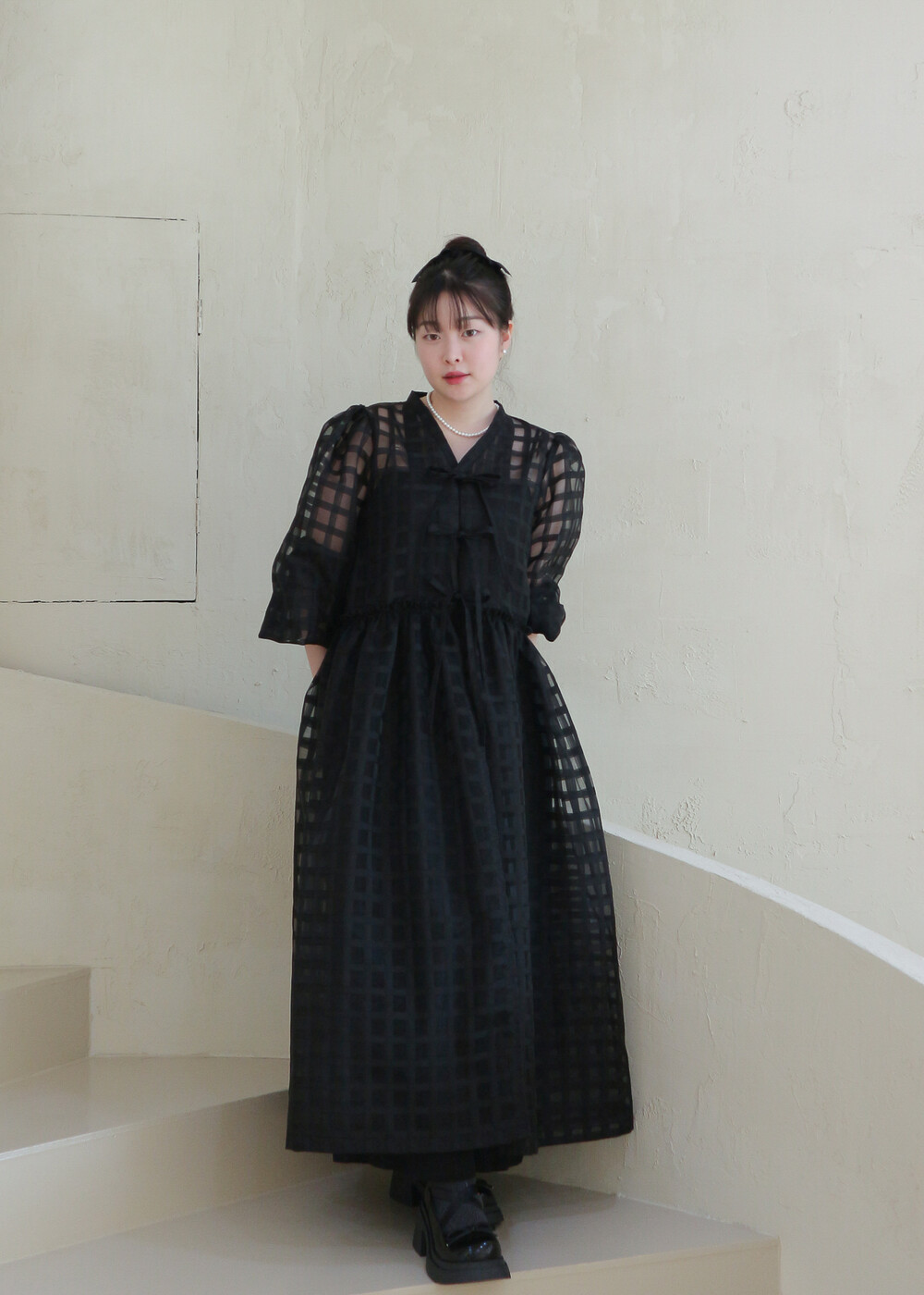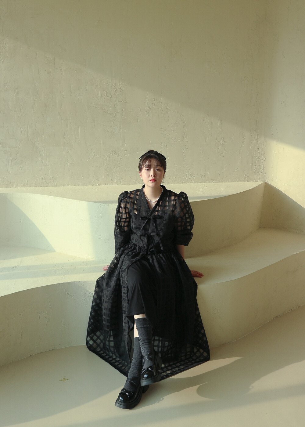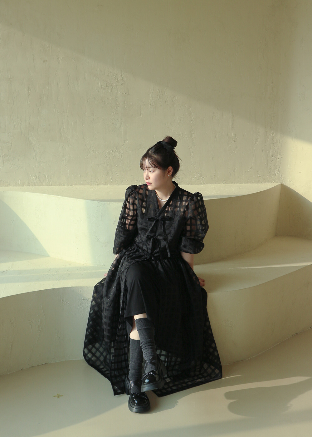 고급스러운 체크 패턴의 시스루 원단으로 제작되었으며,