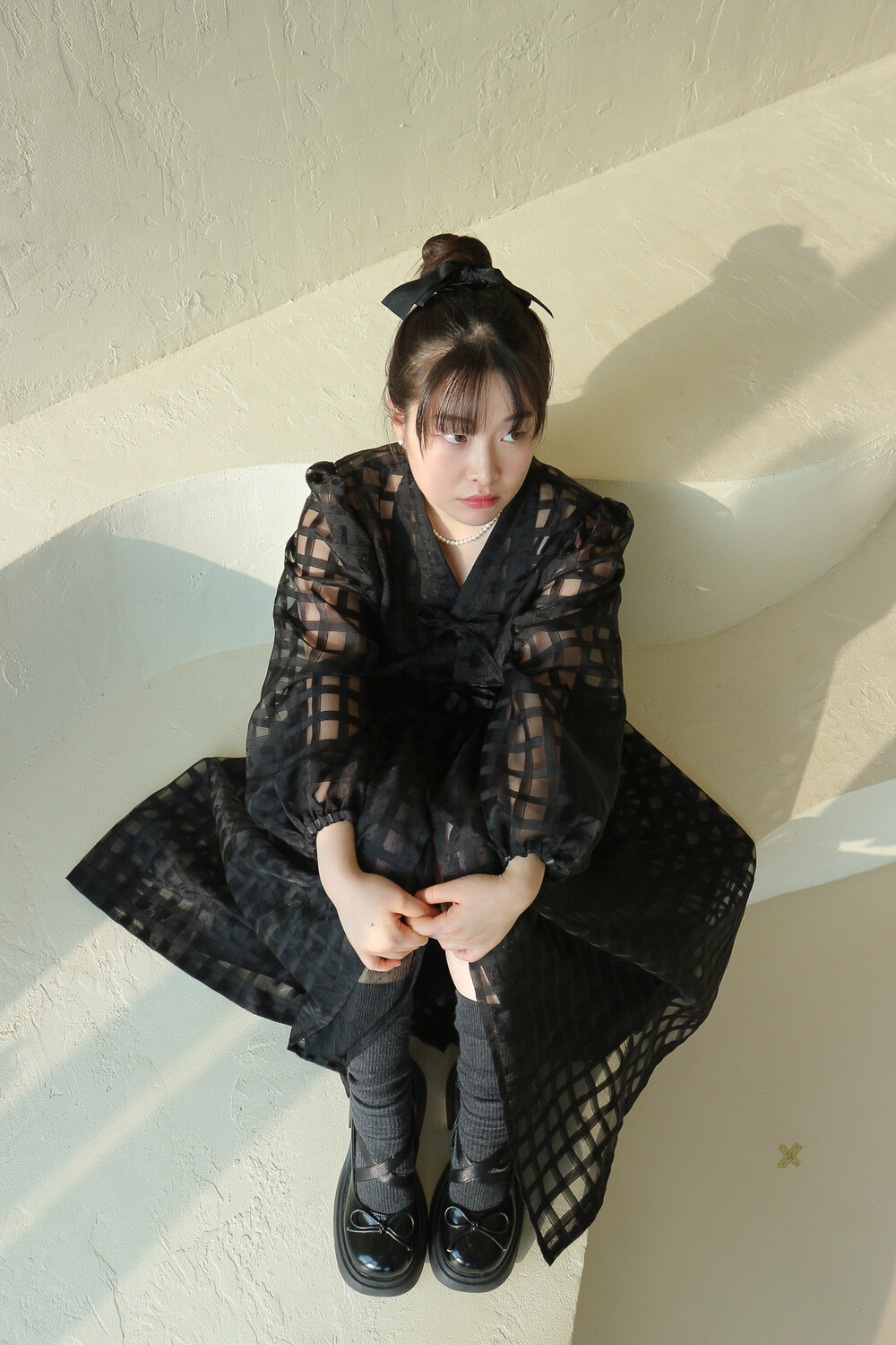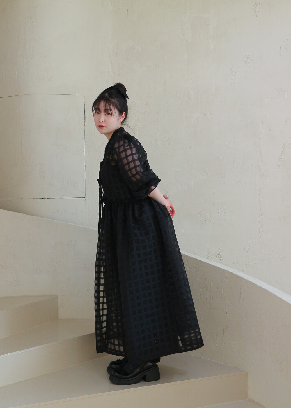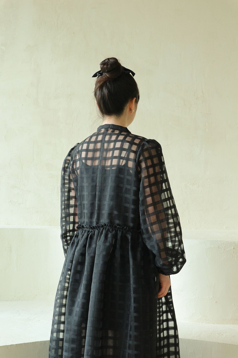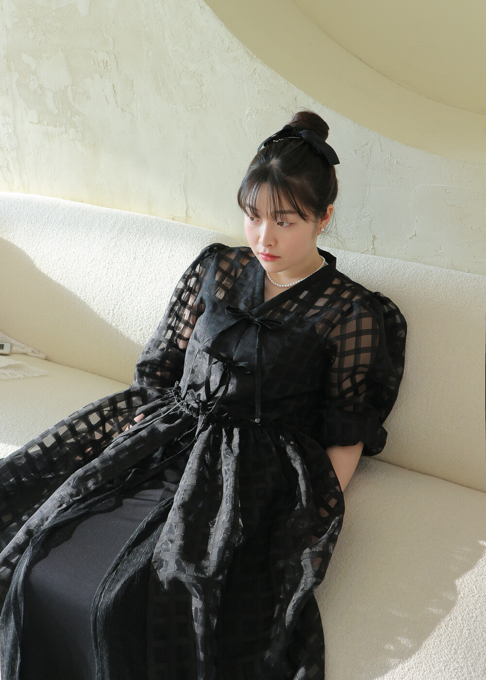 고급스러운 체크 패턴의 시스루 원단으로 제작되었으며,