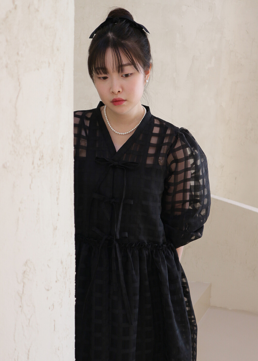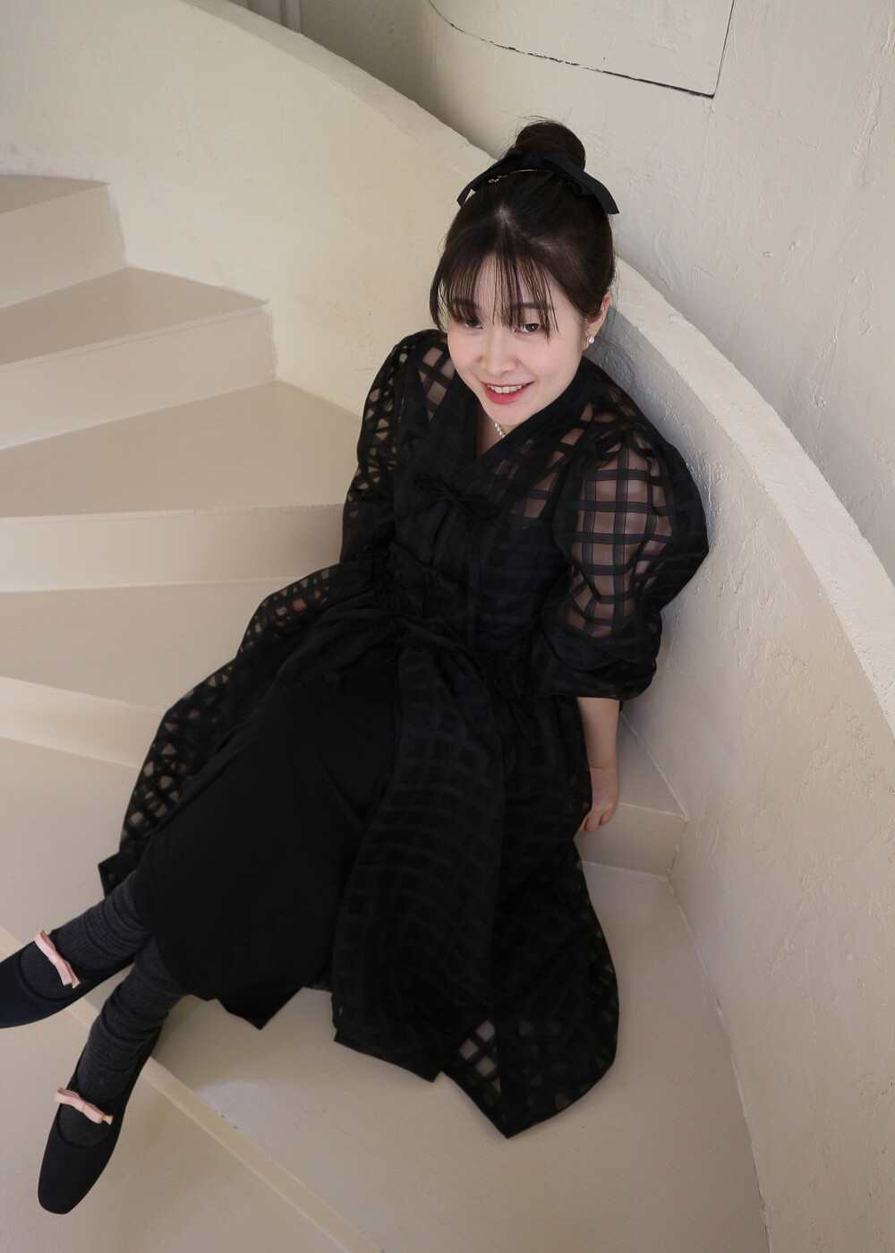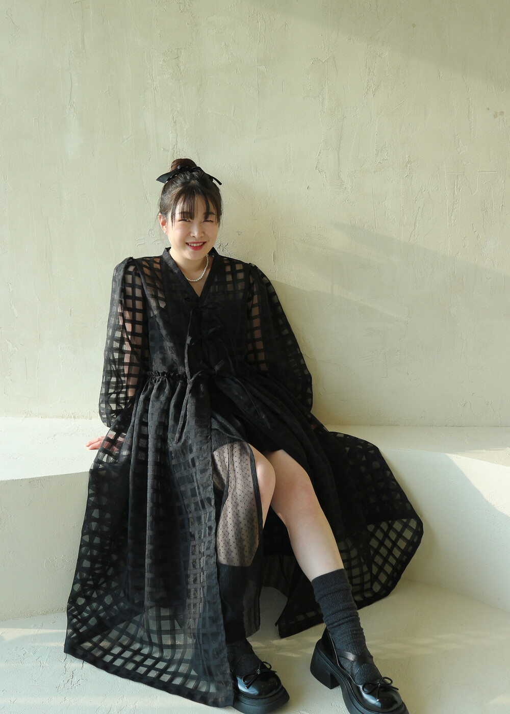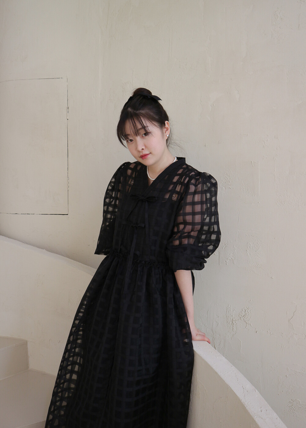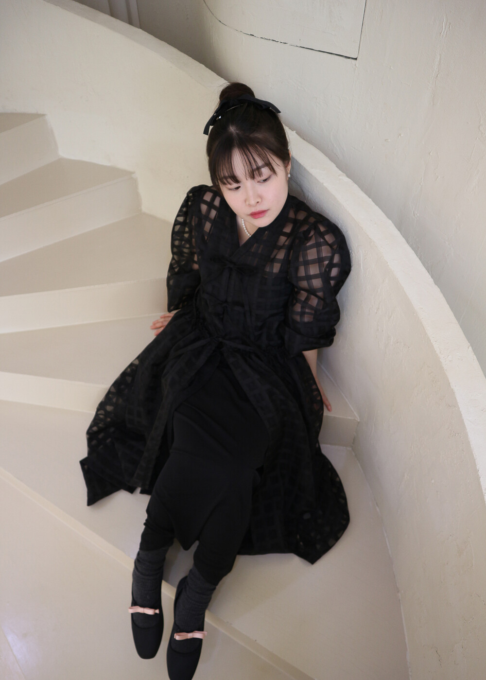 고급스러운 체크 패턴의 시스루 원단으로 제작되었으며,