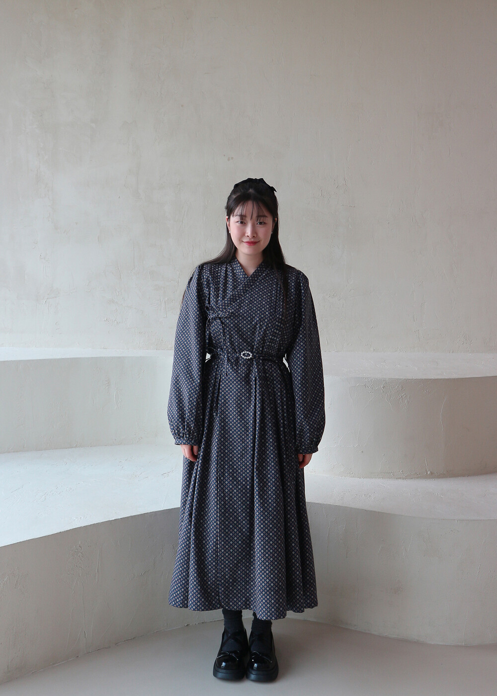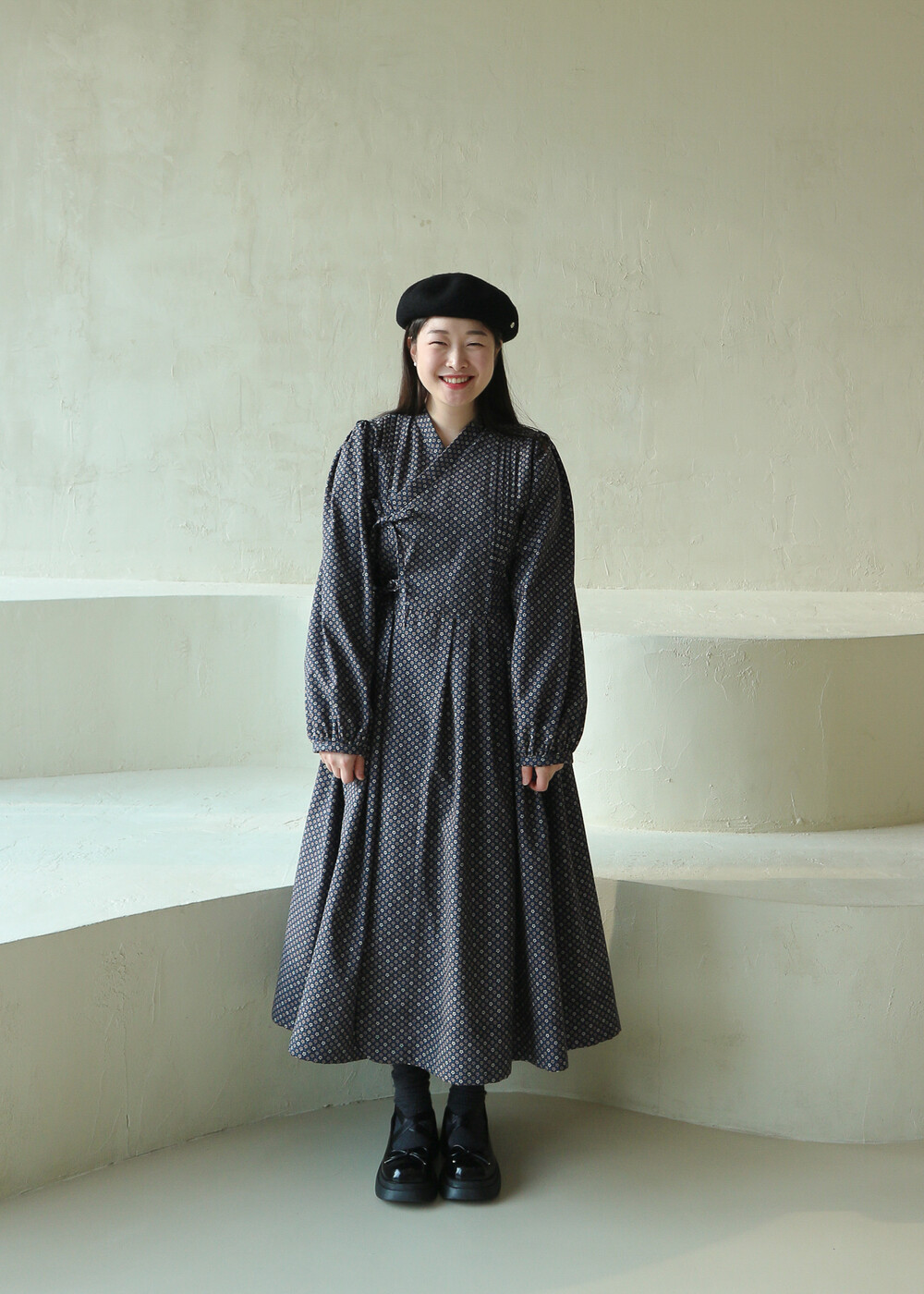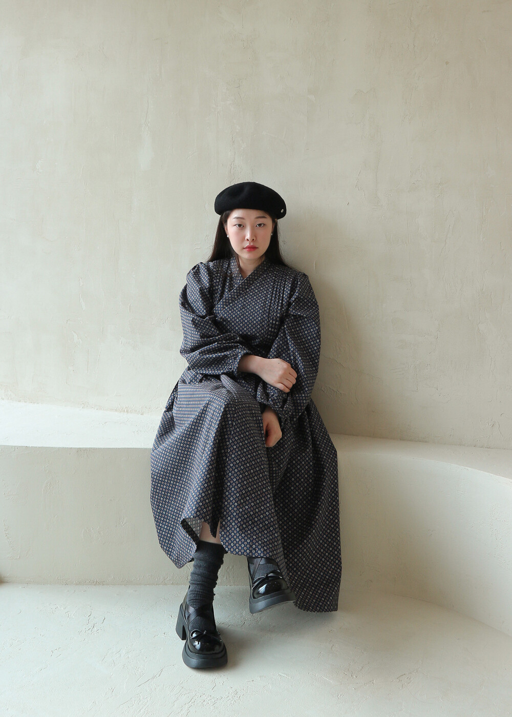 가을에 착용하기 좋은 옥스포드 면 원단으로 제작 된 철릭 원피스입니다.