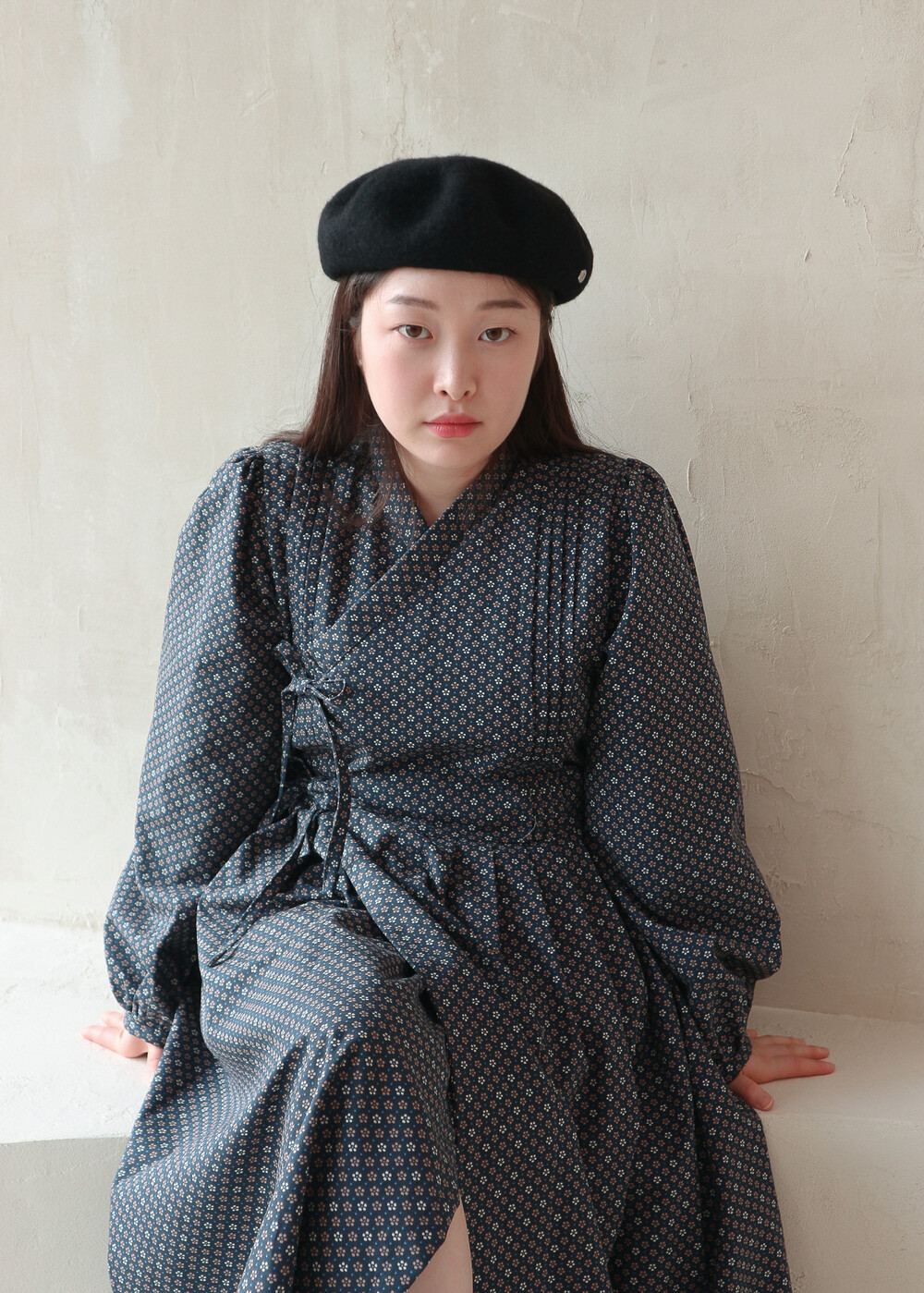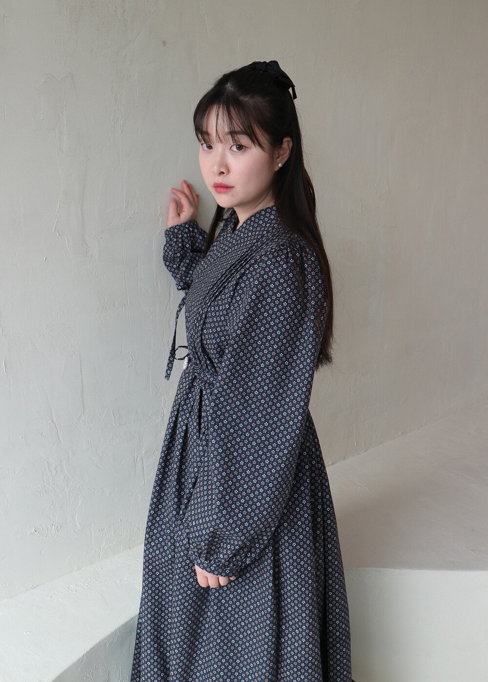 상의에 핀턱을 여러개 잡아서 디테일을 더하고, 얇은 고름끈으로
