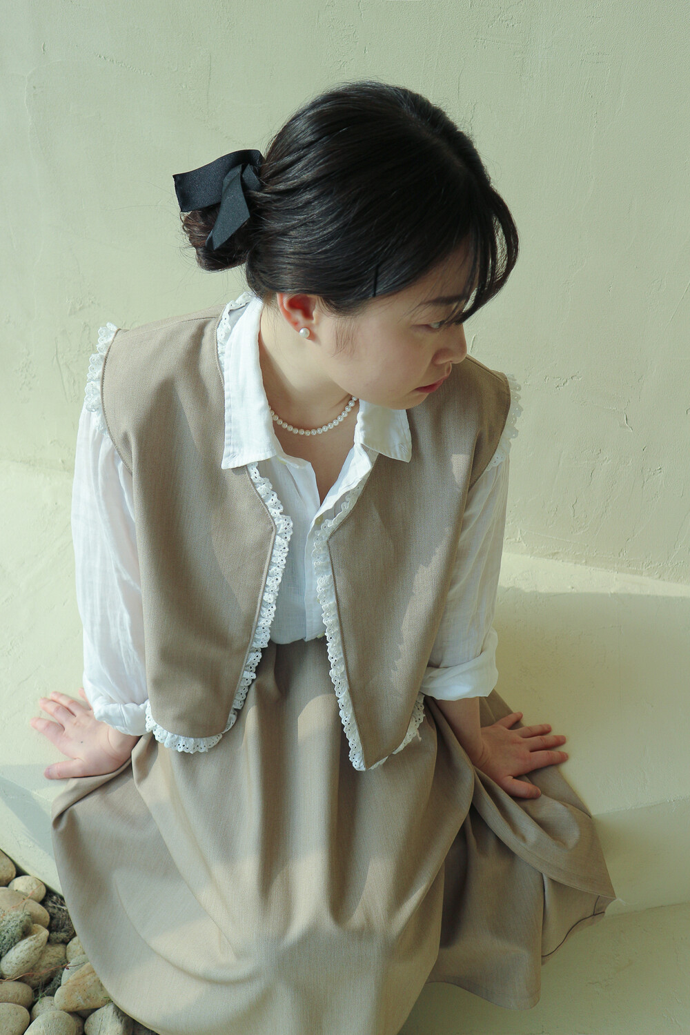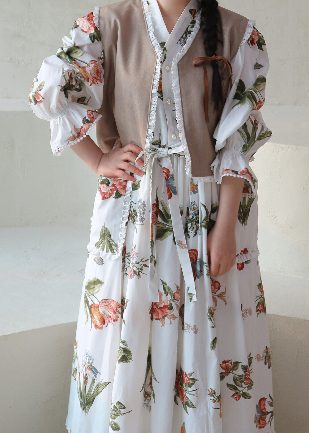 목선과 도련선 어깨선을 따라서 펀칭 프릴 레이스를 달아주어