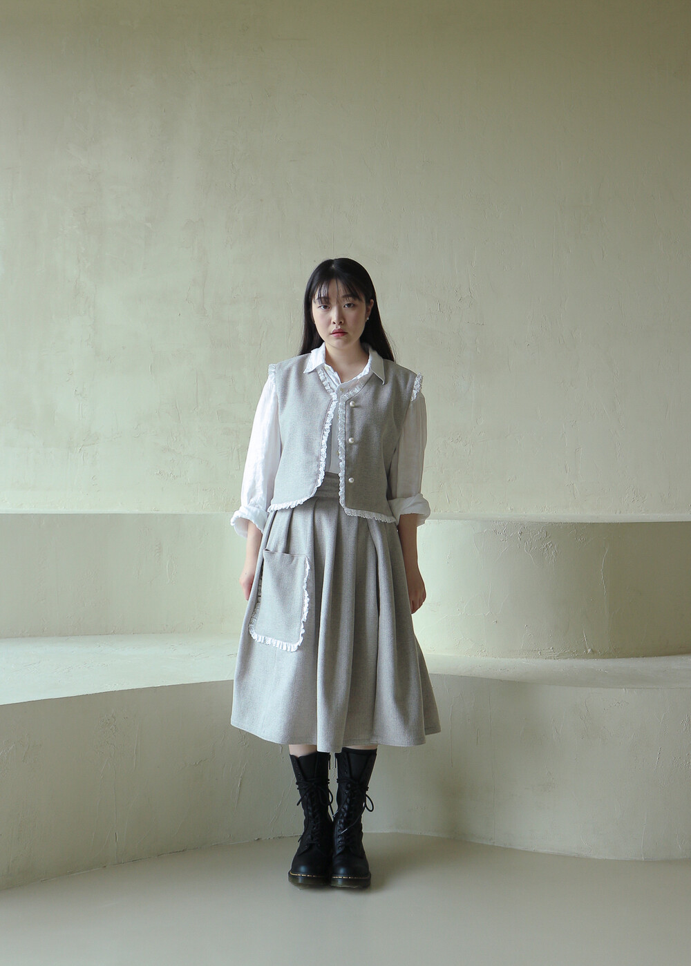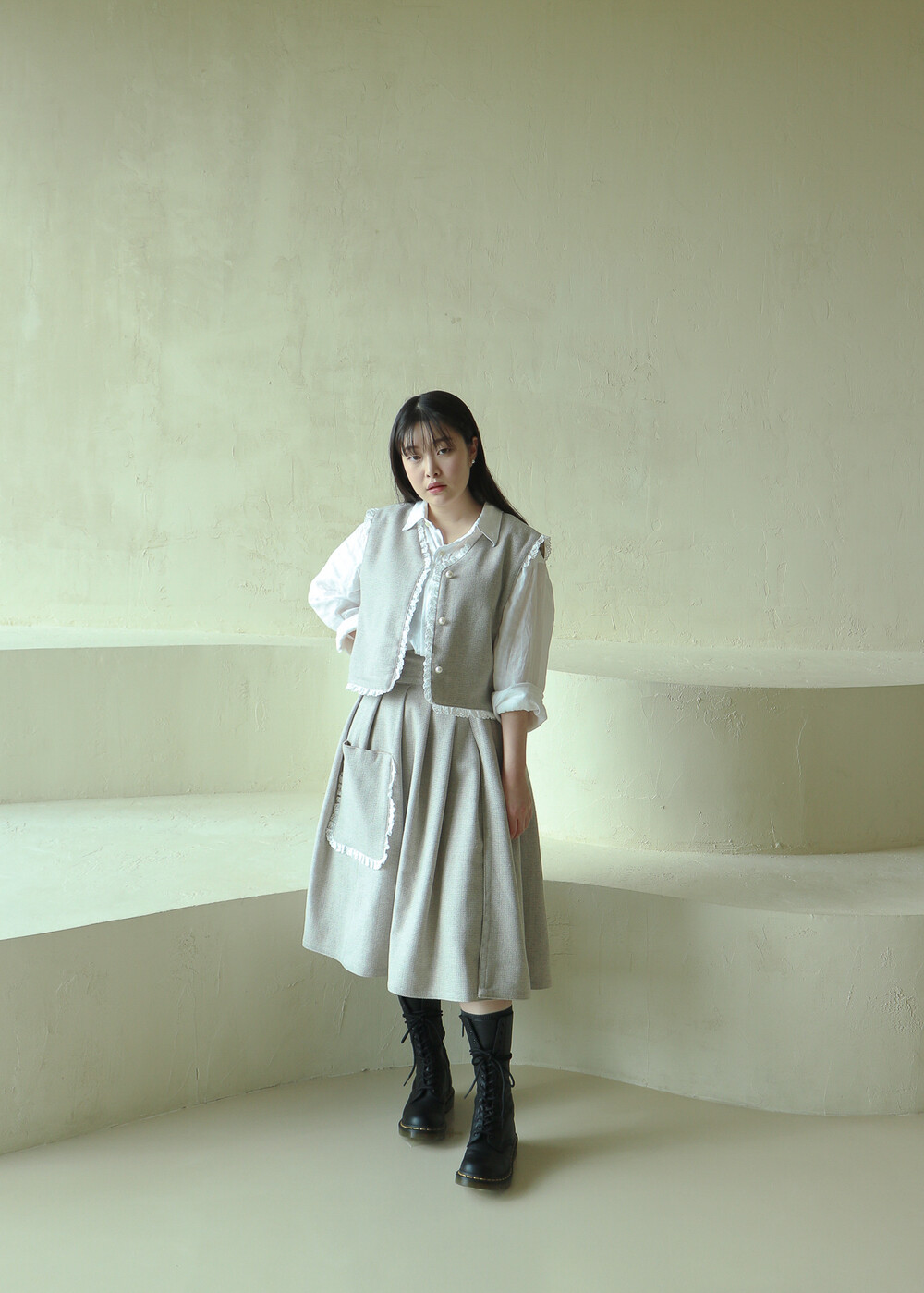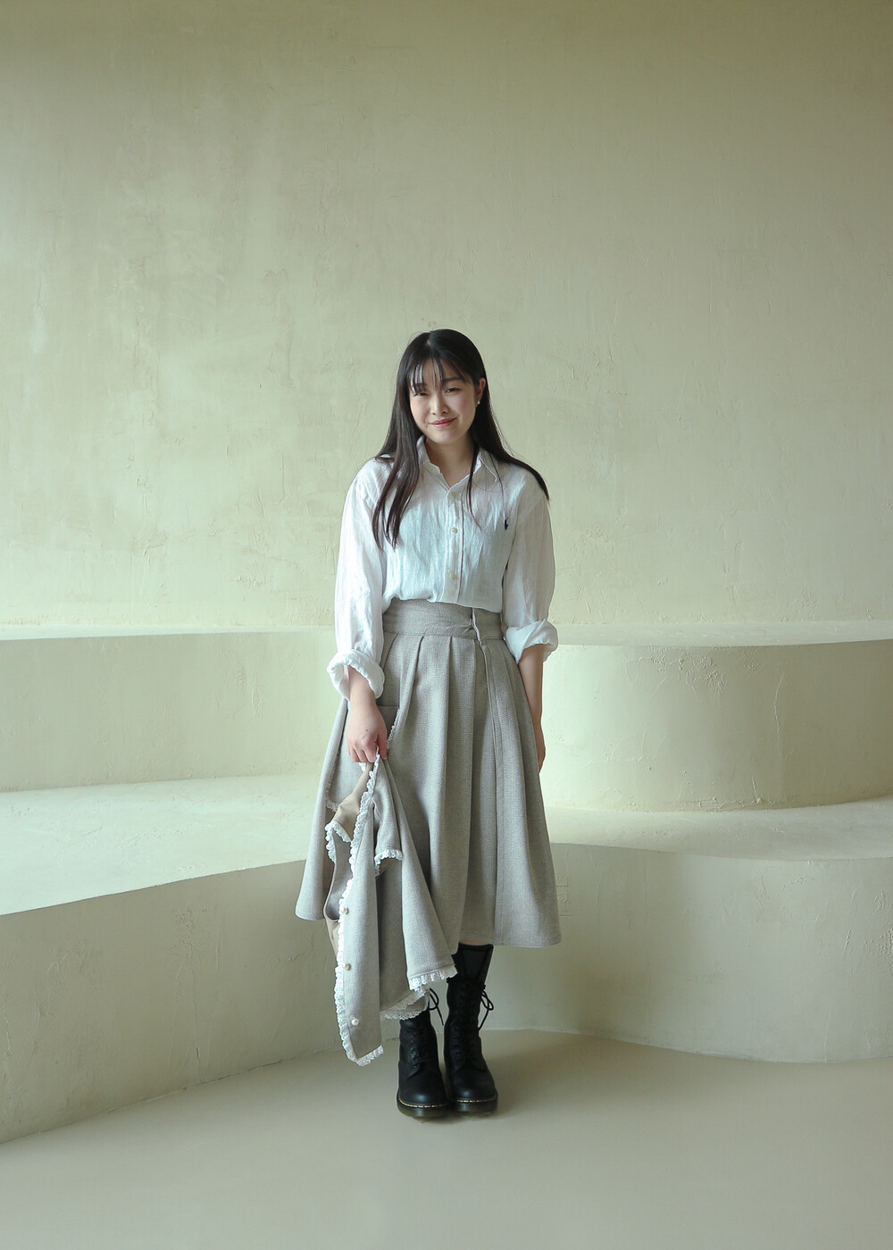 가을에 착용하기 좋은 울 혼방원단으로 제작 된 허리치마 입니다.