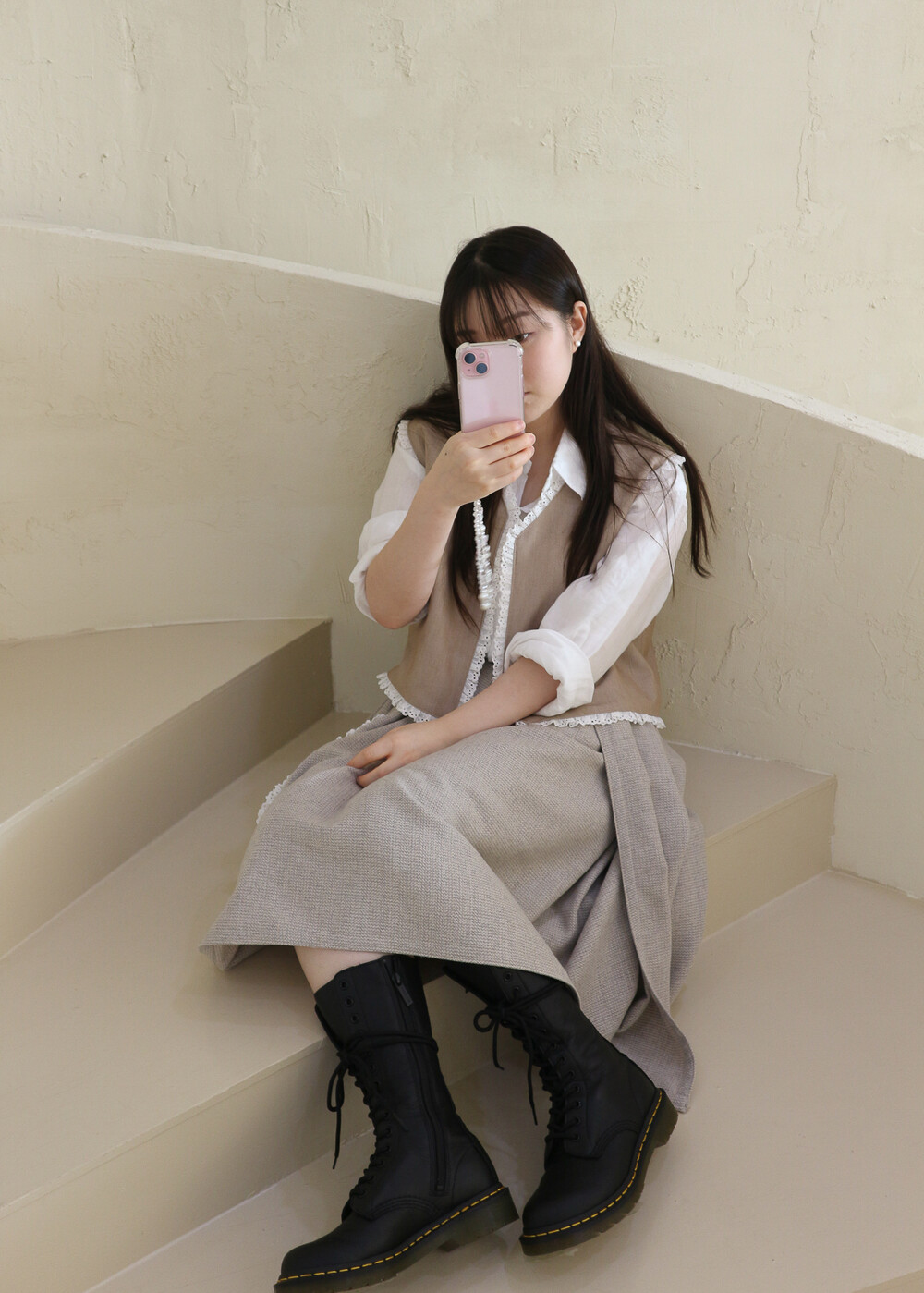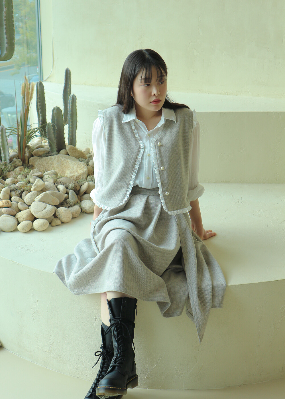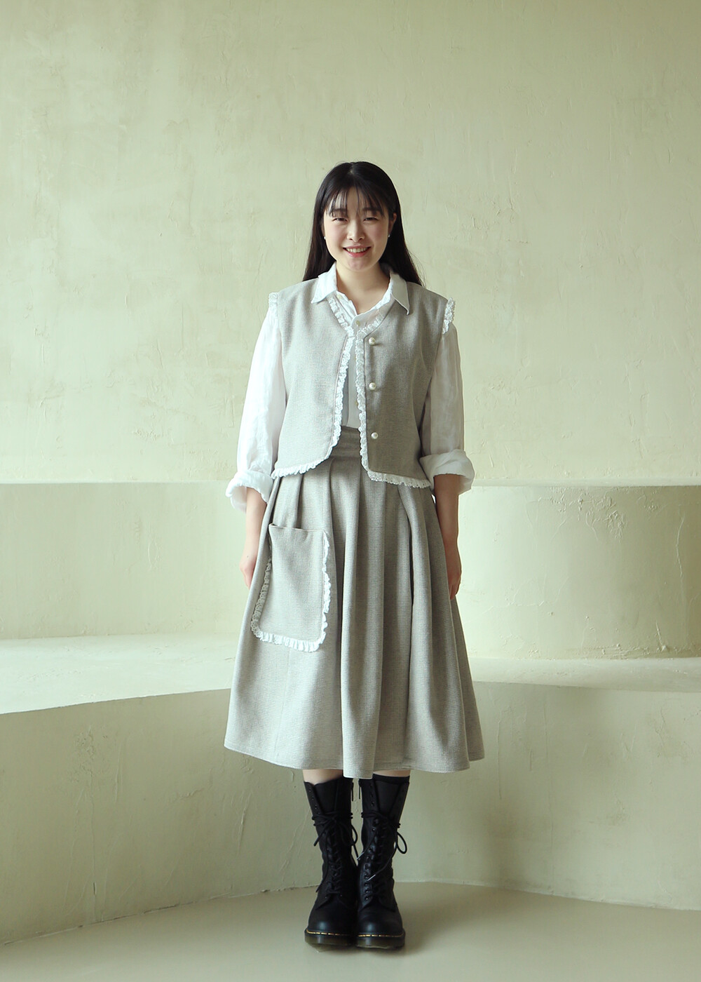 가을에 착용하기 좋은 울 혼방원단으로 제작 된 허리치마 입니다.