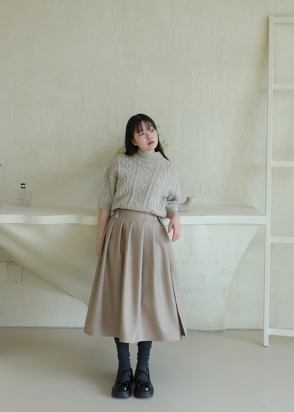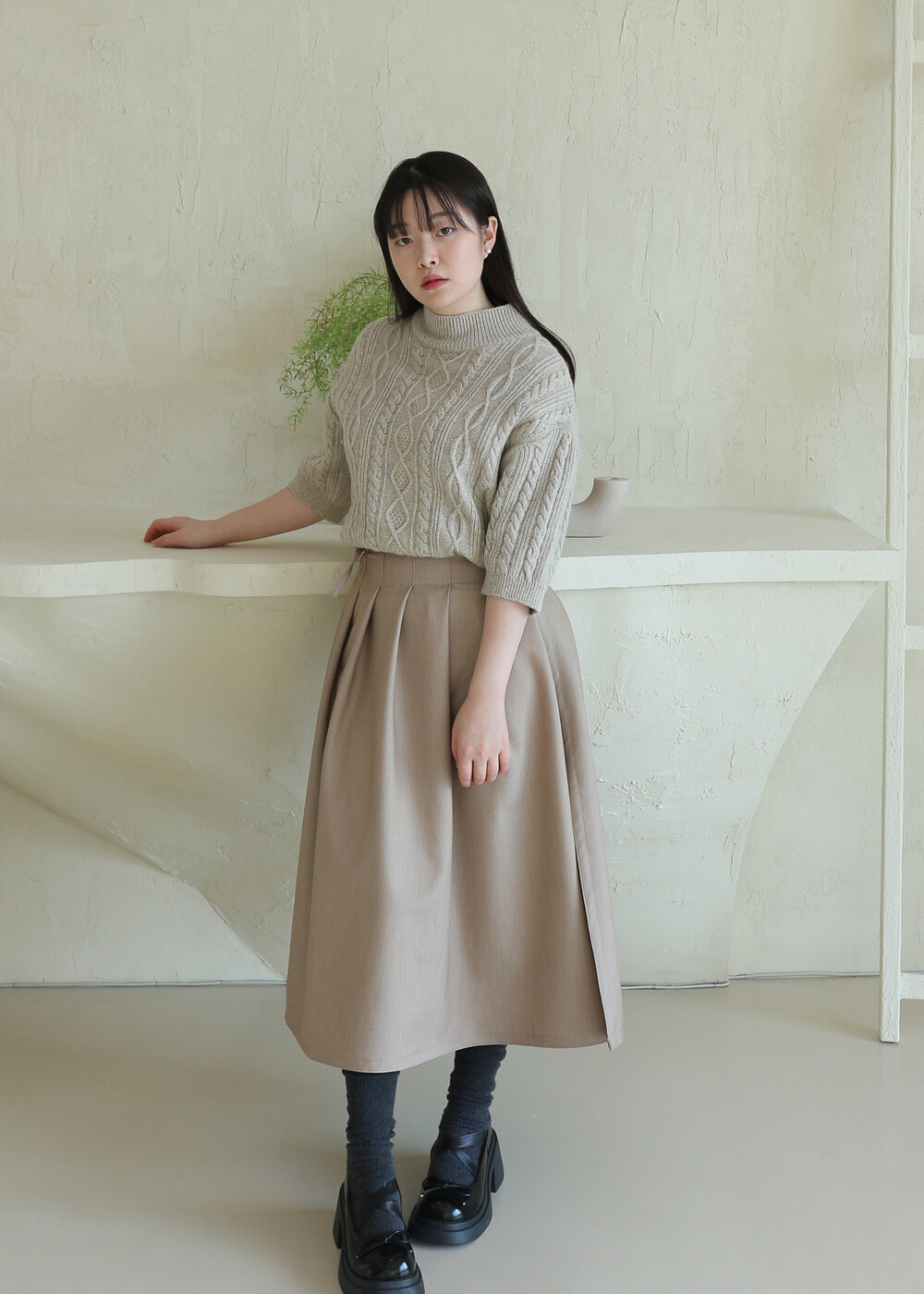 스티치를 눌러박아 탄탄하고 고급스러운 트렌치 핀턱 허리치마입니다.