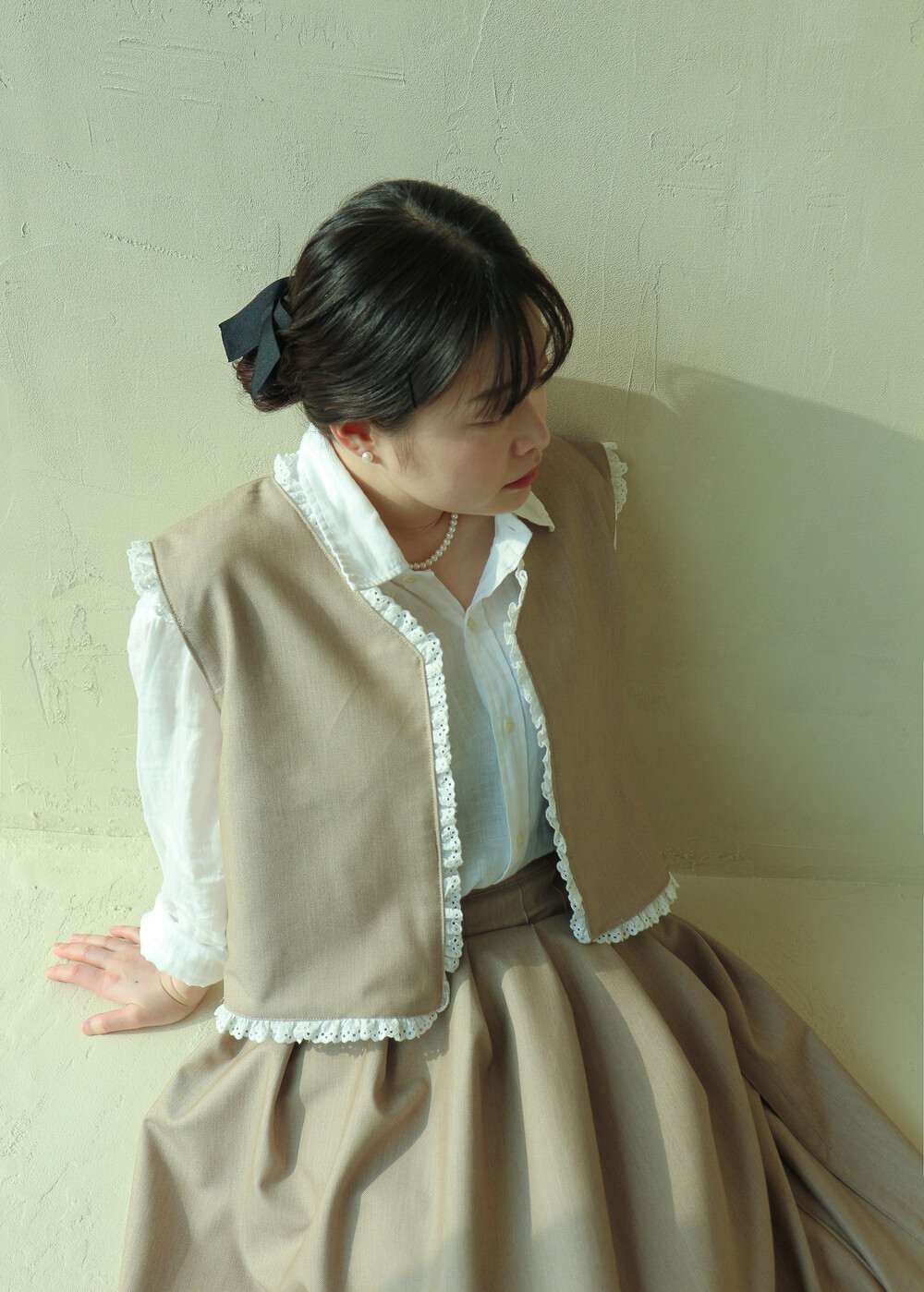 허리 말기 부분에 벨트고리가 있어서 얇은 진주 벨트로 포인트를 주기 좋아요!