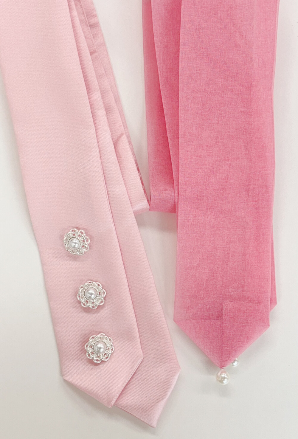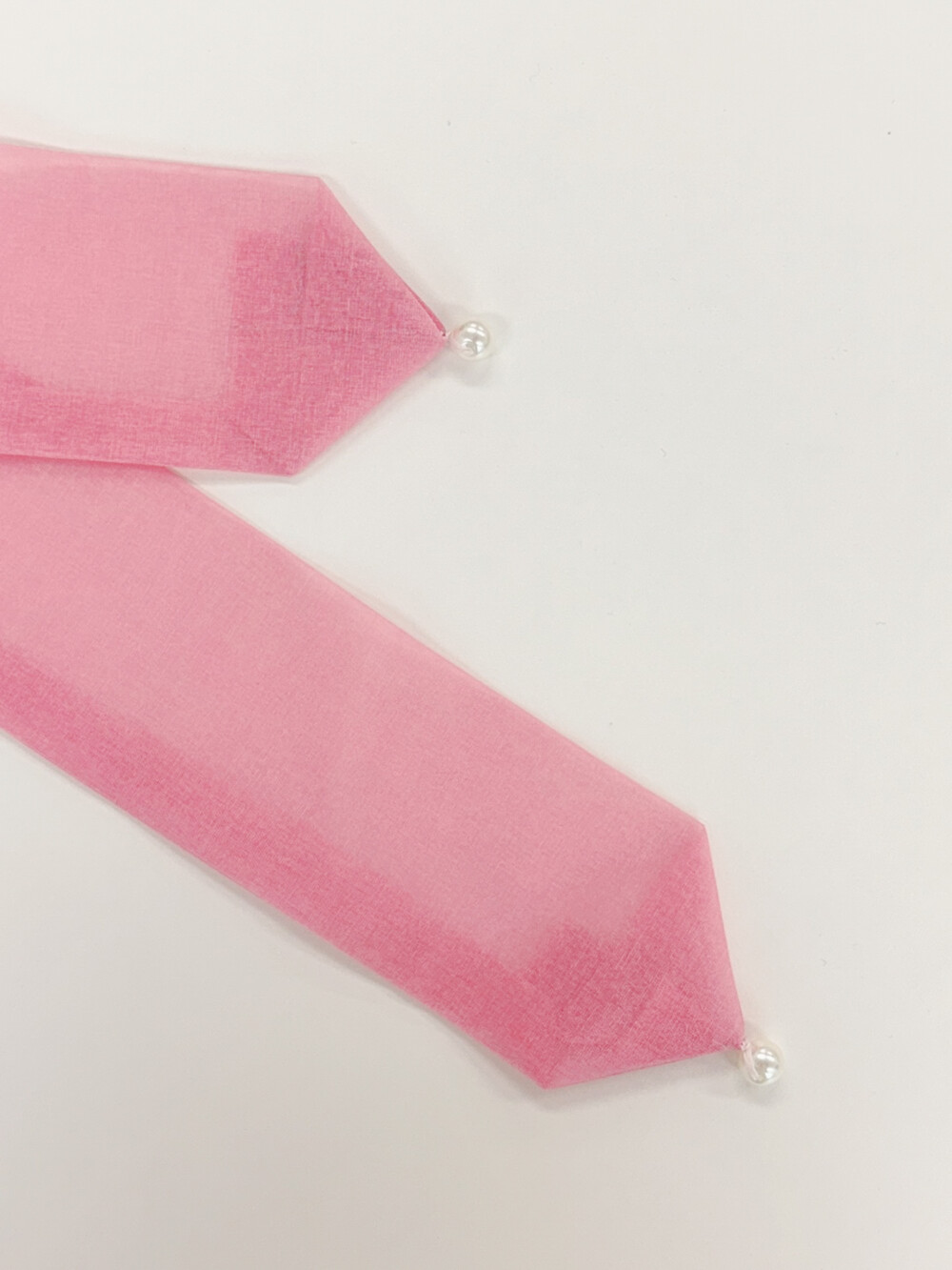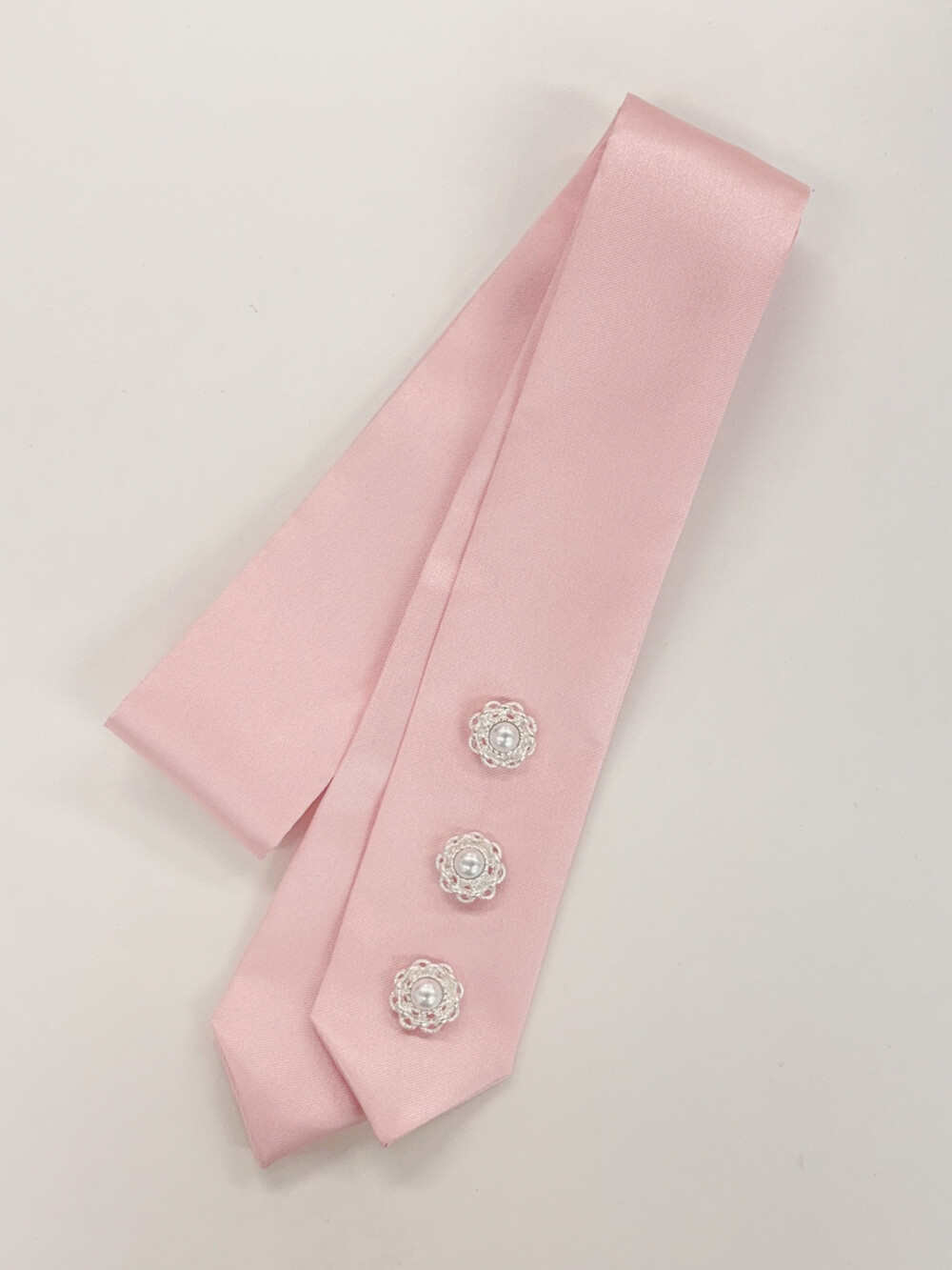 고급스러운 광택감이 있는 핑크 미카도 실크 원단으로 제작 된 댕기 입니다. 코랄 핑크 색감으로 화사한 색감이 매력있고 진주 꽃 모양의 단추가 장식되어있습니다. 길게 제작되어 여러번 겹쳐 핀으로 고정하여 착용 가능합니다.