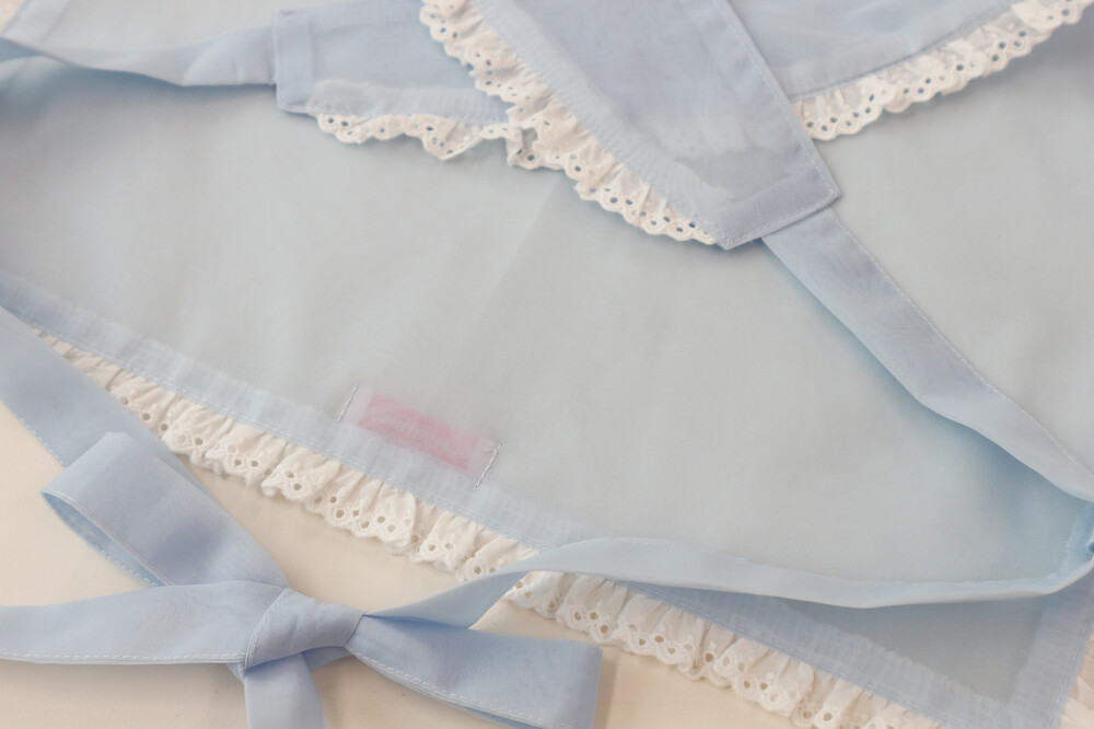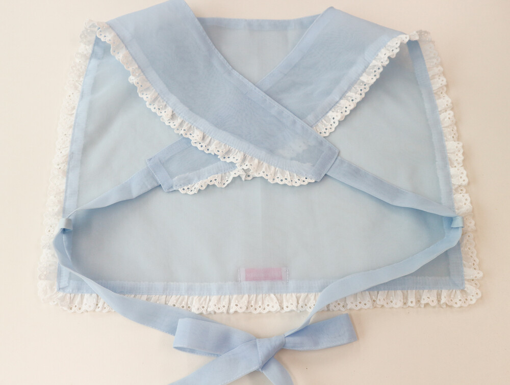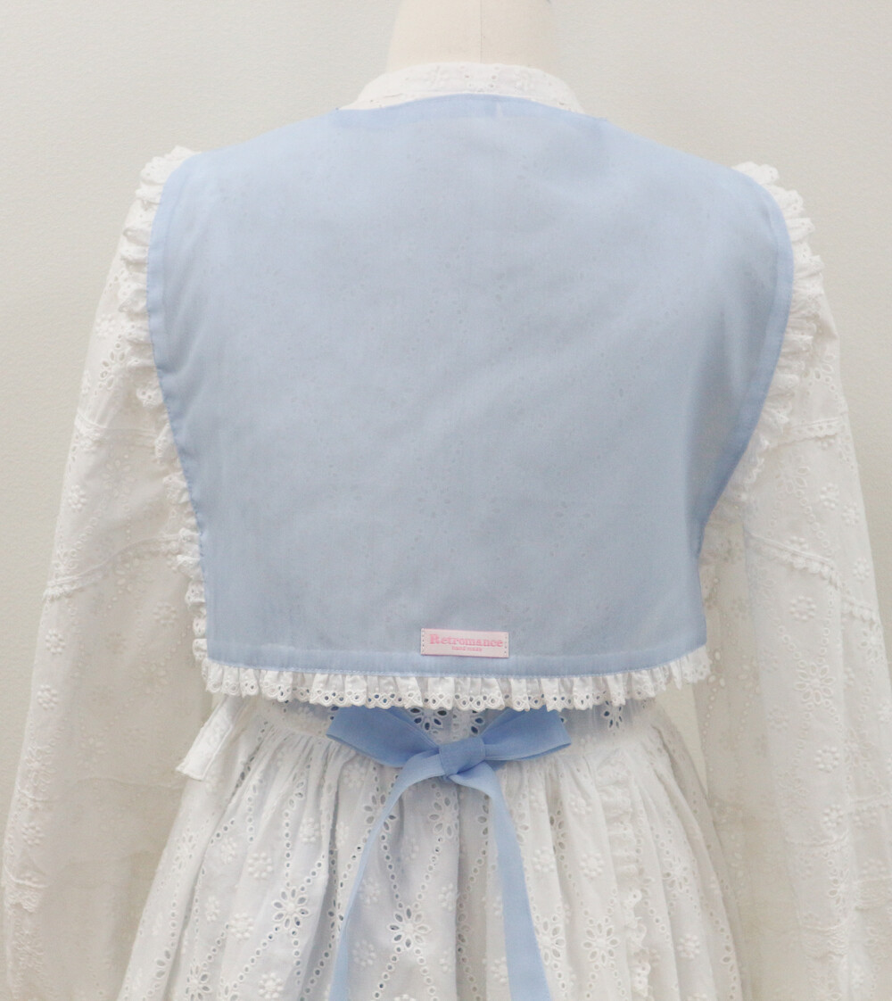 - 한복 노방 원단으로 제작 된 등걸이 배자입니다. 전통한복의 등걸이 배자를 모티브로 비침이 있는 원단으로 제작하였고 등판쪽에 바이어스로 고리를 만들어 끈을 고리에 끼워 등뒤 또는 앞에서 리본으로 묶는 방식을 살리어 제작 하였습니다. 셔링이 잡혀있는 줄 레이스로 배자의 테두리를 전체 장식하여 슬릿 철릭 원피스와 잘어울리도록 디자인했으며 하얀색 롱 원피스나 컬렉션의 로즈 화이트 철릭과도 잘 어울리는 배자입니다.