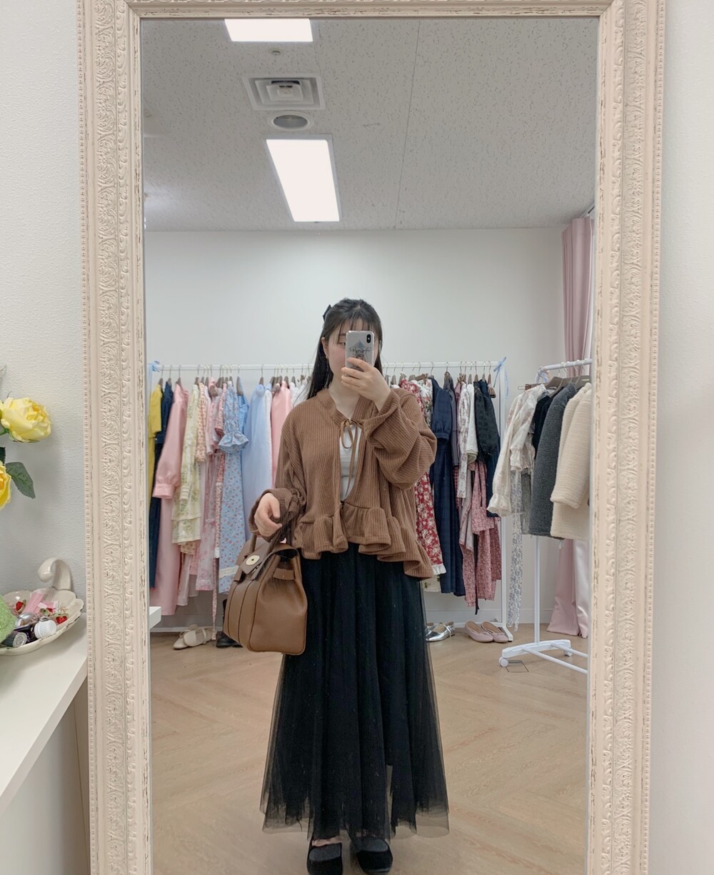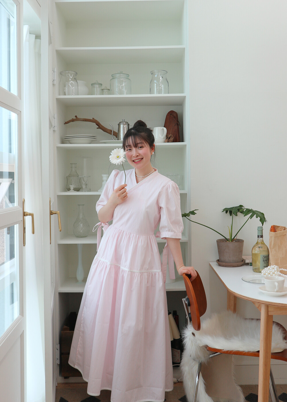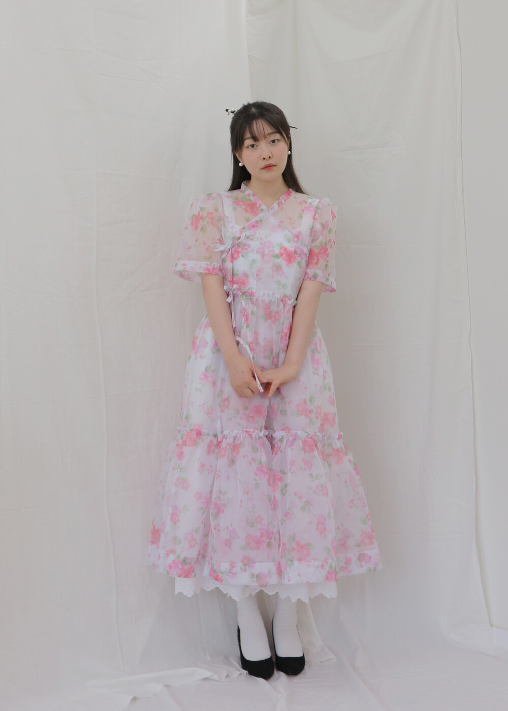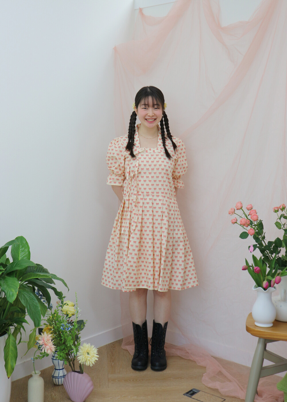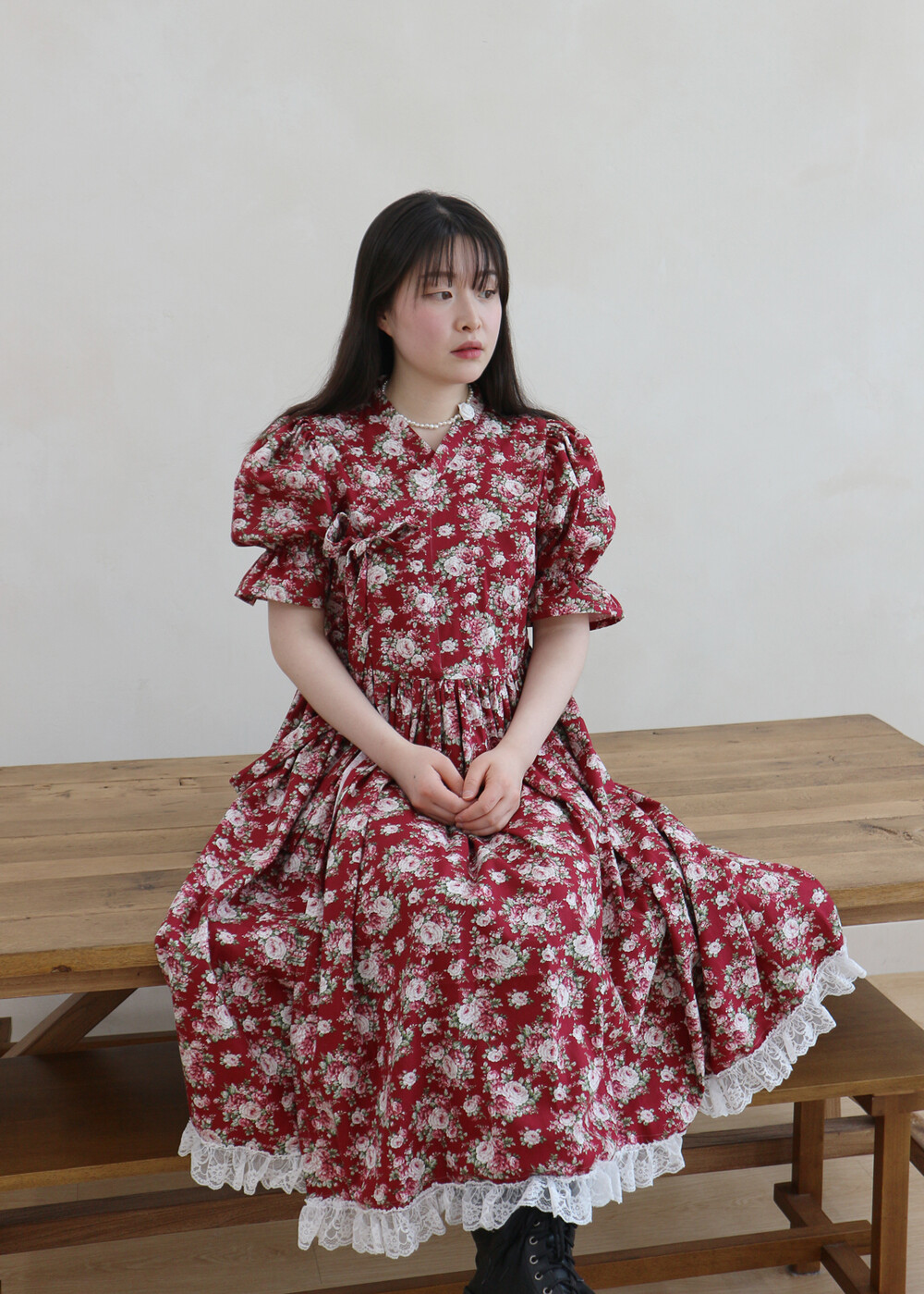 풍성한 퍼프소매와 캉캉에 프릴단을 올려 포인트를 주었습니다.
