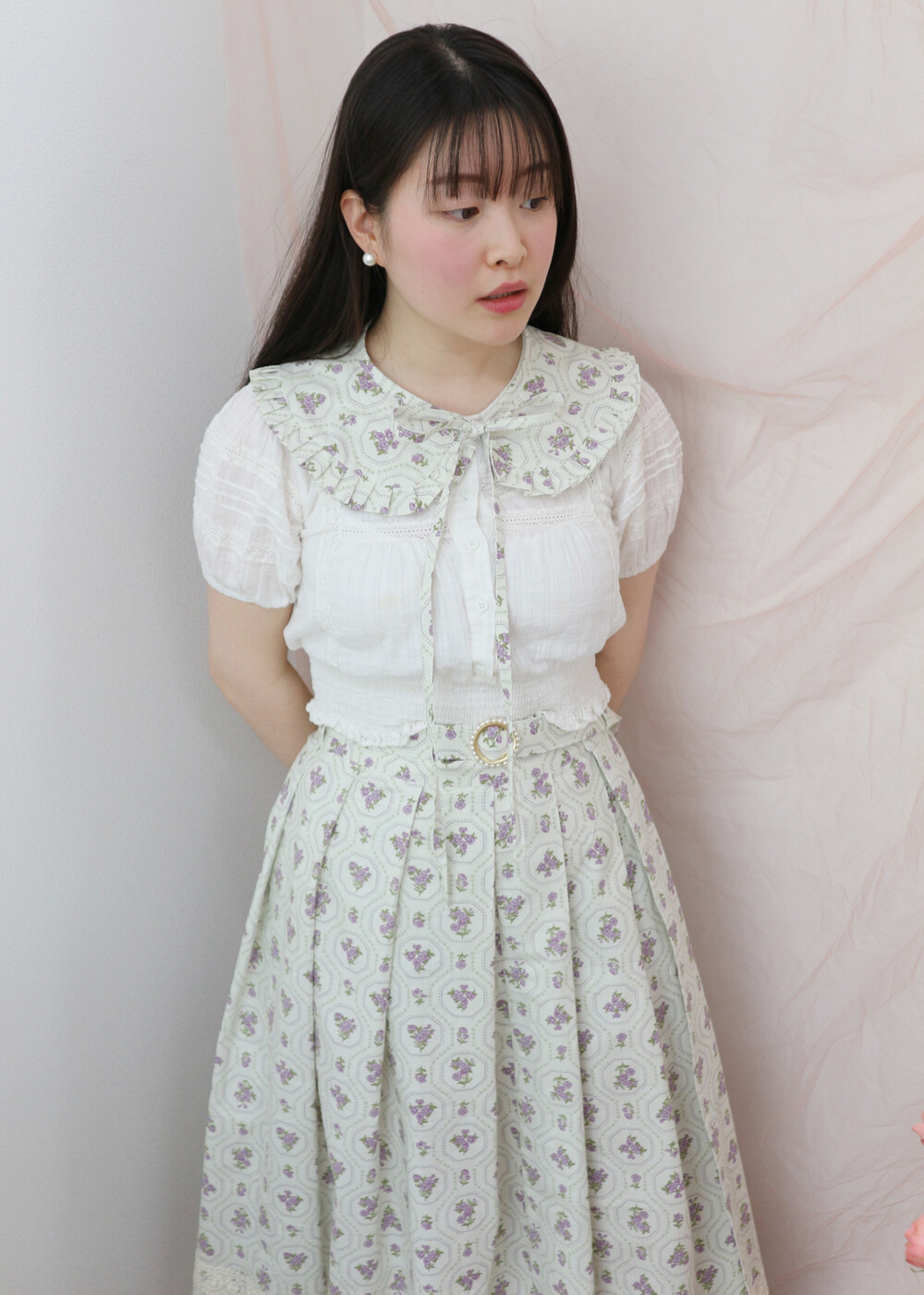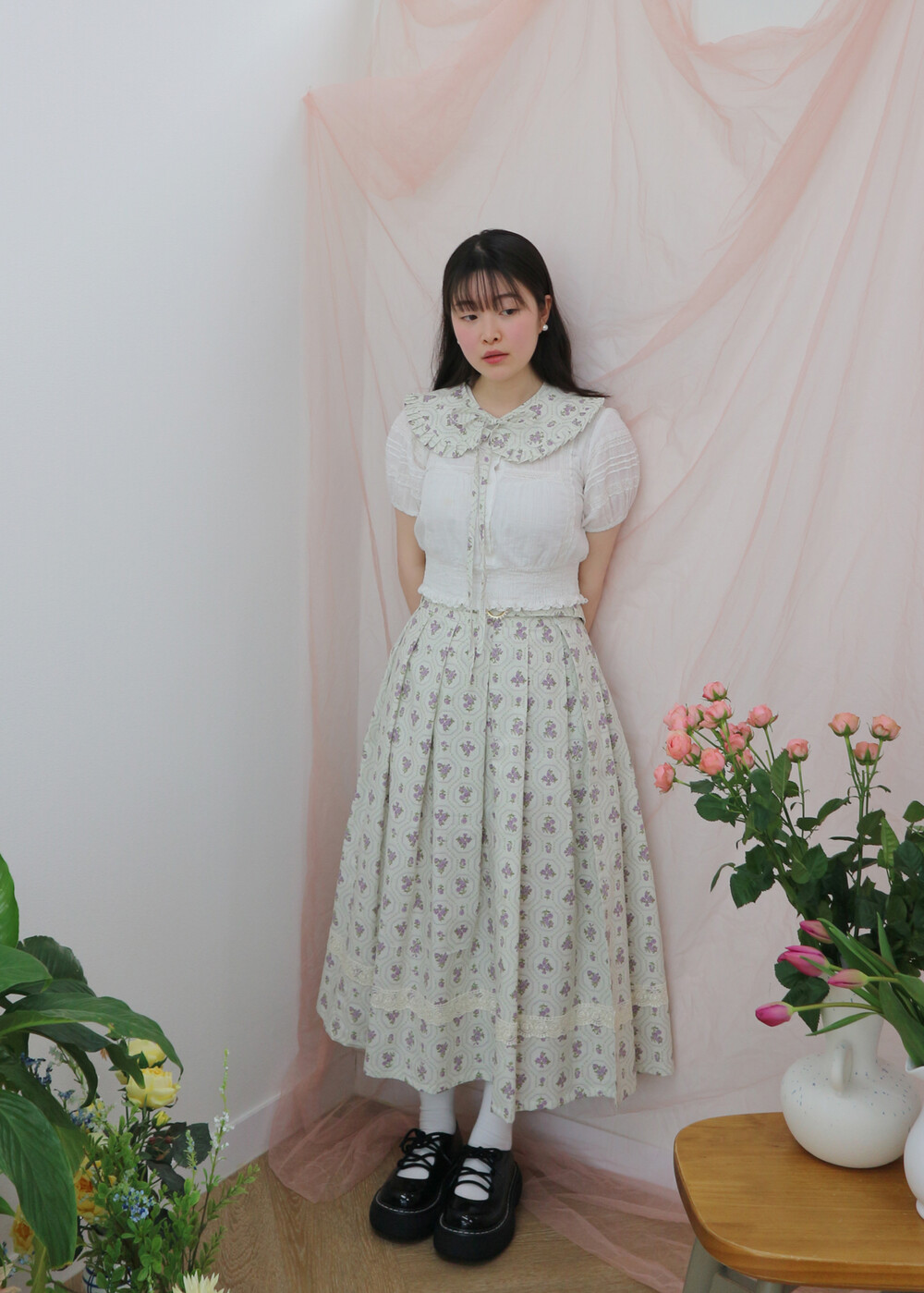 치마에는 화이트 면 레이스로 포인트를 주었습니다.