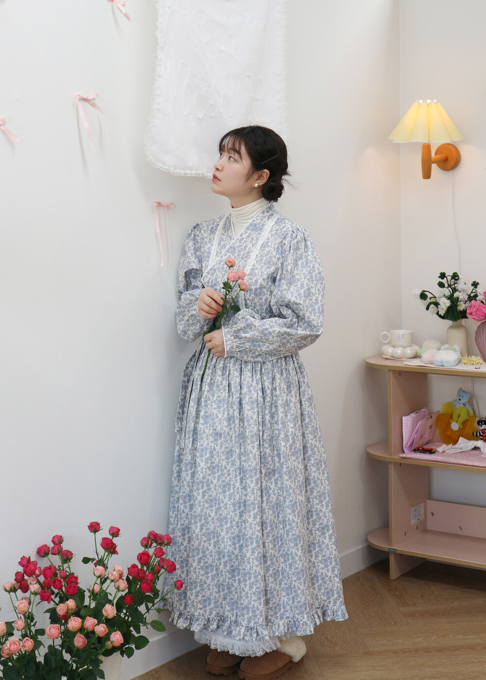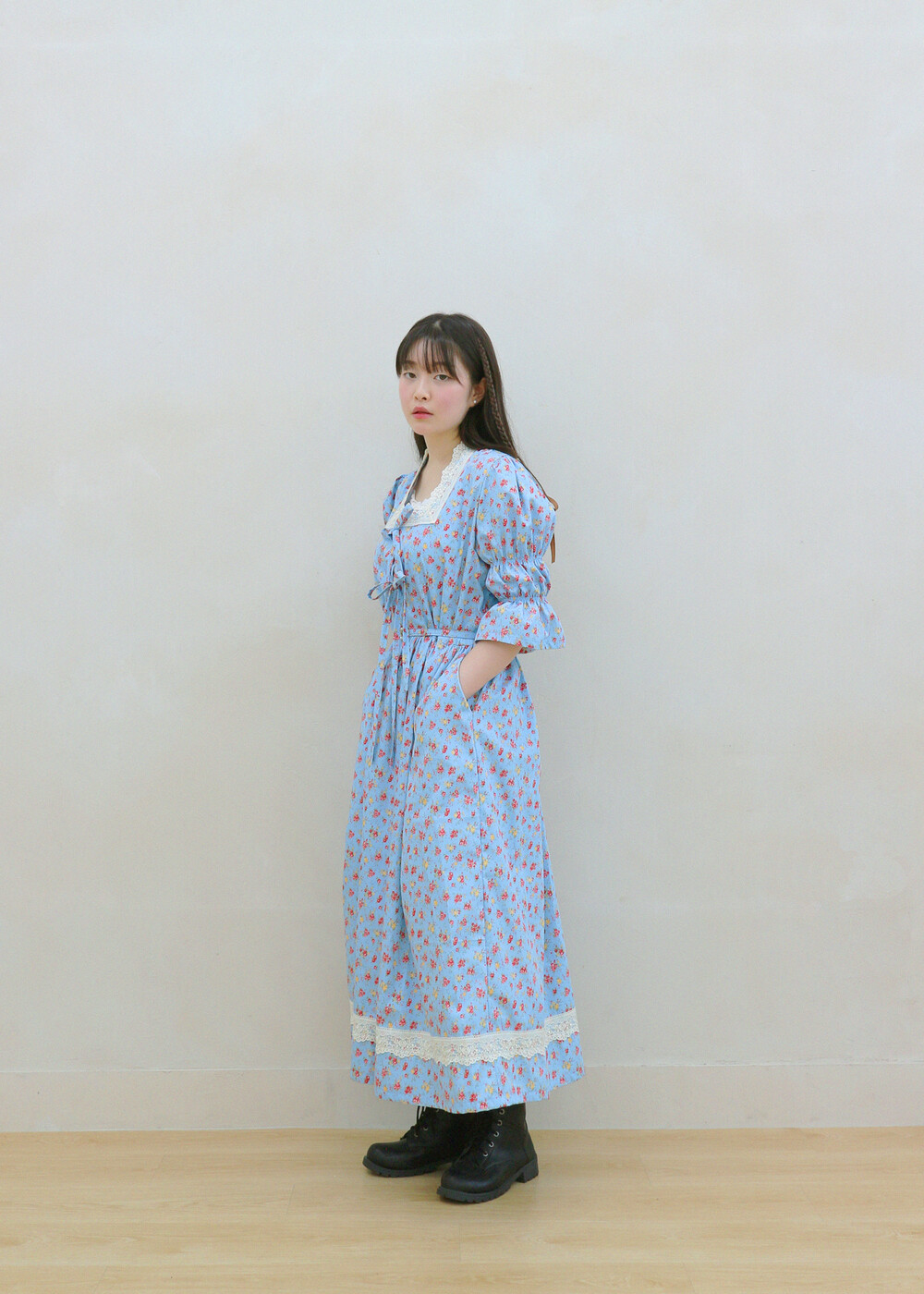 늦 여름~ 가을에 착용하기 좋은 블루 플라워 원피스입니다.