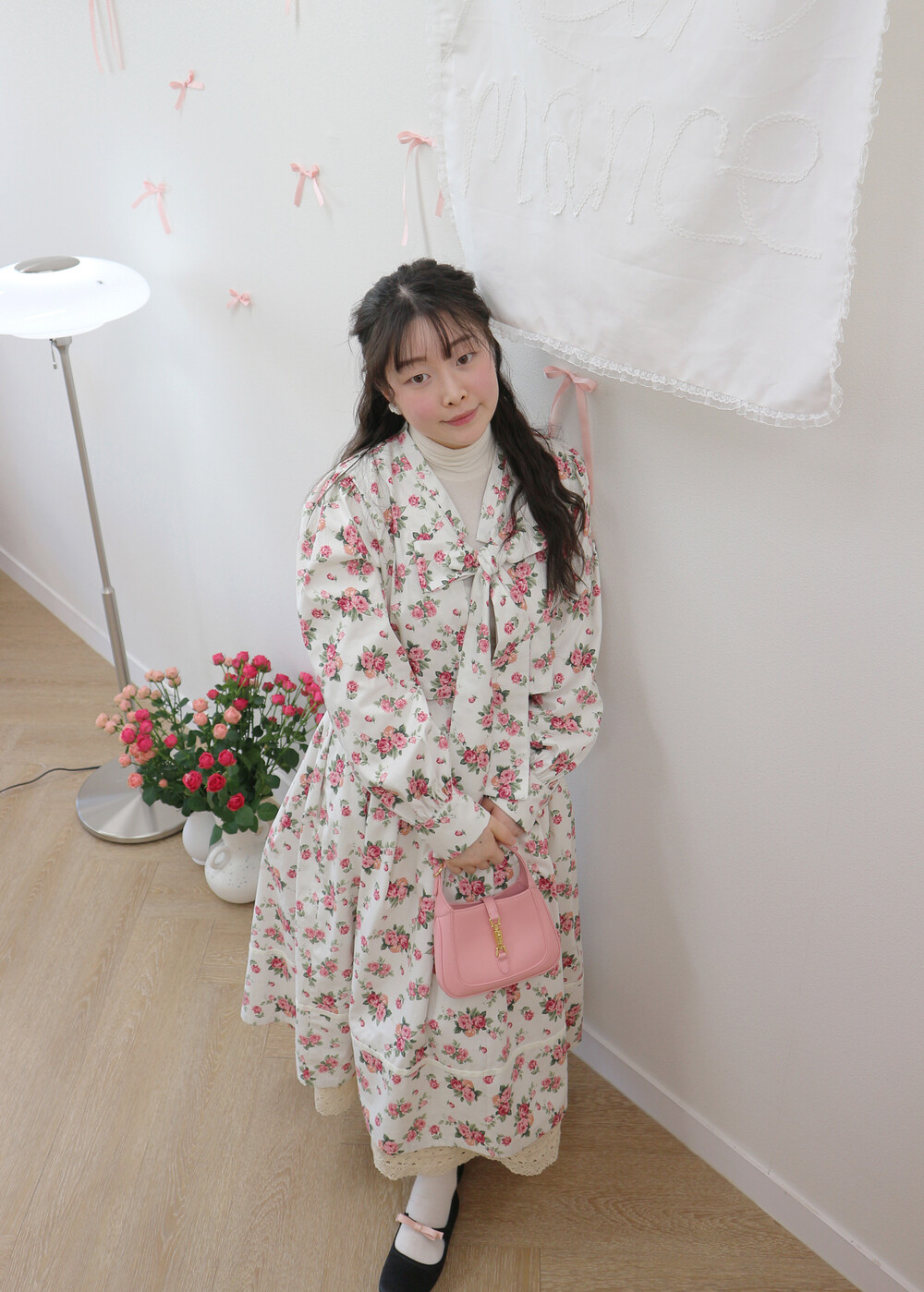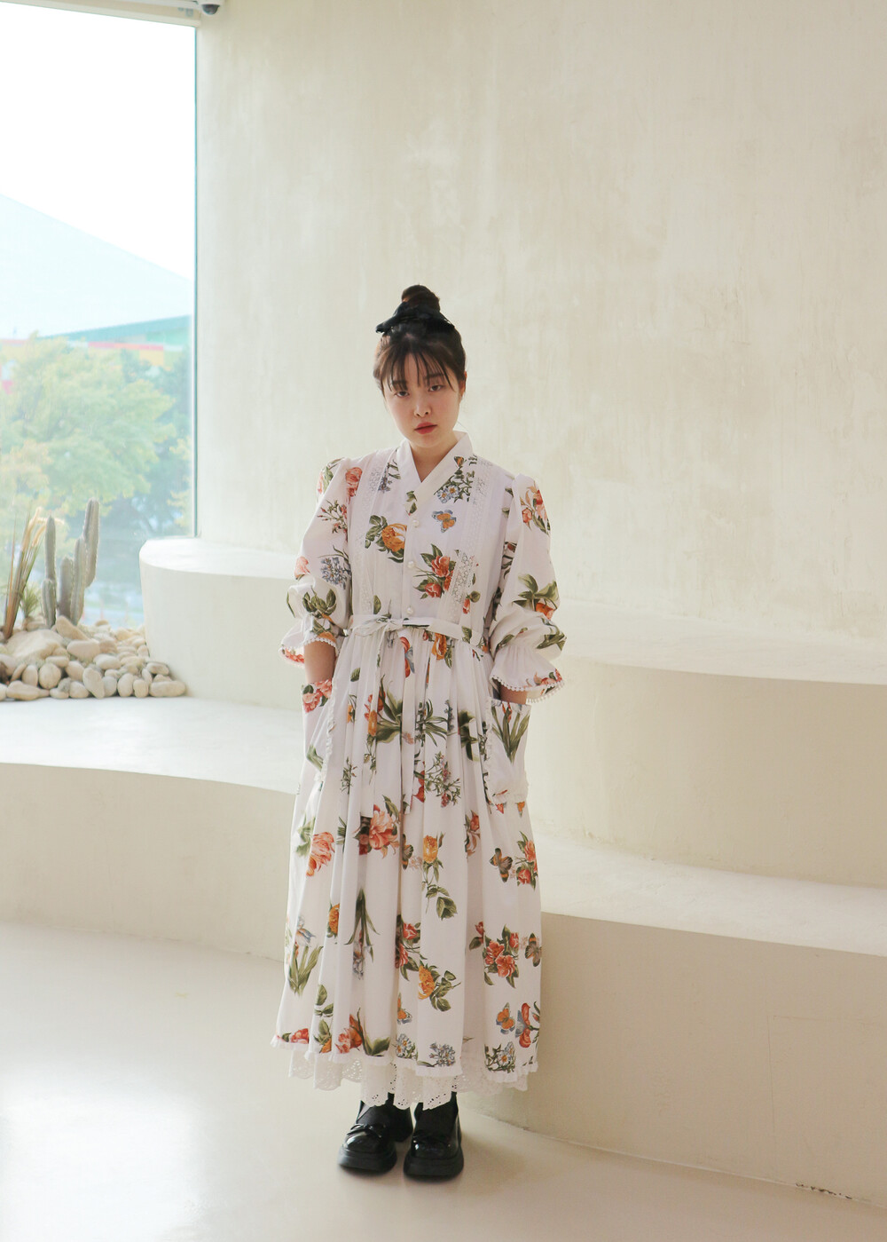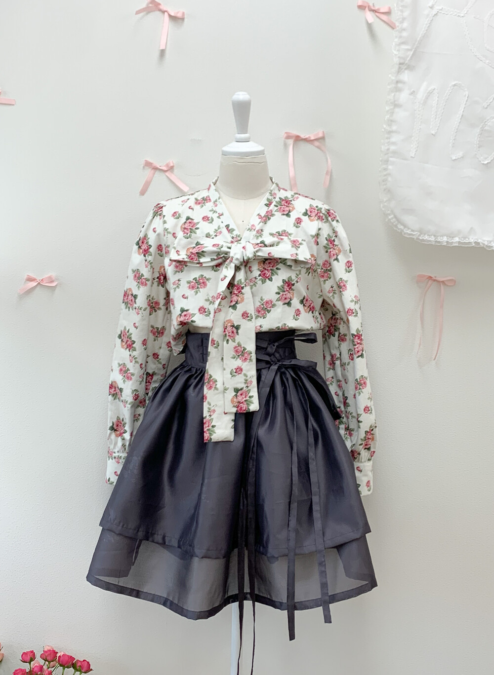 풍성한 꽃다발 장미 패턴으로 제작 된 깨끗한 아이보리 저고리입니다.