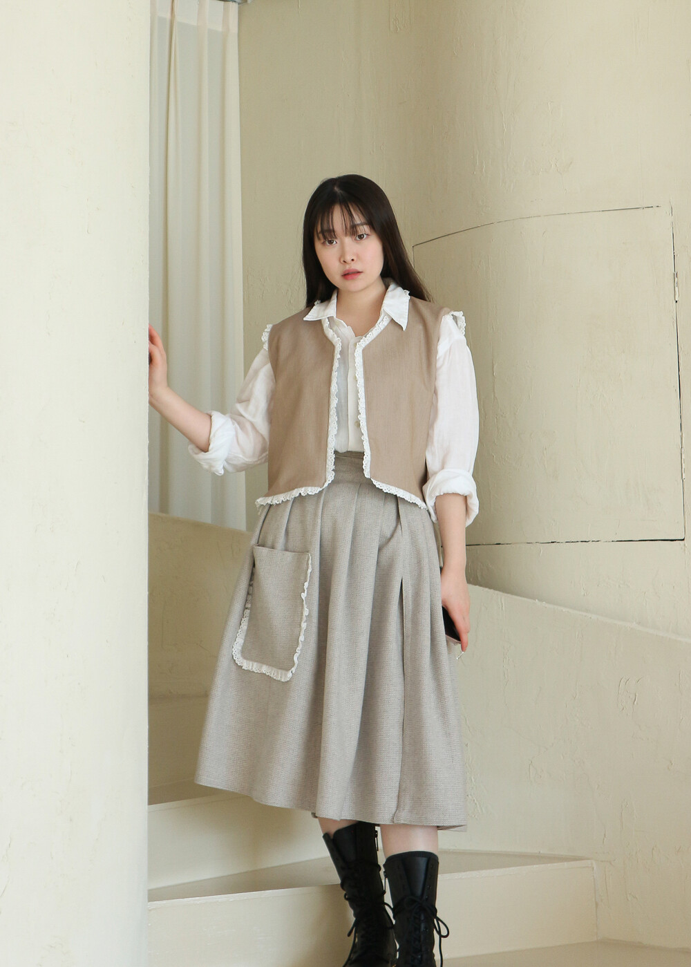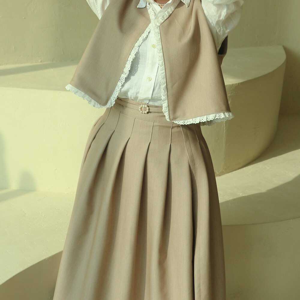 치마 아랫단에 얇은 레이스로 장식하여 빈티지하게 제작하였습니다.