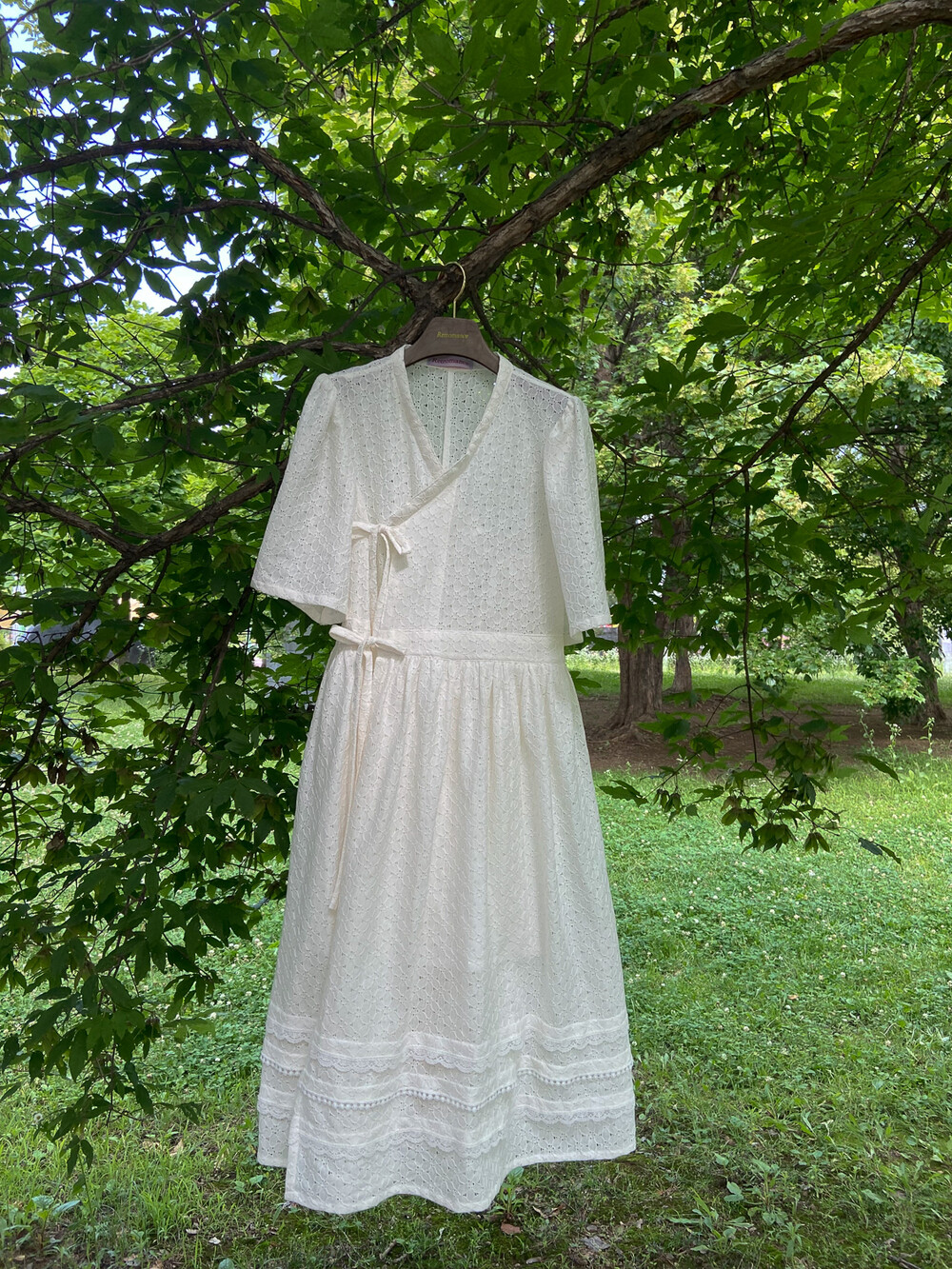 깃과 소매끝에 레이스를 달아 포인트를 주었습니다. 치마 끝에