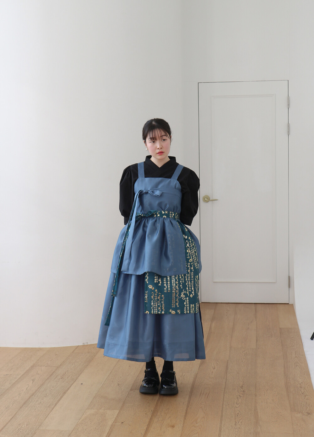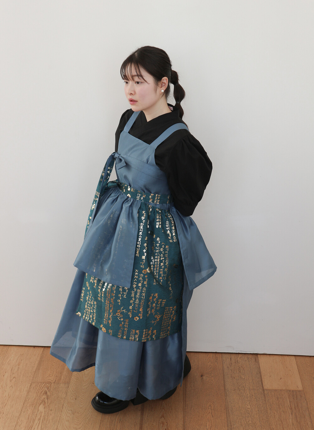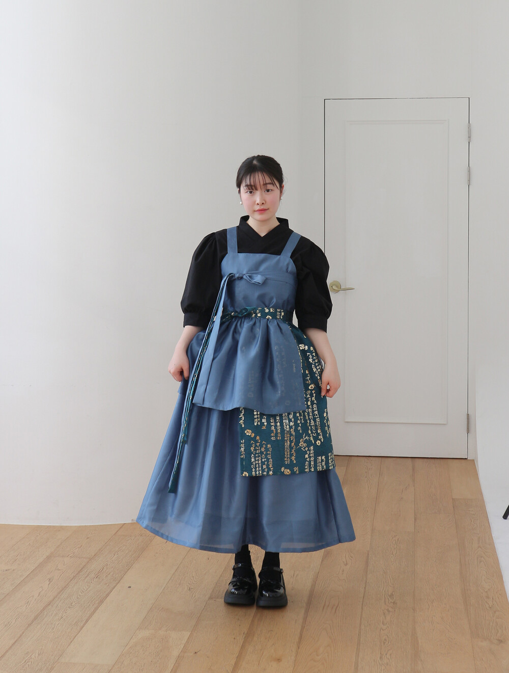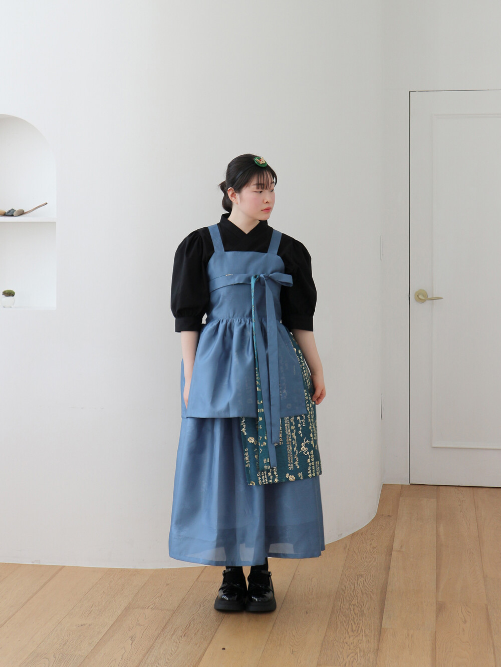 블루 겹 말기 원피스에는 이너로 전통한복, 생활한복, 목폴라, 반팔 등과 잘 어울립니다.