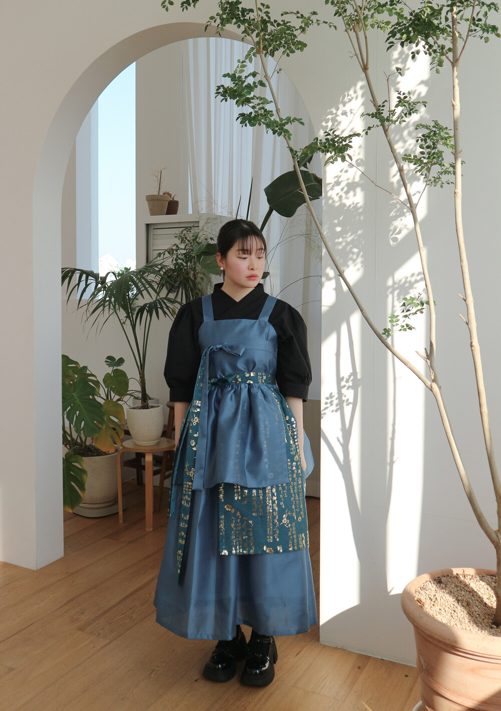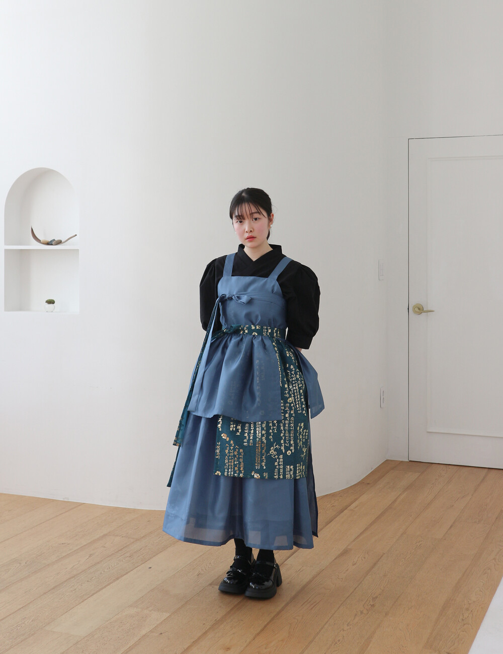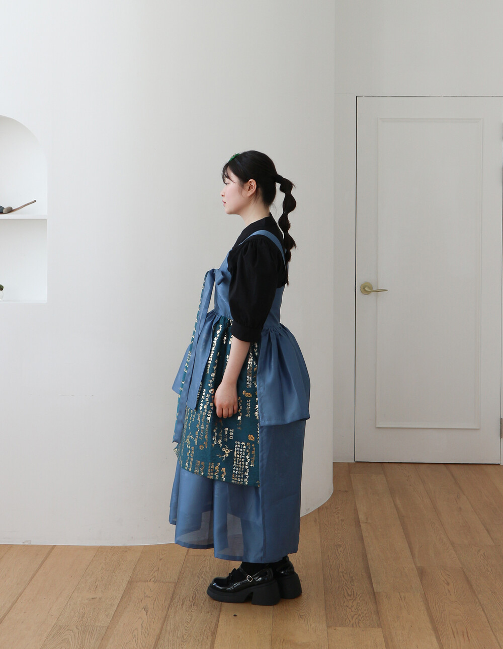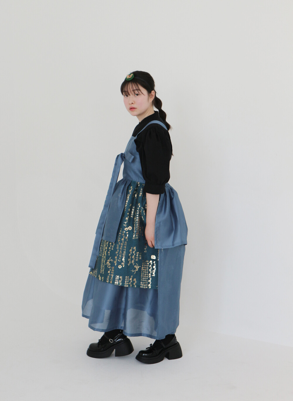 블루 겹 말기 원피스에는 이너로 전통한복, 생활한복, 목폴라, 반팔 등과 잘 어울립니다.