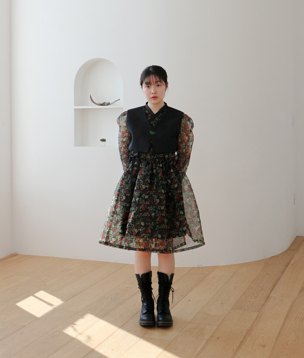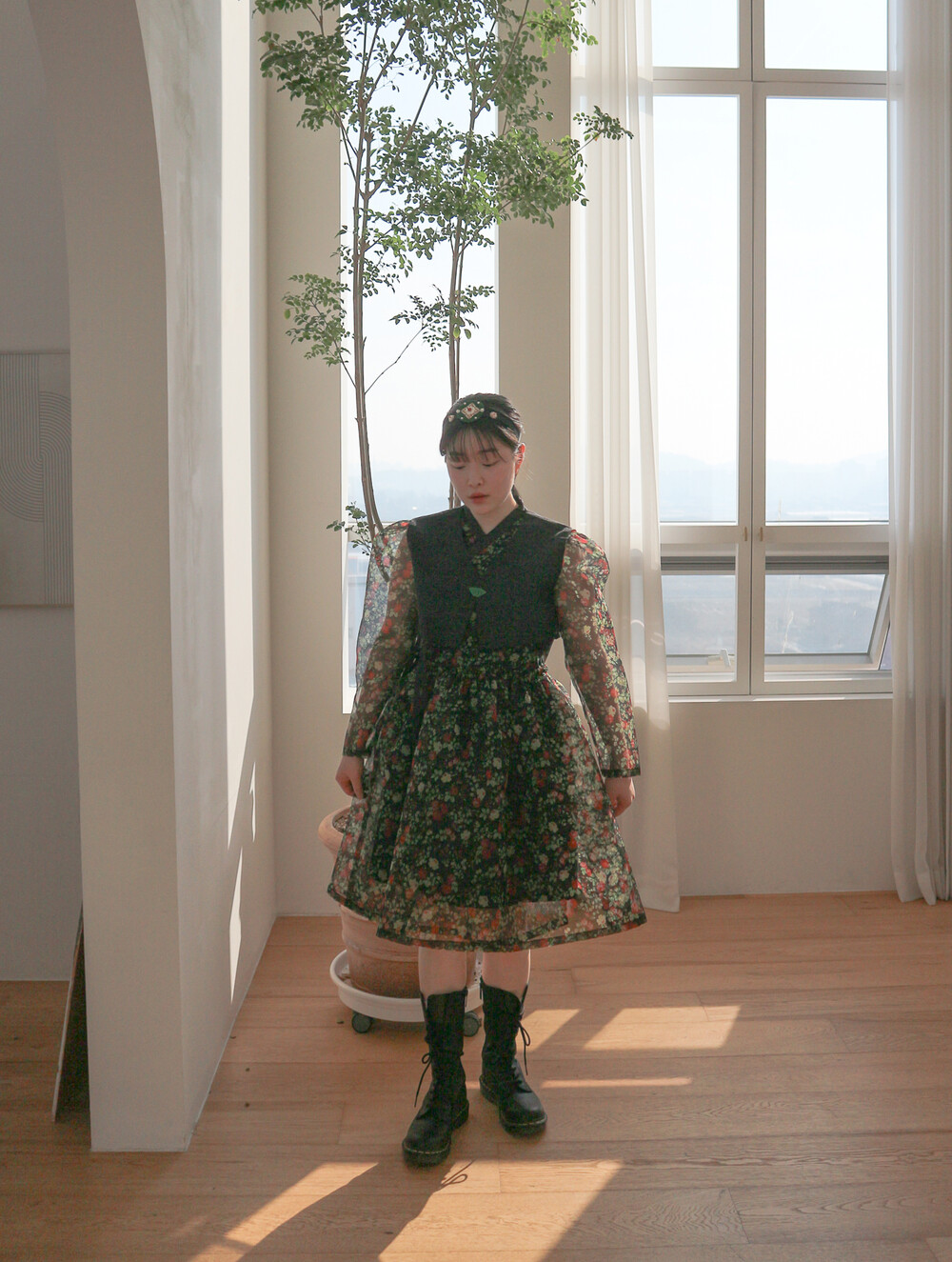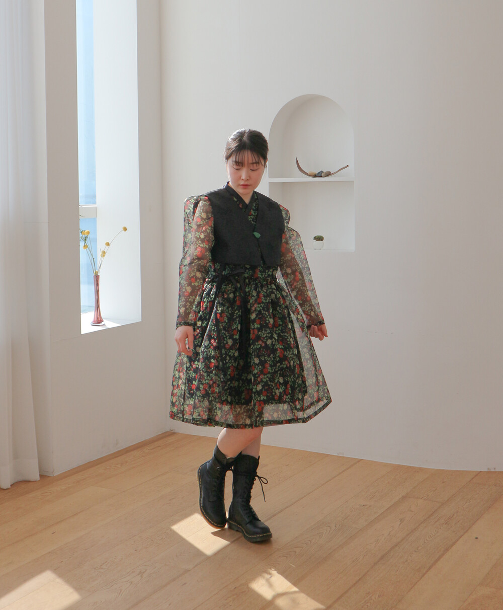 나비 배자와 함께 착용하면 고급스럽게 전통한복스러운 무드로 착용가능합니다.