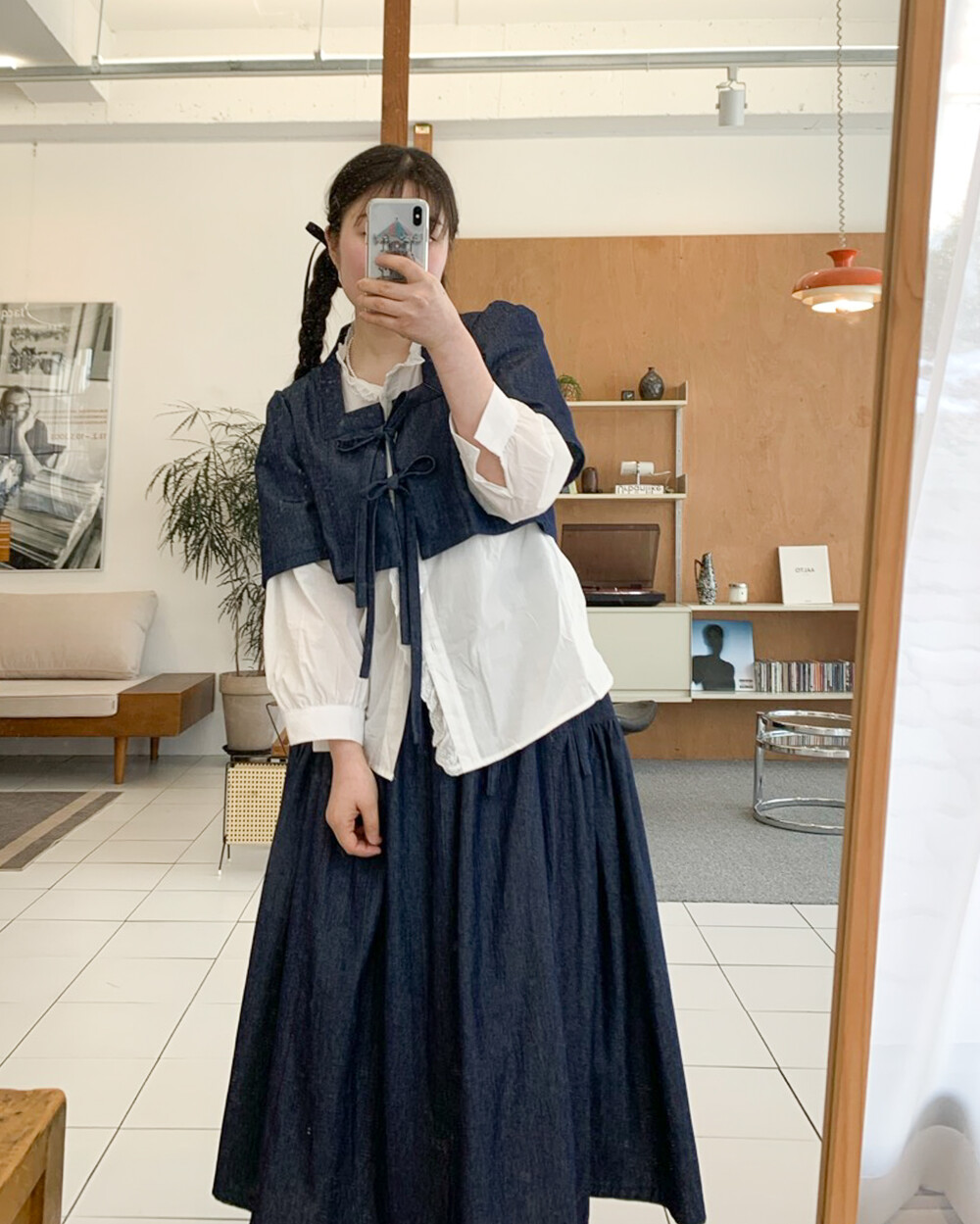 24 데님 방령깃 저고리 & 액주름 밴딩 치마