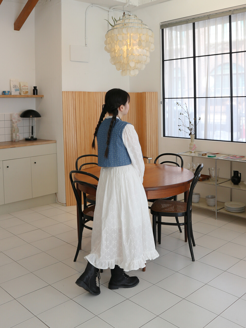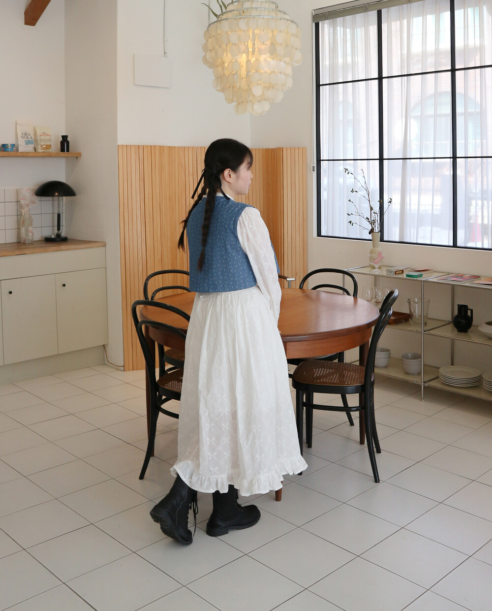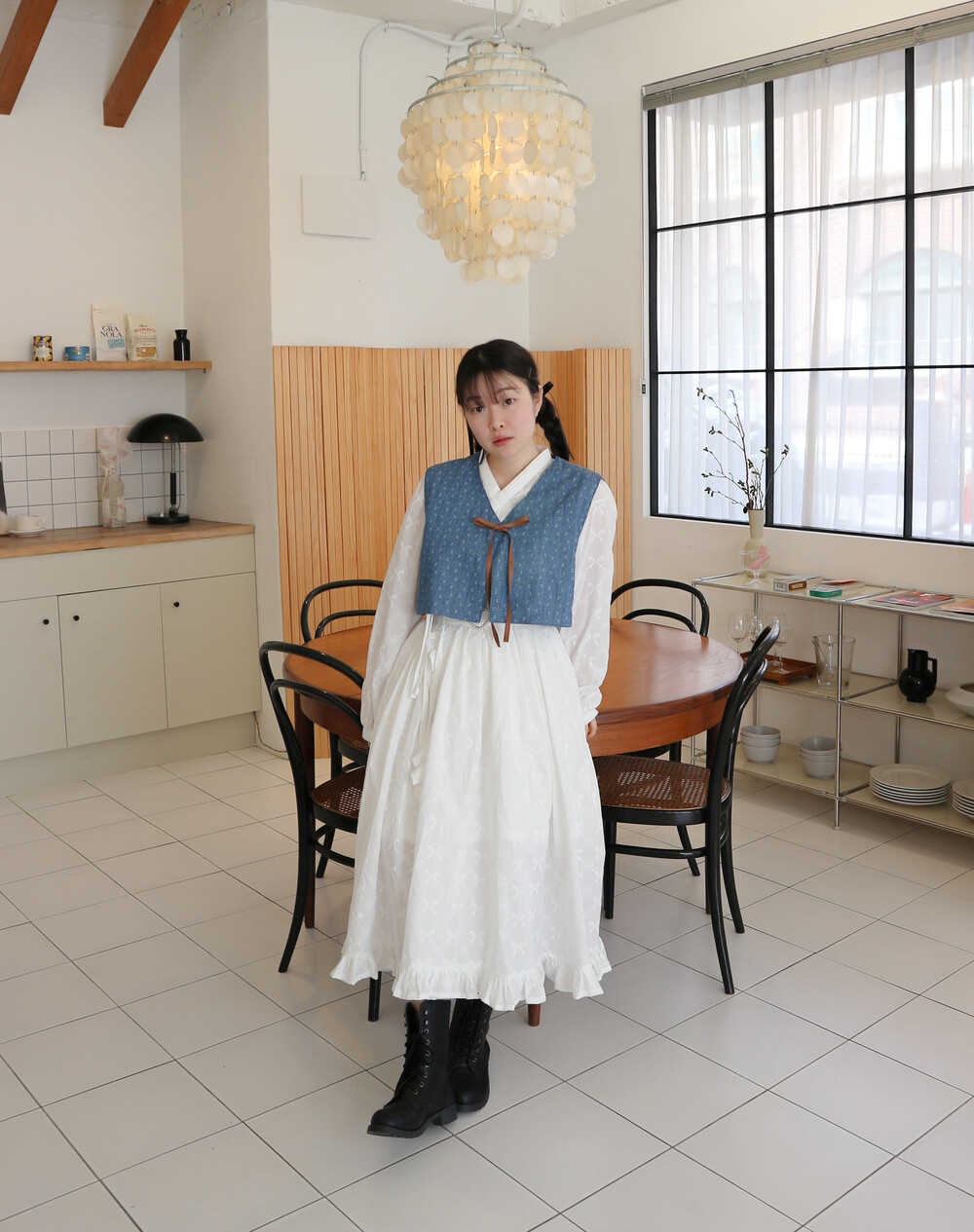 보헤미안 패턴의 데님 느낌의 면 원단으로 제작 된 귀여운 조끼입니다.