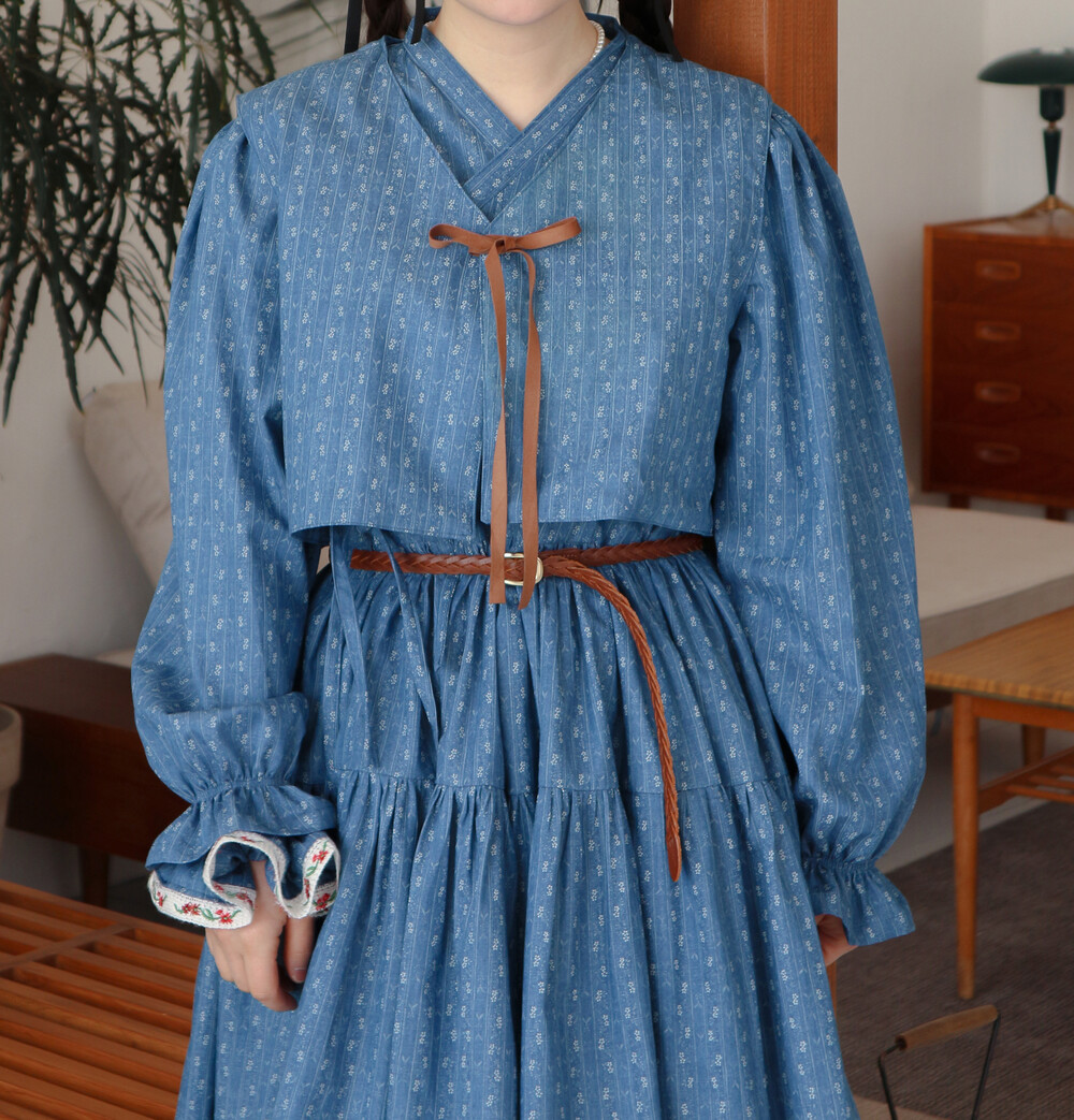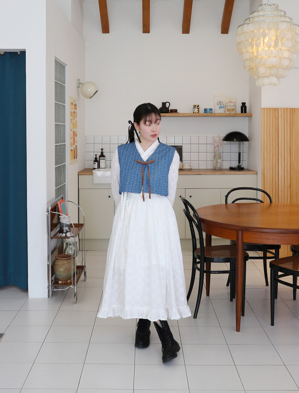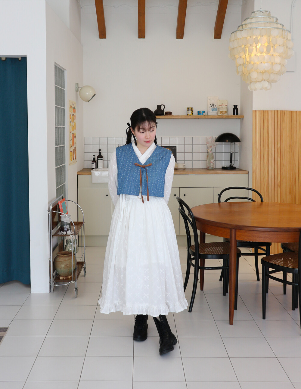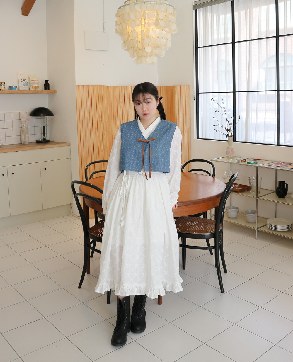 보헤미안 패턴의 데님 느낌의 면 원단으로 제작 된 귀여운 조끼입니다.