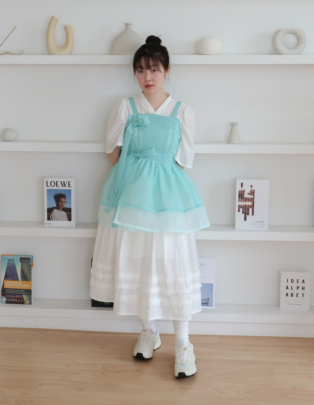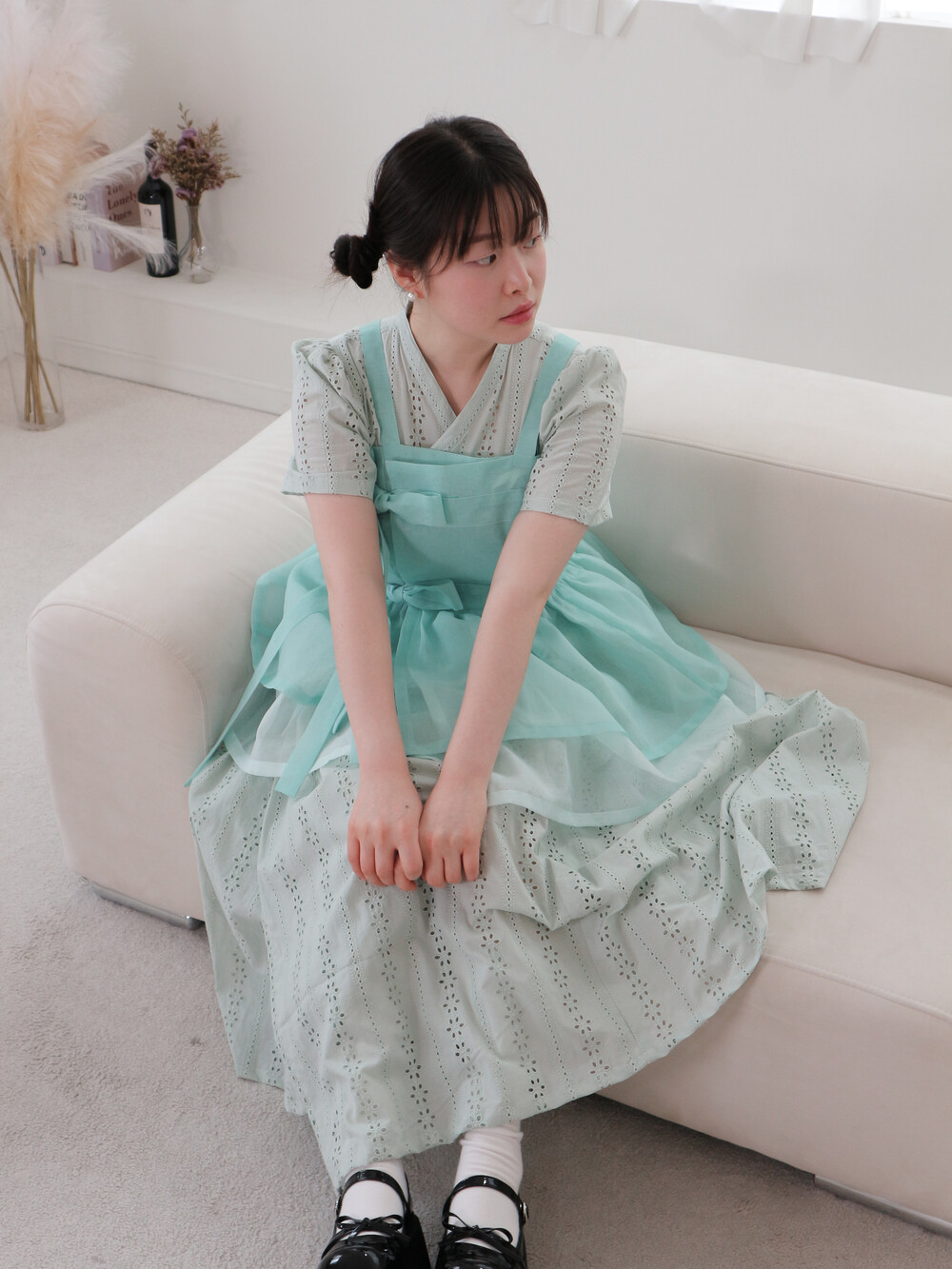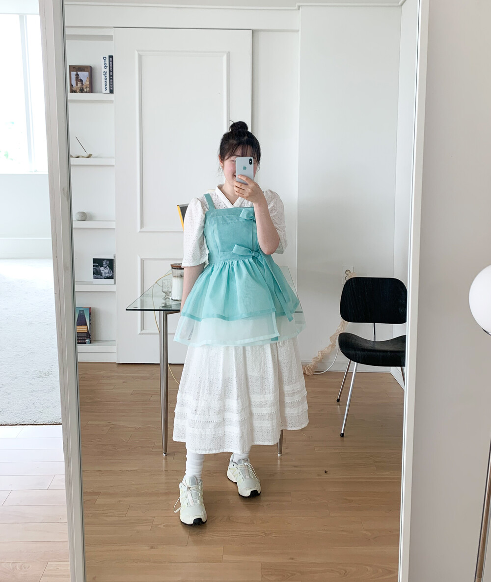 화사한 색감에 리본 자수 프릴 등 사랑스러운 디테일을 가득 넣어 레트로맨스만의 무드로