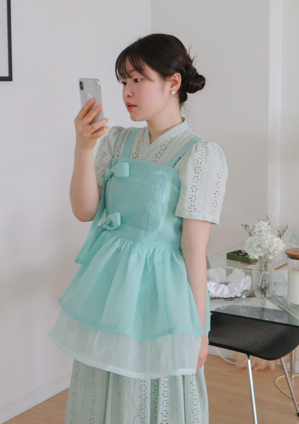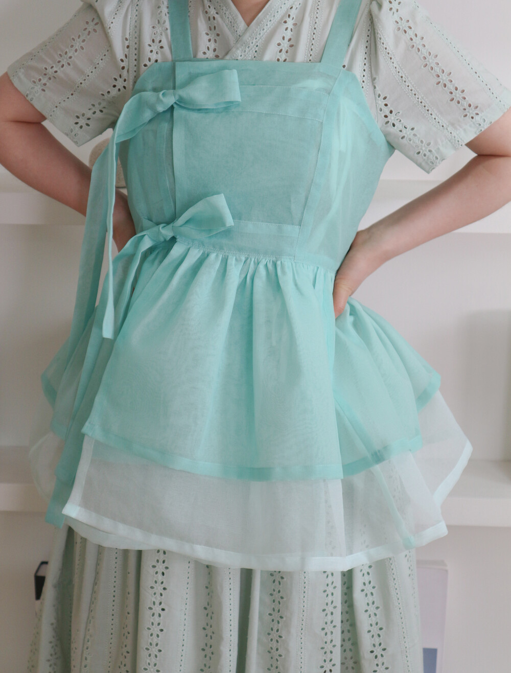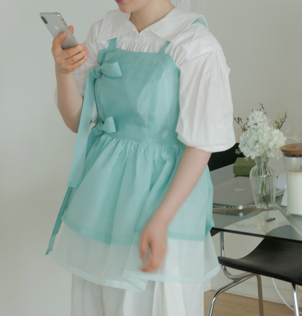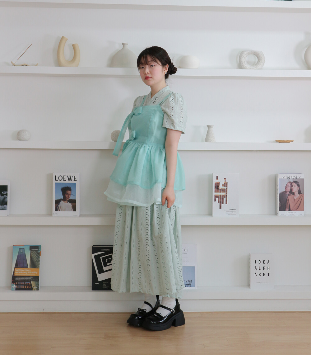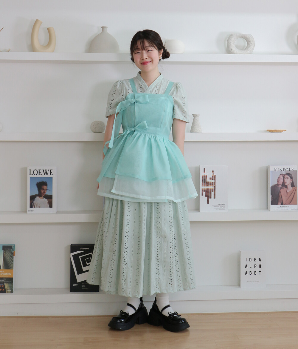 화사하고 진한 민트 색감을 메인 색으로 연한 민트 색상을 아랫단으로 매치하였습니다.