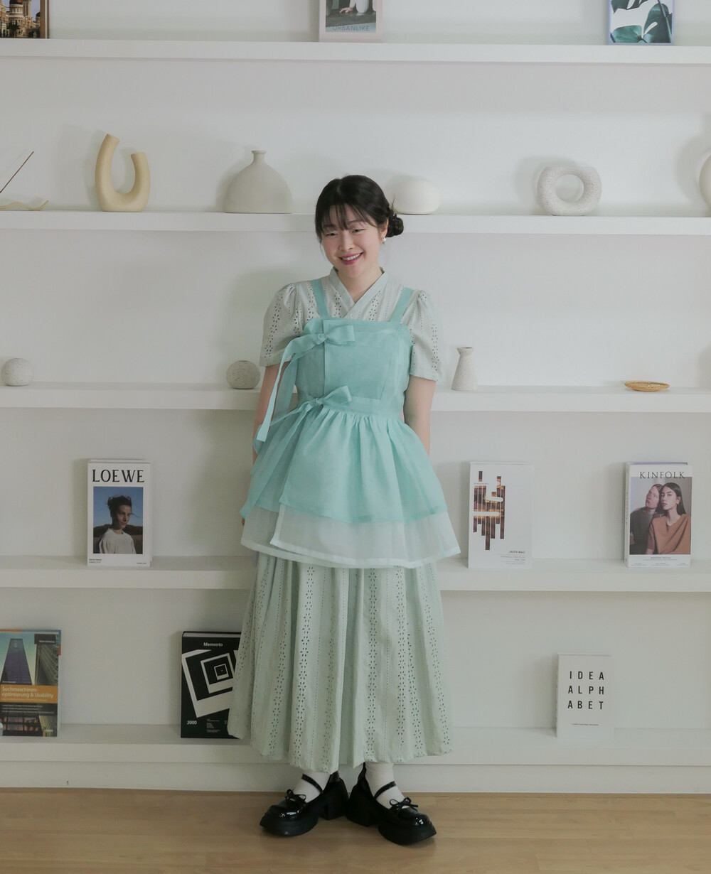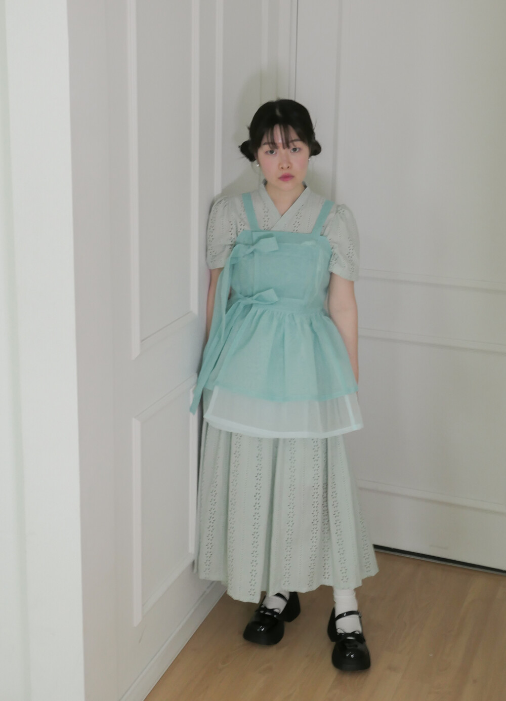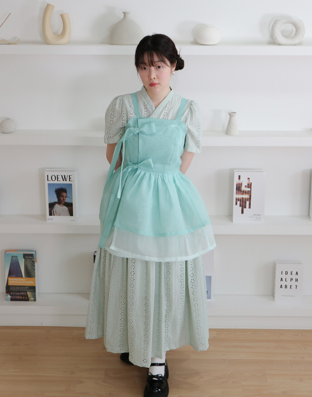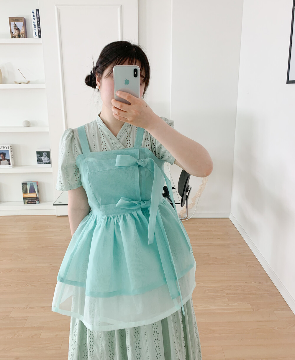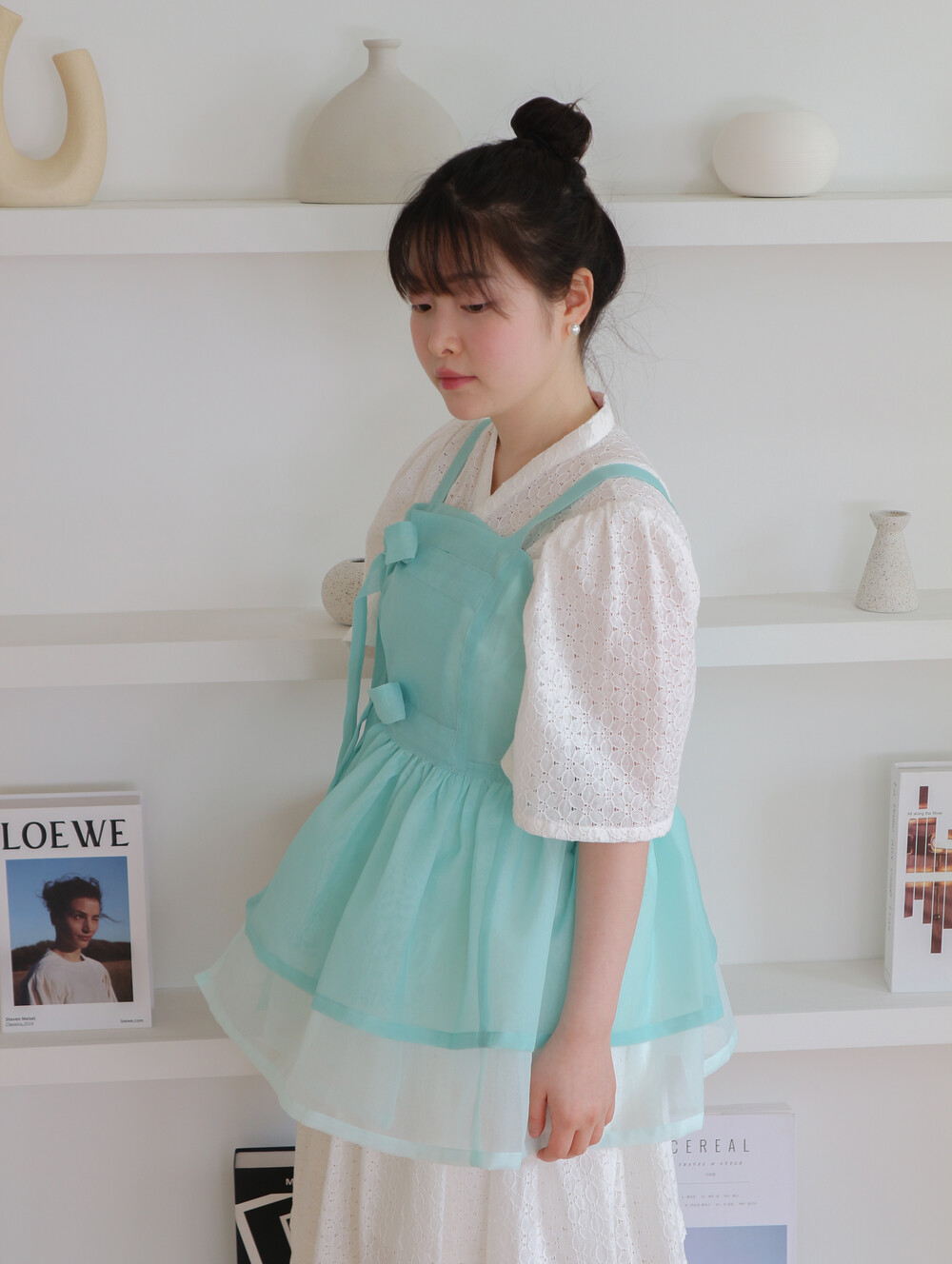 화사하고 진한 민트 색감을 메인 색으로 연한 민트 색상을 아랫단으로 매치하였습니다.