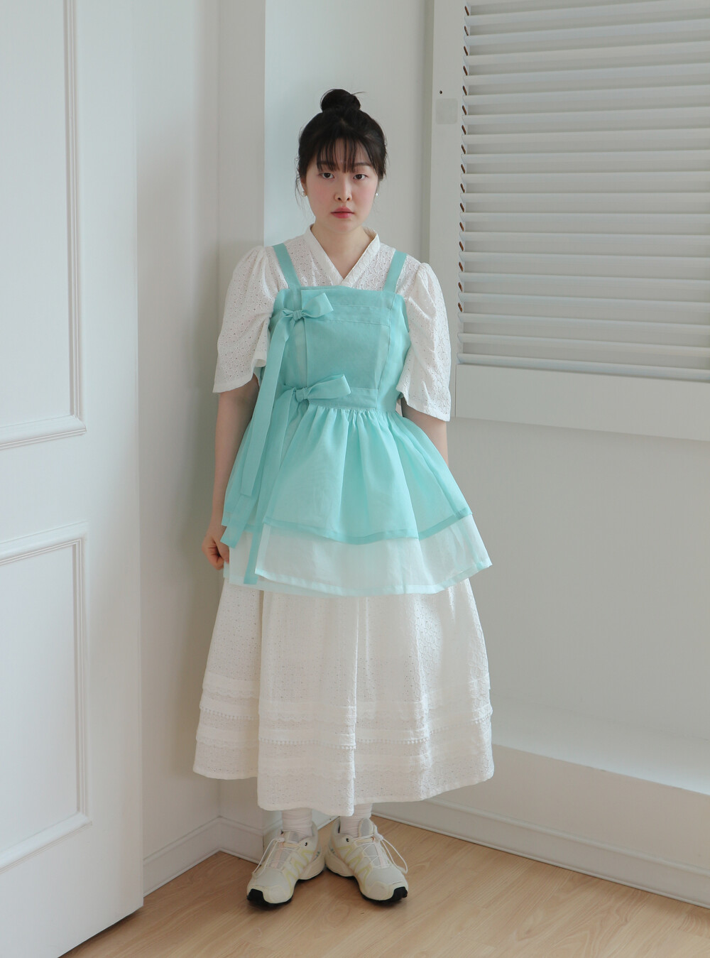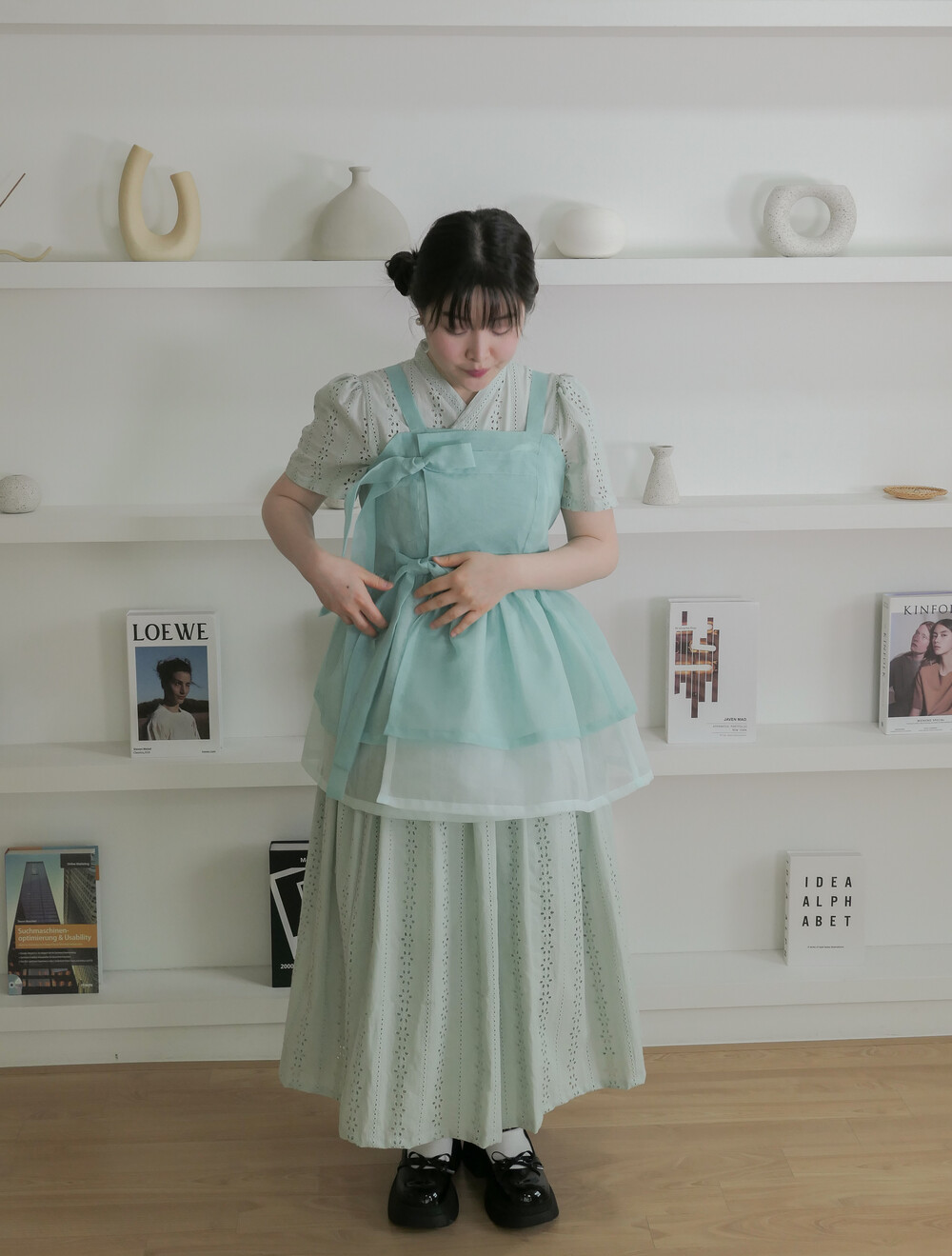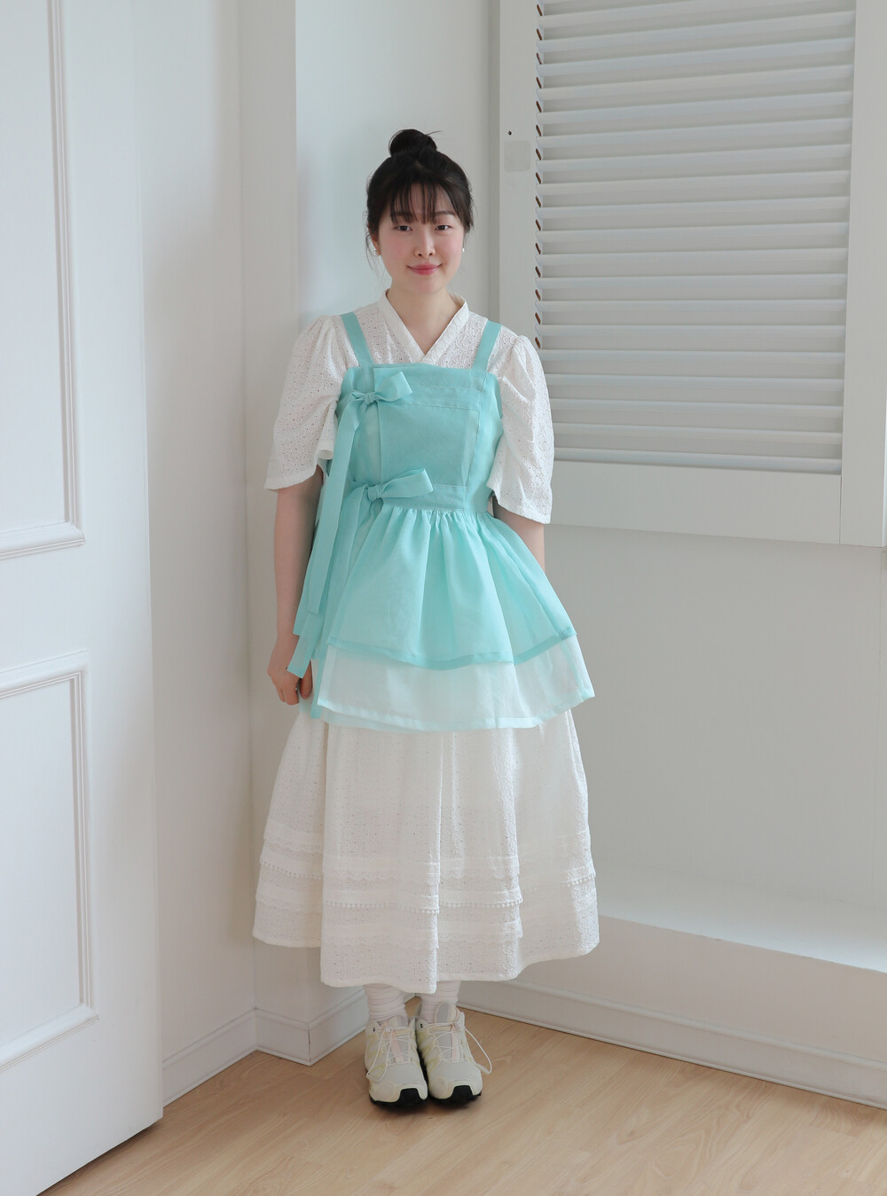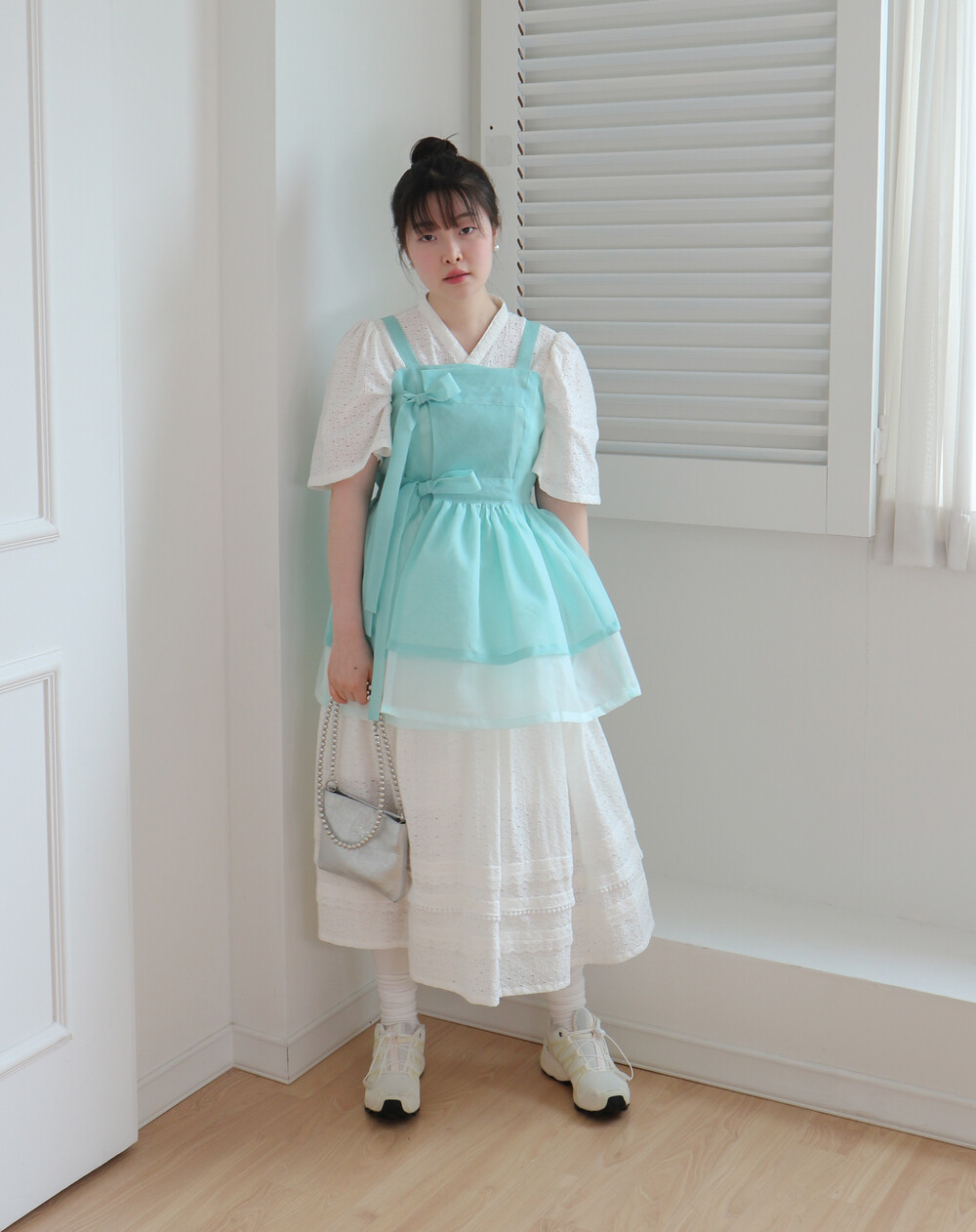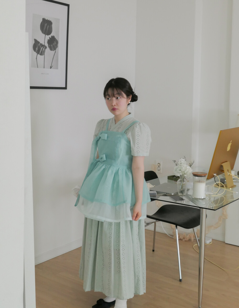 화사하고 진한 민트 색감을 메인 색으로 연한 민트 색상을 아랫단으로 매치하였습니다.