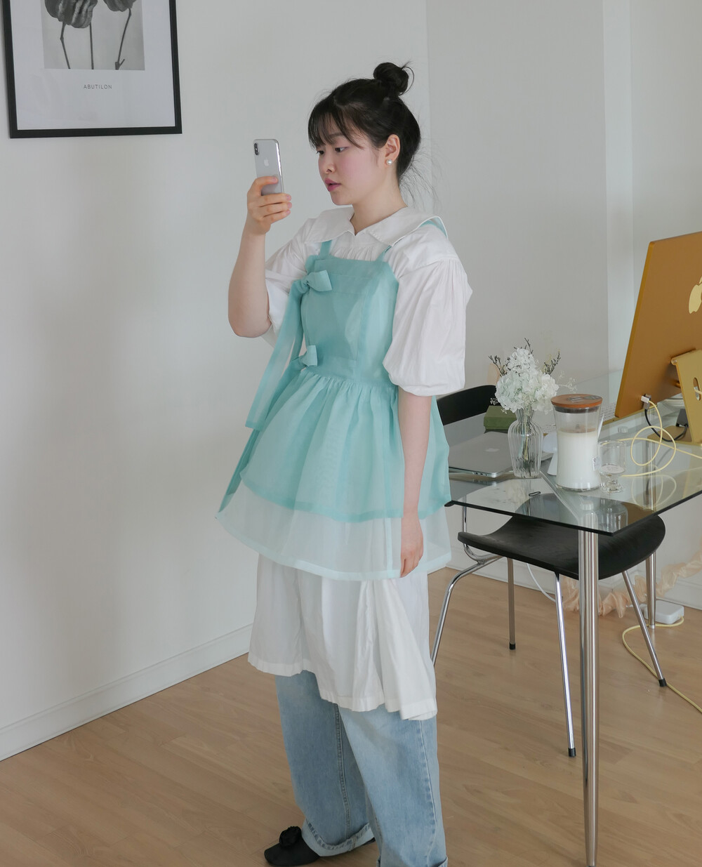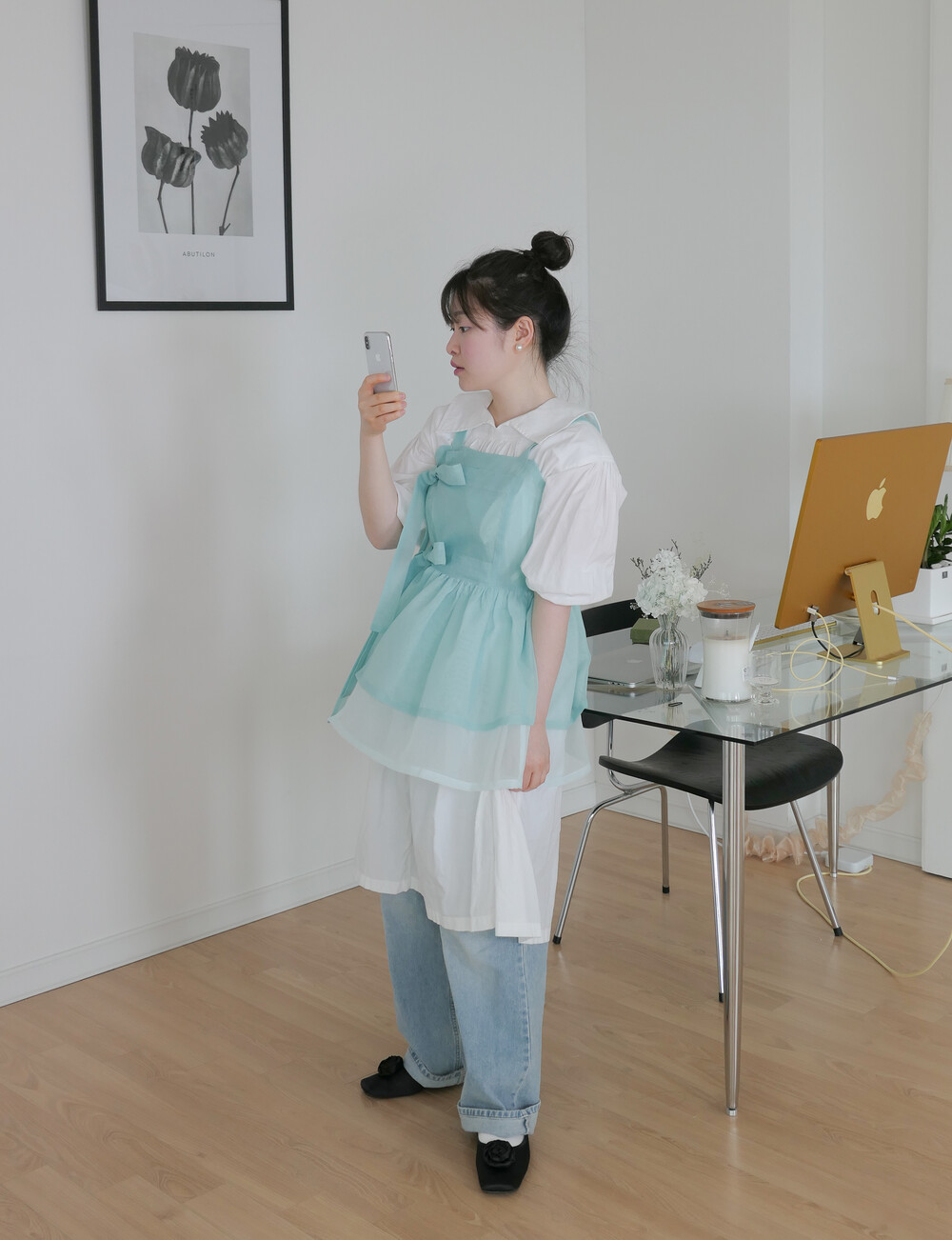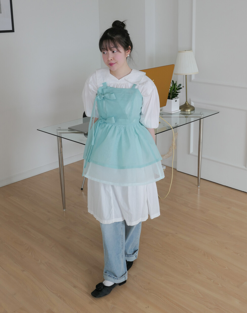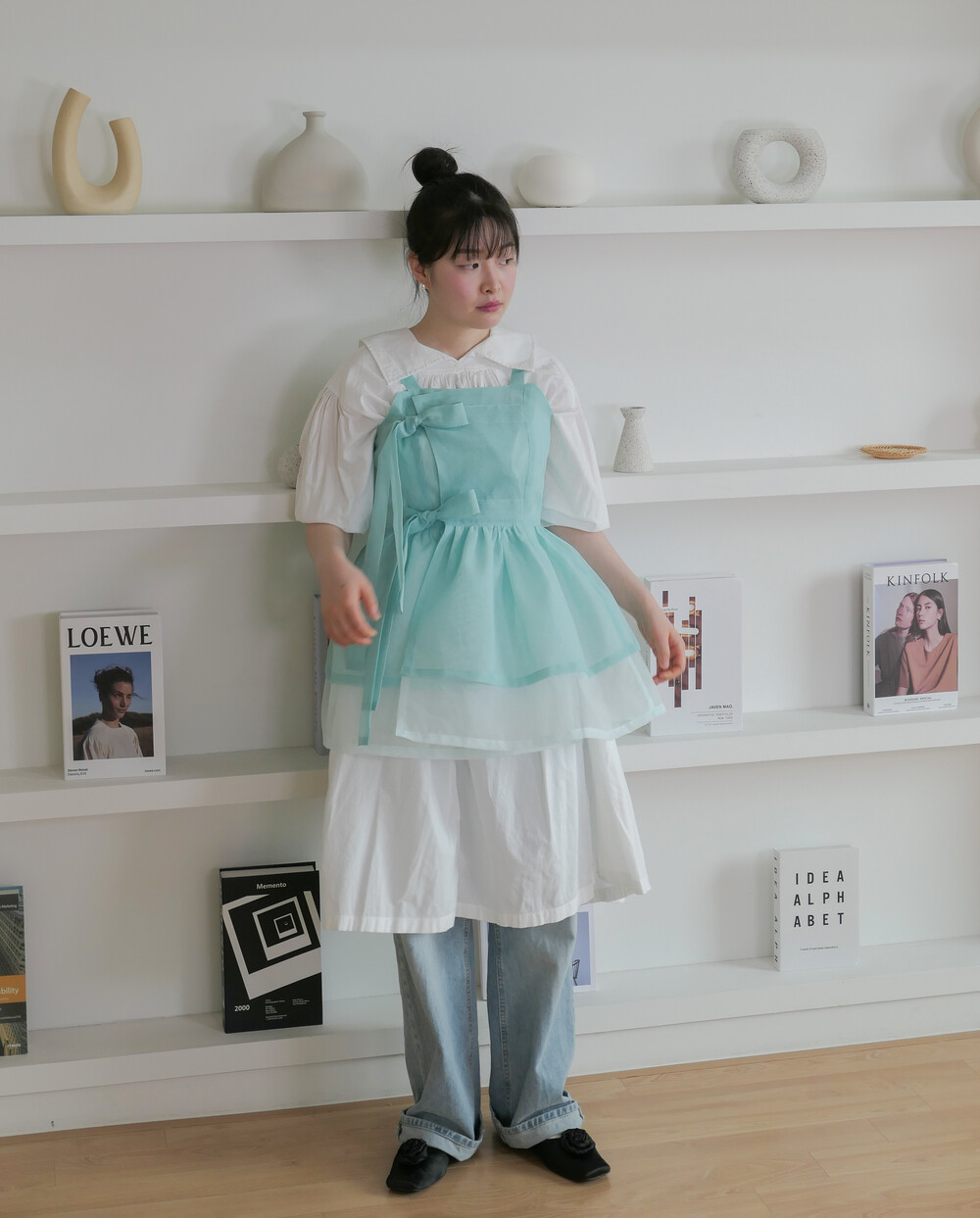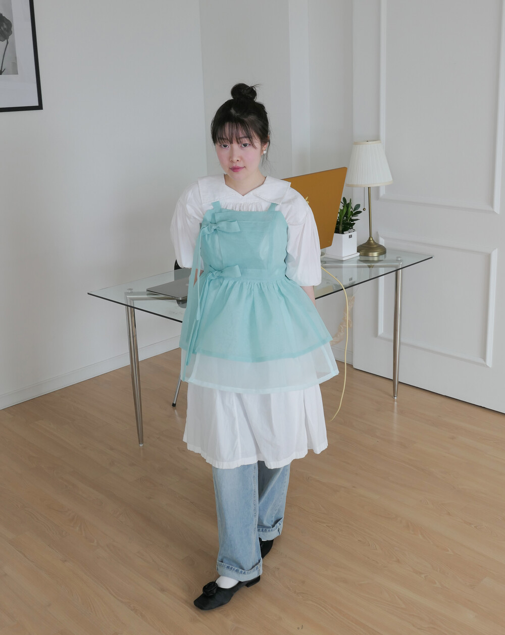 화사하고 진한 민트 색감을 메인 색으로 연한 민트 색상을 아랫단으로 매치하였습니다.