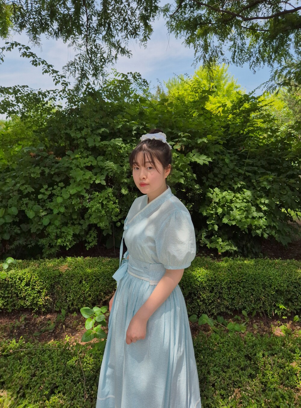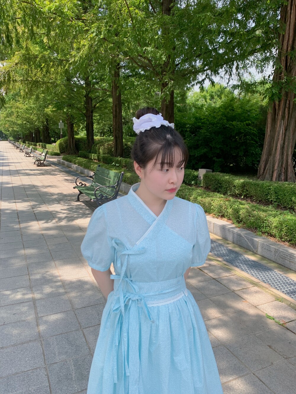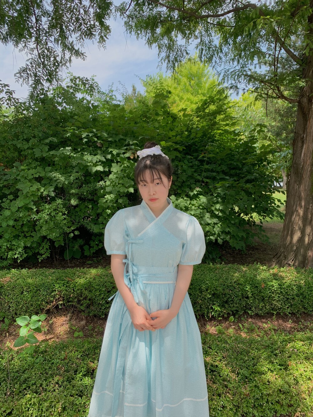 +하늘하늘한 청량한 원단 컬러에 잔꽃 플라워 패턴이 포인트입니다!