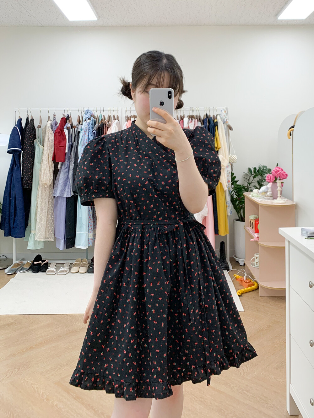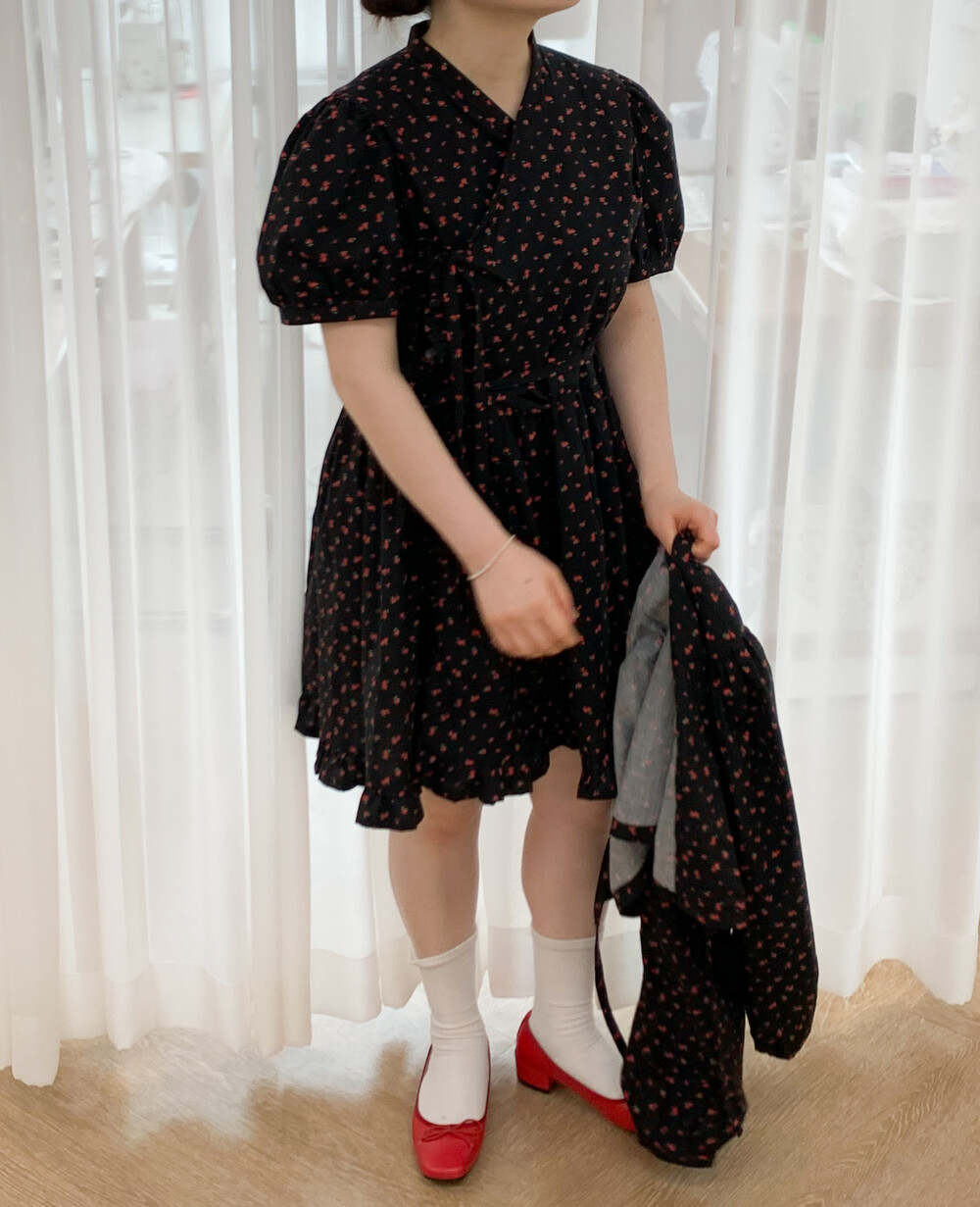 블랙 프릴 원피스는 여름에 입기좋은 가벼운 면소재로 제작 된 미니 기장의 원피스는