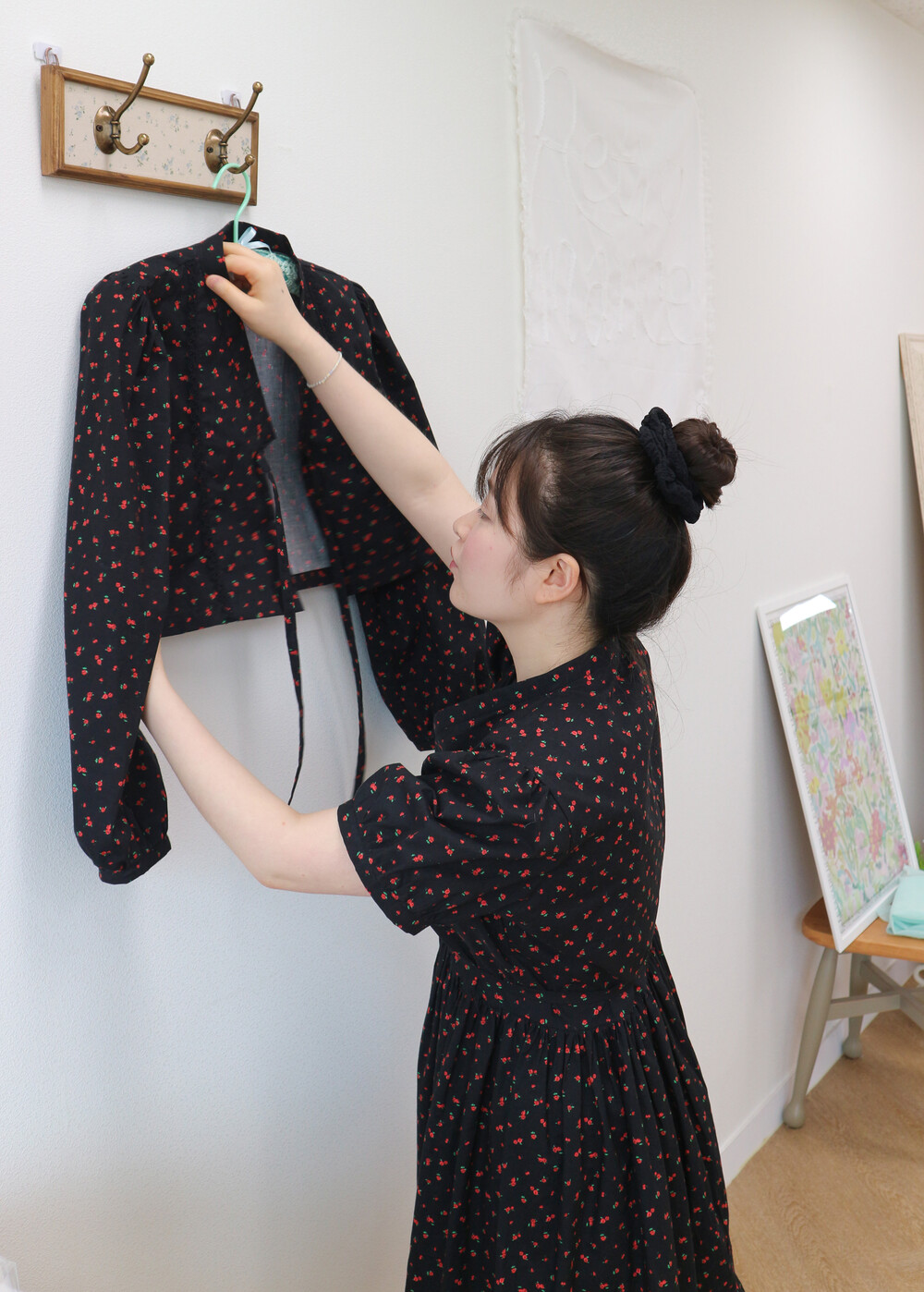 퍼프 소매에 커프스가 있으며 얇은 고름으로 여미는 방식으로 제작하였습니다.