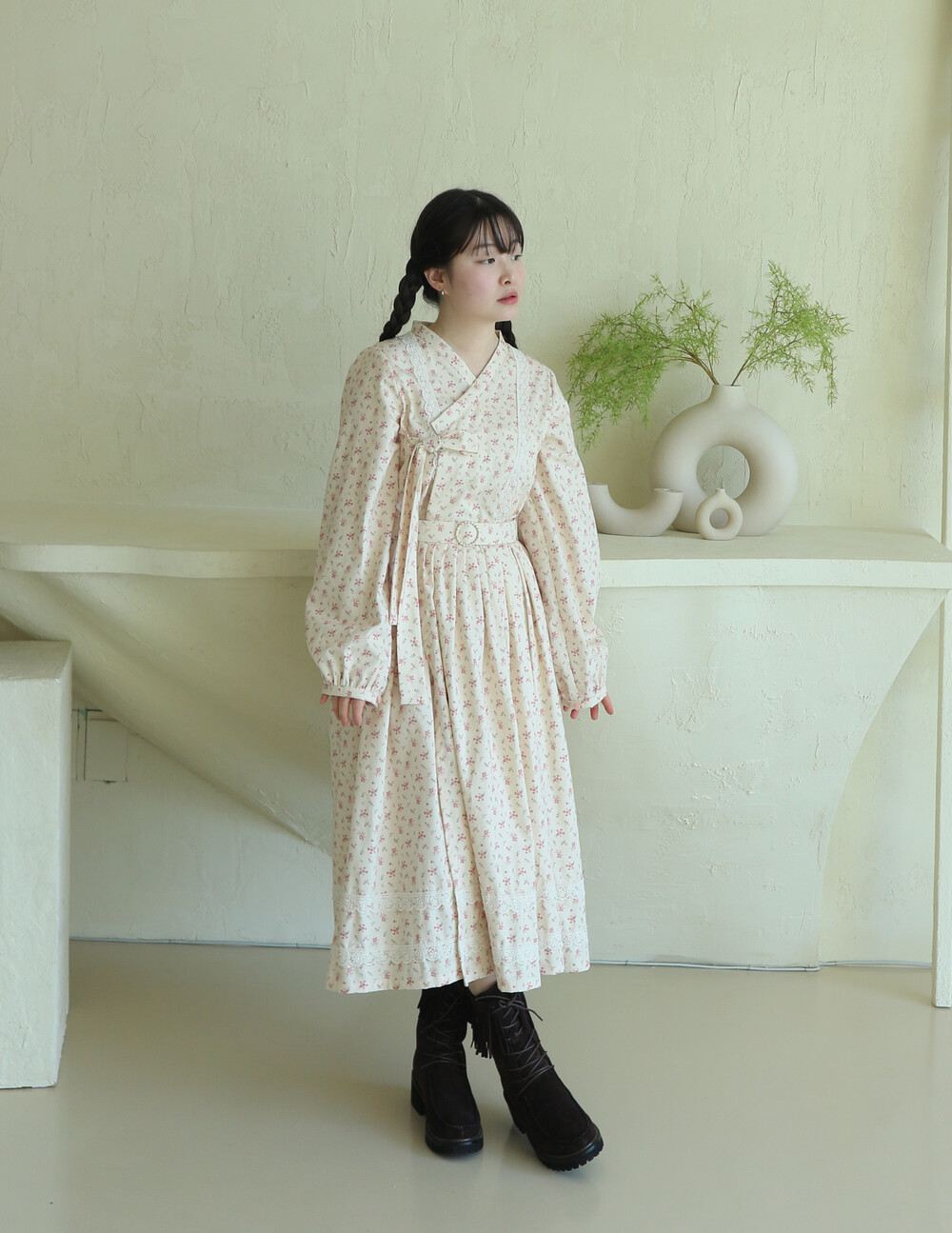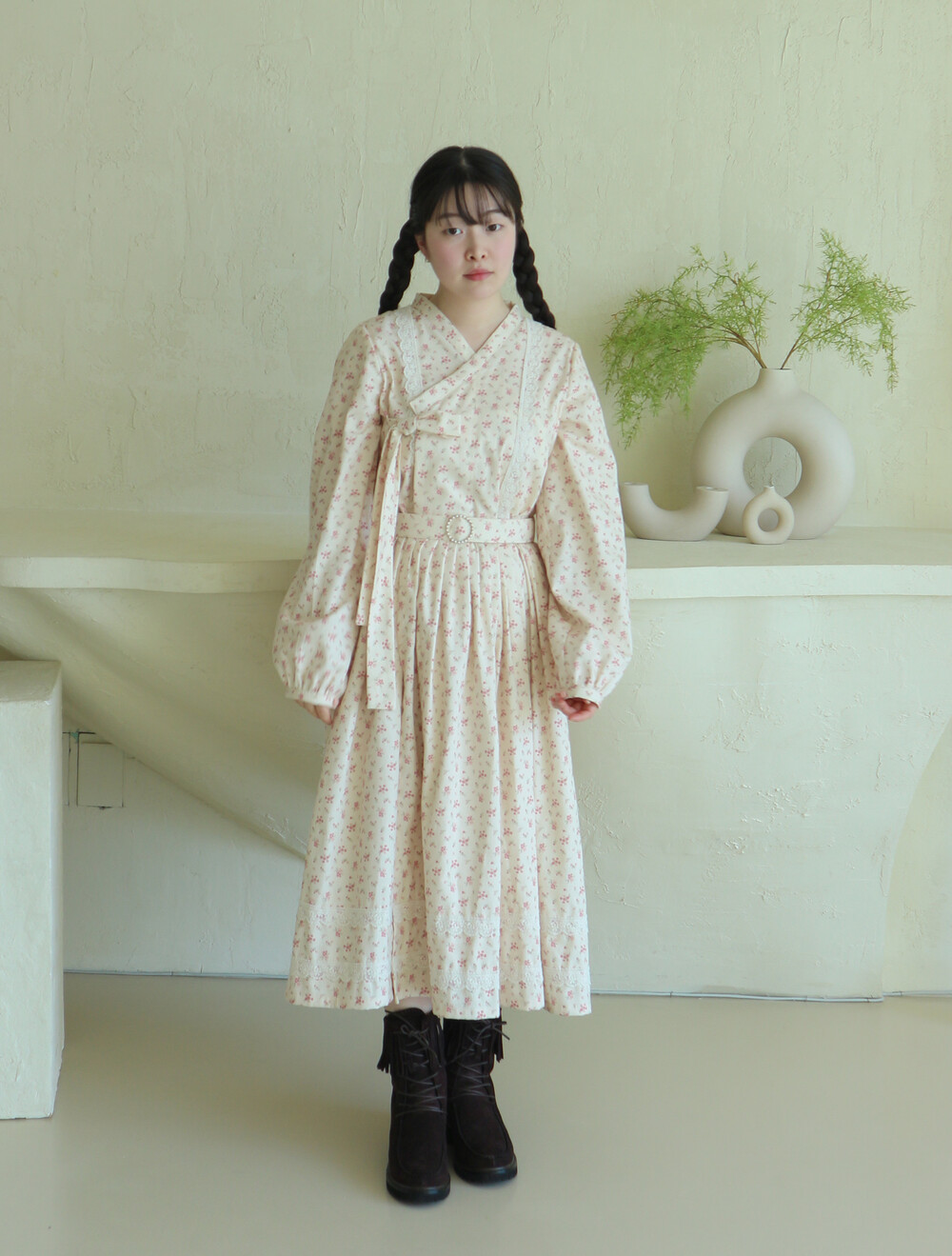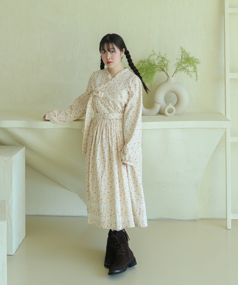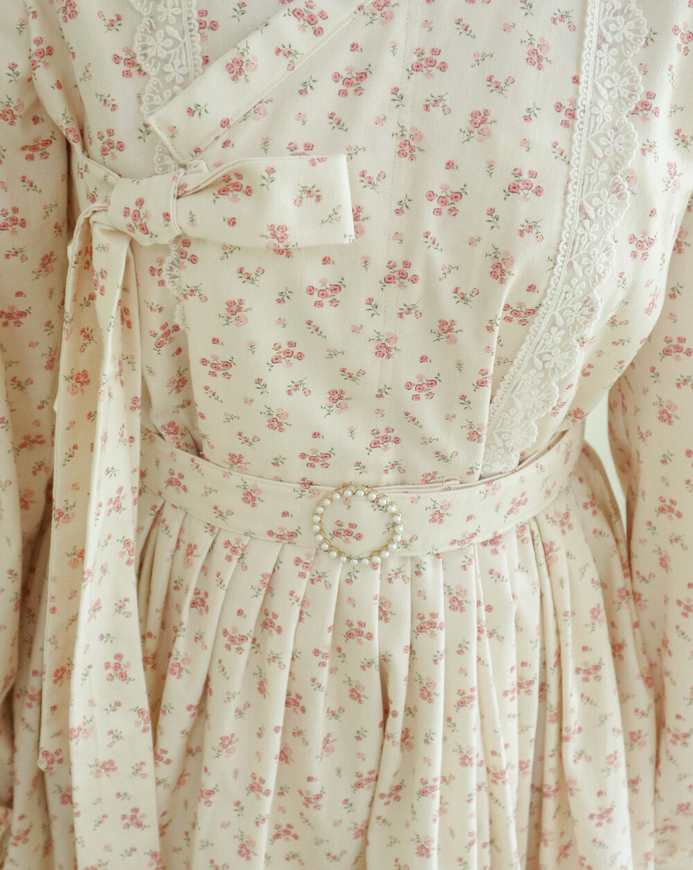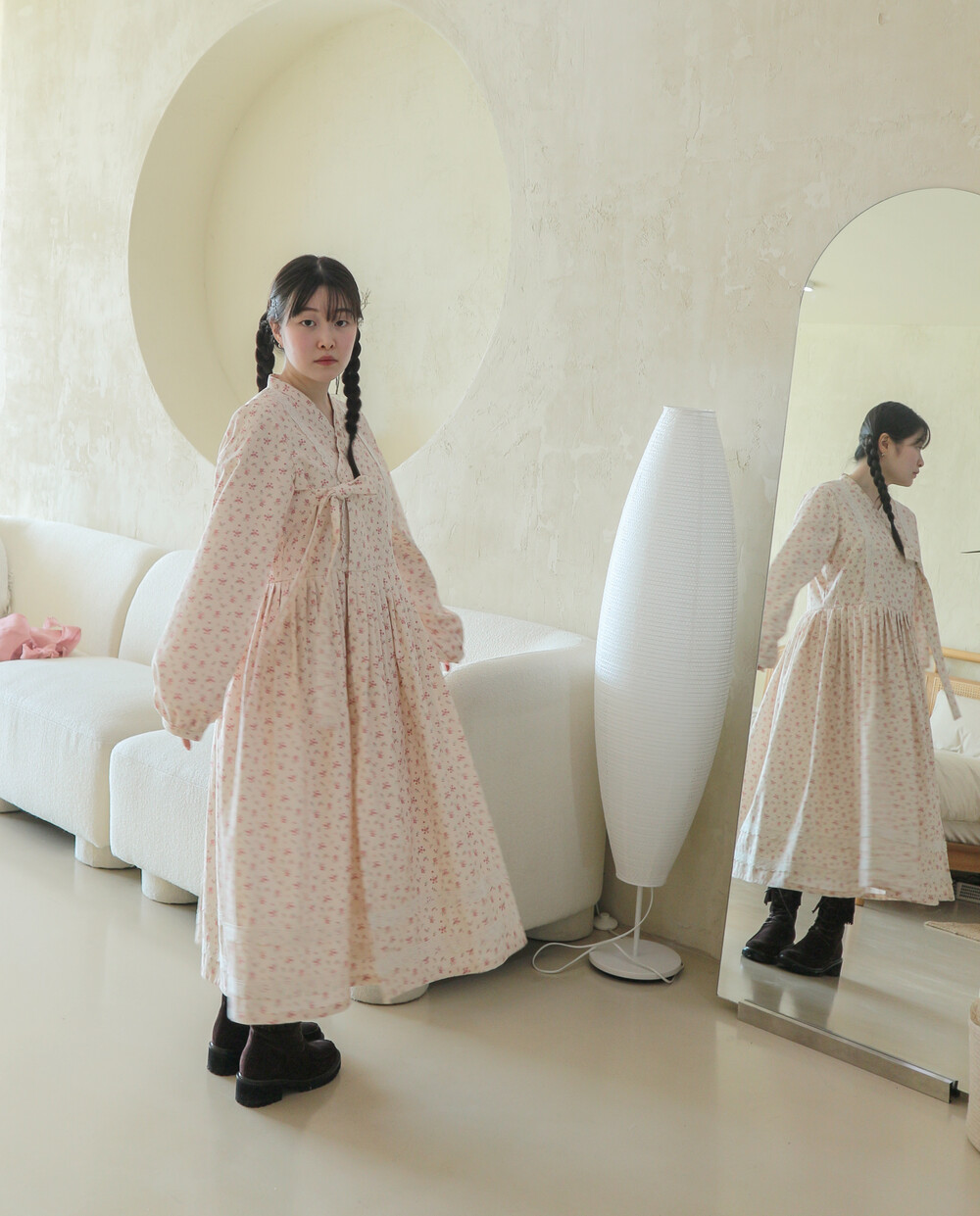 탄탄한 트윌 면에 작은 꽃무늬가 사랑스러운 철릭 원피스입니다.