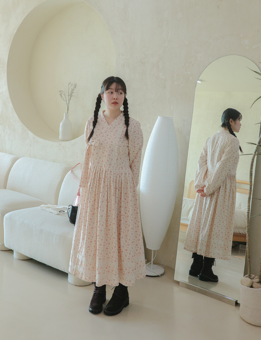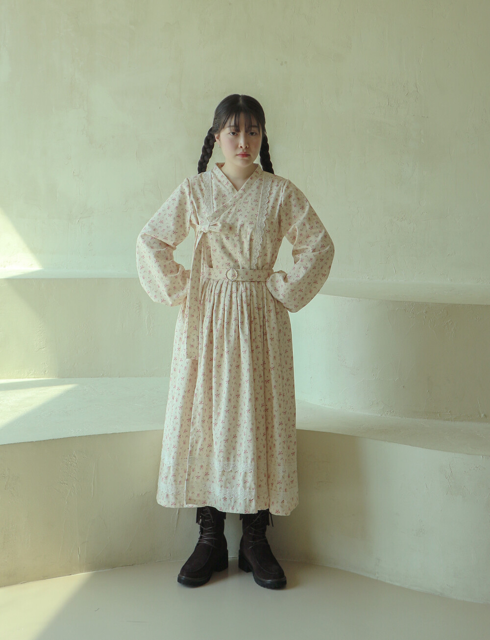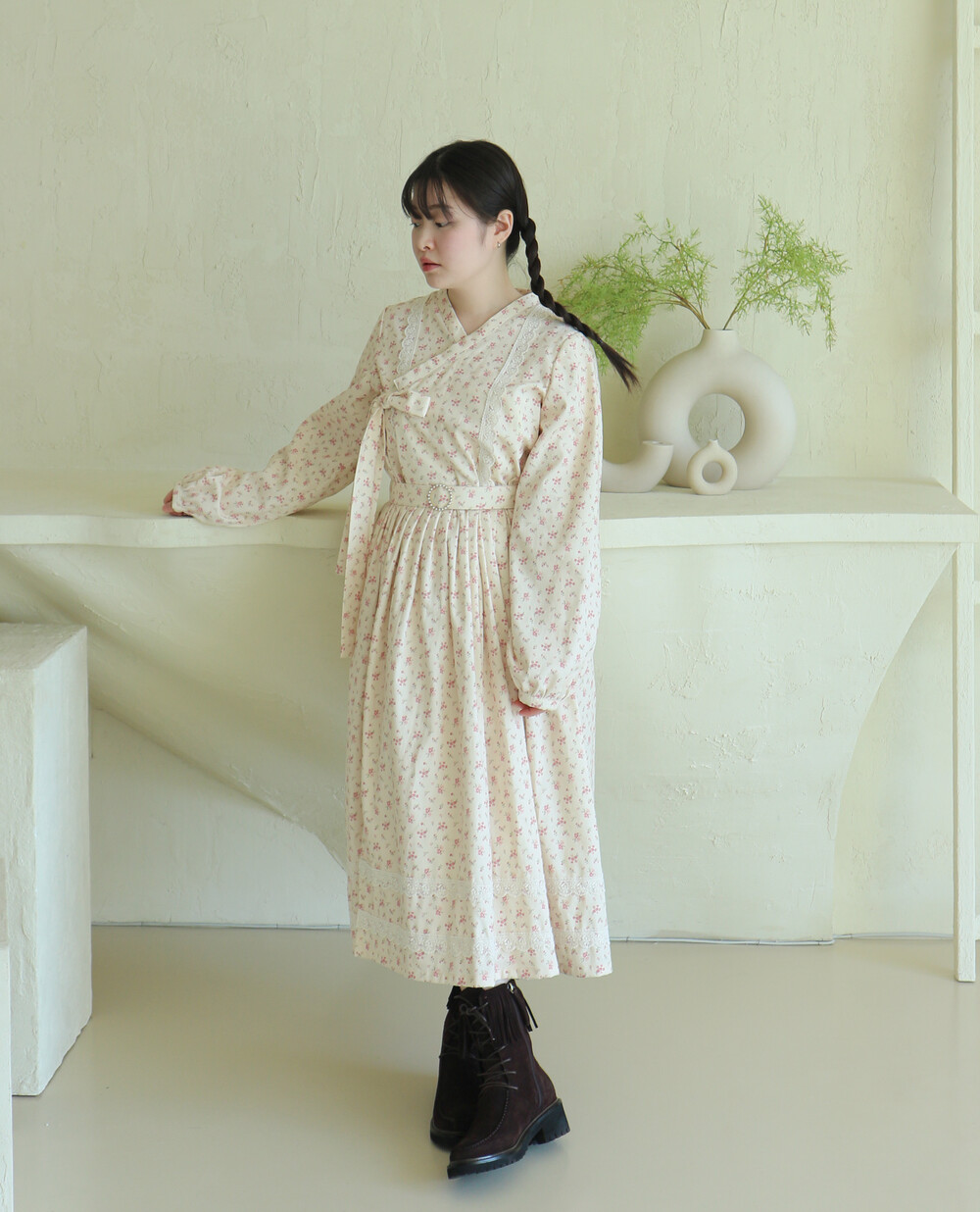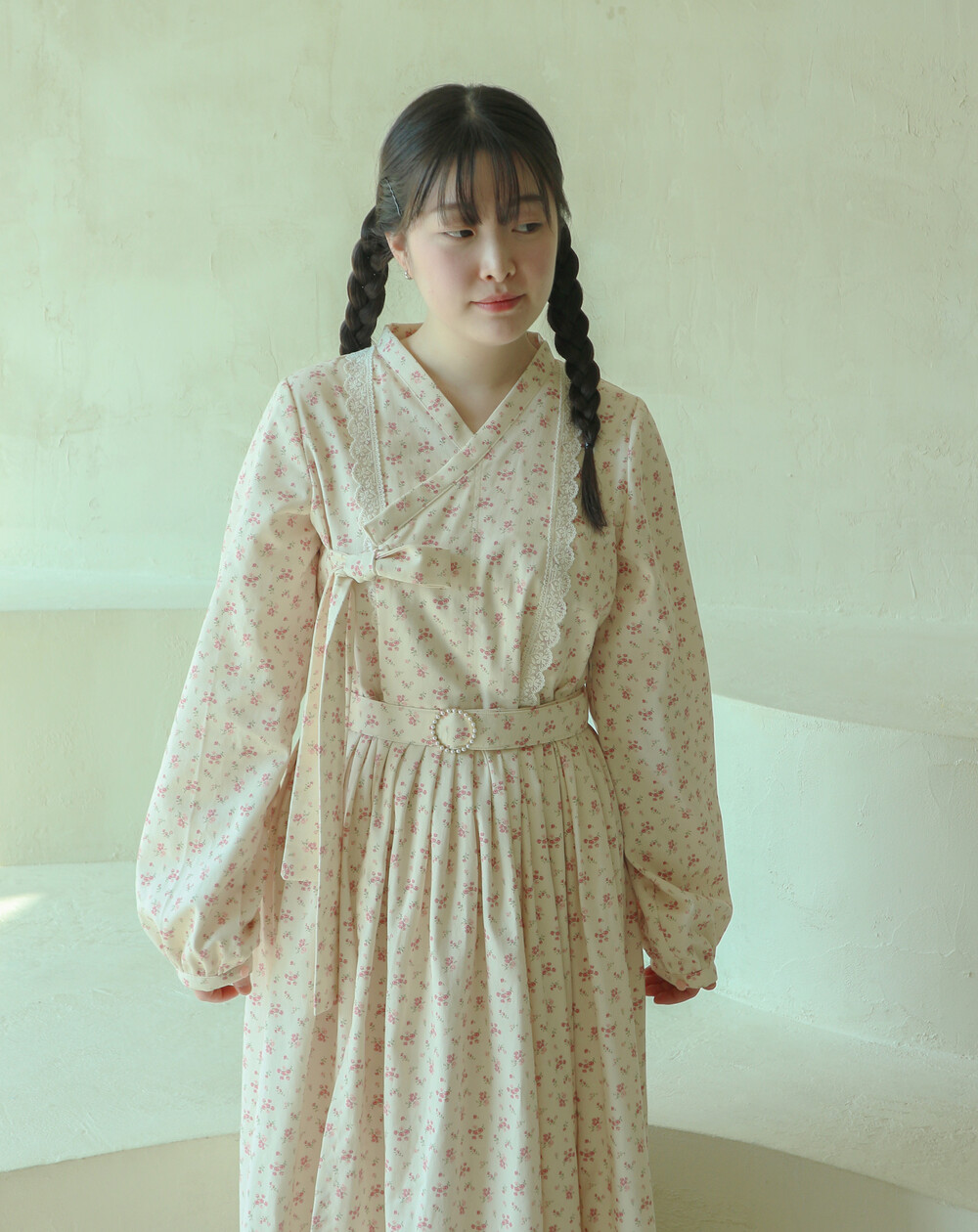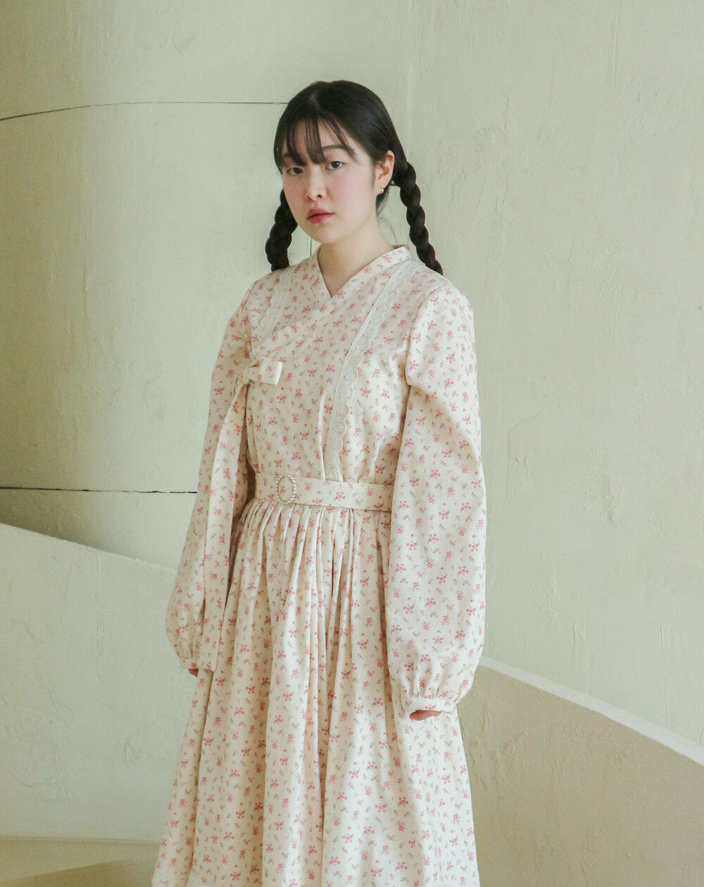 탄탄한 트윌 면에 작은 꽃무늬가 사랑스러운 철릭 원피스입니다.